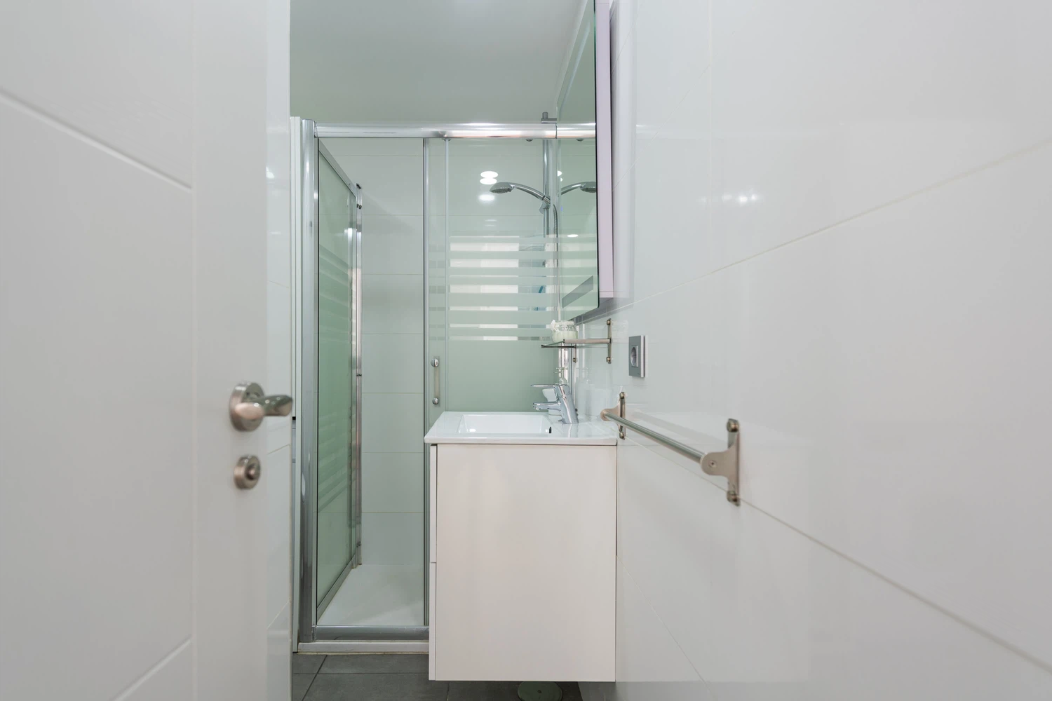 Tiene un baño independiente con plato de ducha y un aseo.