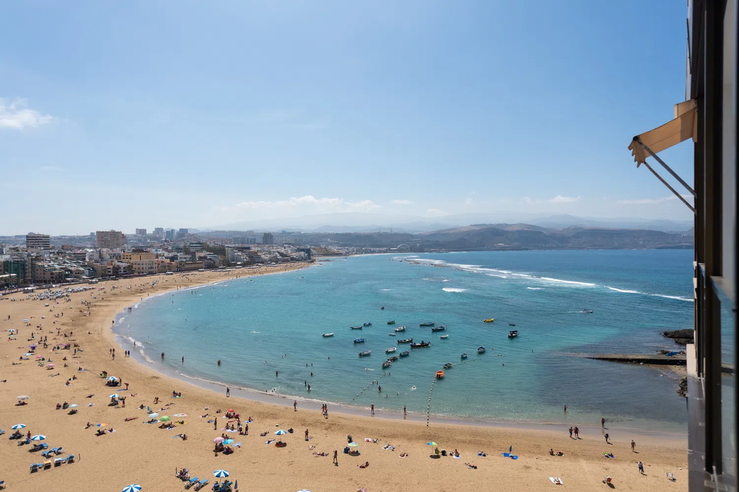 Magnífica vivienda vacacional en alquiler en Las Palmas de Gran Canaria en primera línea de la Playa de Las Canteras, gestionado por Canariagetaway, con un gran balcón amueblado con vistas al mar y a la playa. Alojamiento de 64 m2 confortables y totalmente equipado, en la séptima planta.