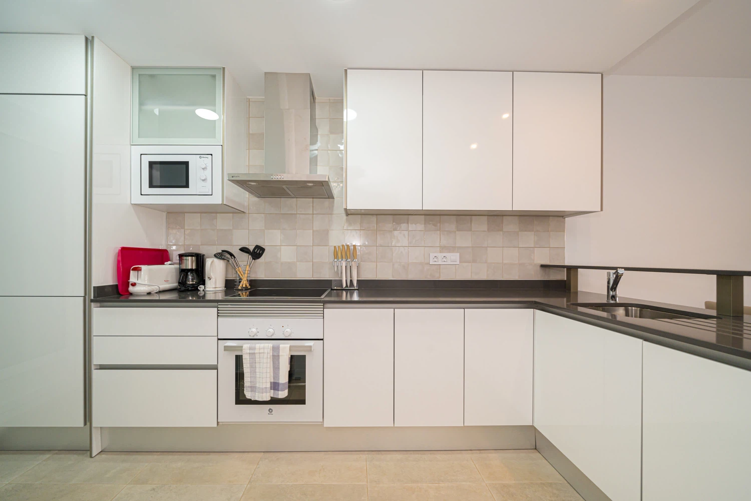 La cocina americana, de vitrocerámica, está equipada con nevera, microondas, horno, congelador, lavavajillas, vajilla/cubertería, utensilios/cocina, cafetera, tostadora, hervidor de agua y exprimidor.