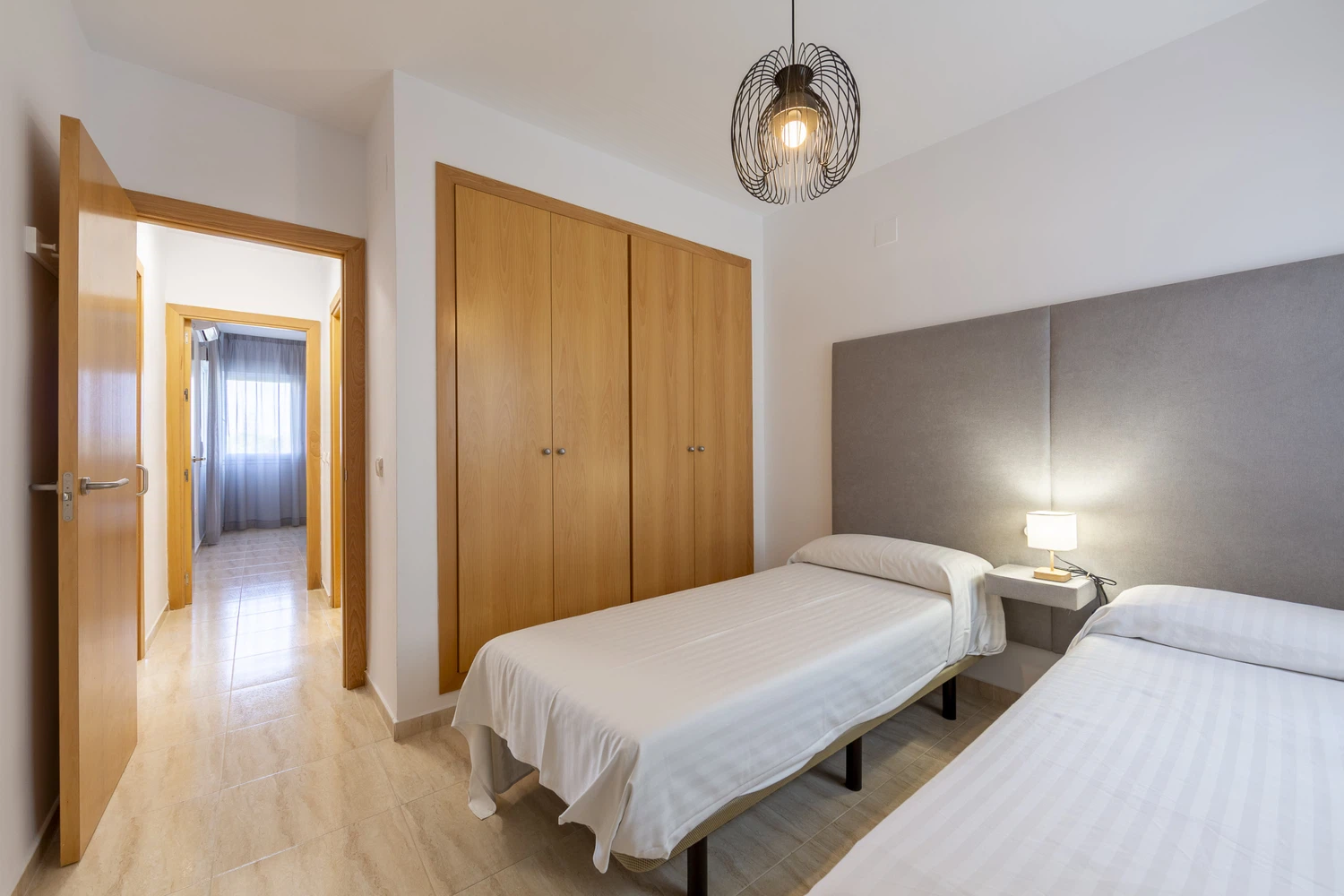 Residencial Palm Beach Suites Almerimar está a 14 min a pie de Playa Poniente de Almerimar, y ofrece alojamiento con terraza, jardín y piscina al aire libre. Hay wifi gratis en todo el alojamiento y parking privado en el propio alojamiento. Este apartamento con aire acondicionado consta de 2 dormitorios, una sala de estar, una cocina totalmente equipada con nevera y cafetera, y un baño con bañera. El Campo de Golf Almerimar está a 10 min a pie y Campo de Golf La Envía está a 20 min en coche. El Aeropuerto de Almería está a 58 km.