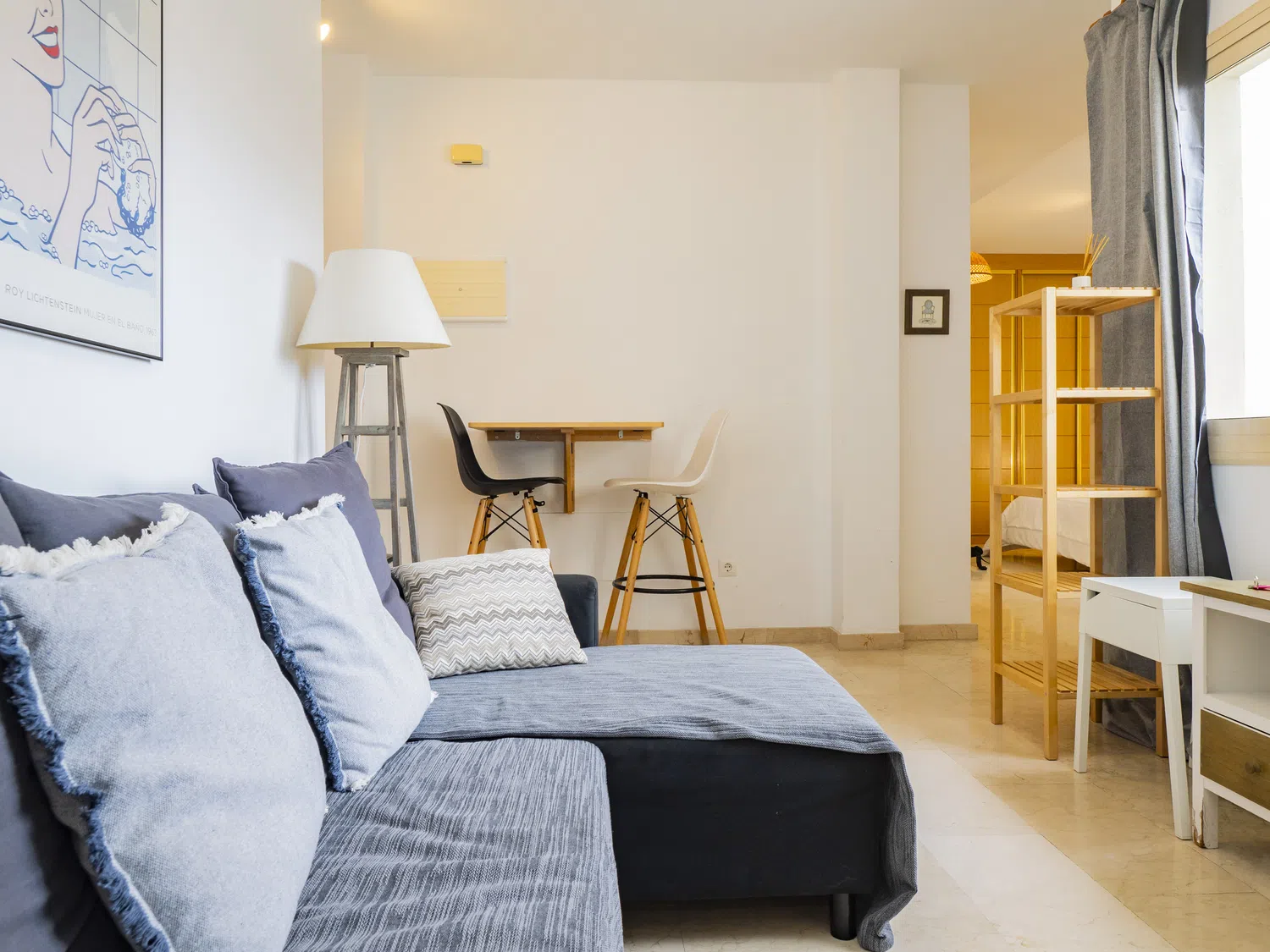 Descubre este encantador apartamento para tres personas situado en pleno corazón de Málaga, ideal para quienes buscan un alojamiento cómodo y bien ubicado. A solo minutos caminando o en coche, tendrás acceso a una amplia oferta de restauración, ocio, playas y cultura, permitiéndote disfrutar de una experiencia diferente cada día. Este acogedor estudio se encuentra en la tercera planta de un edificio con ascensor, alejado del bullicio gracias a una plaza que minimiza el tráfico cercano.