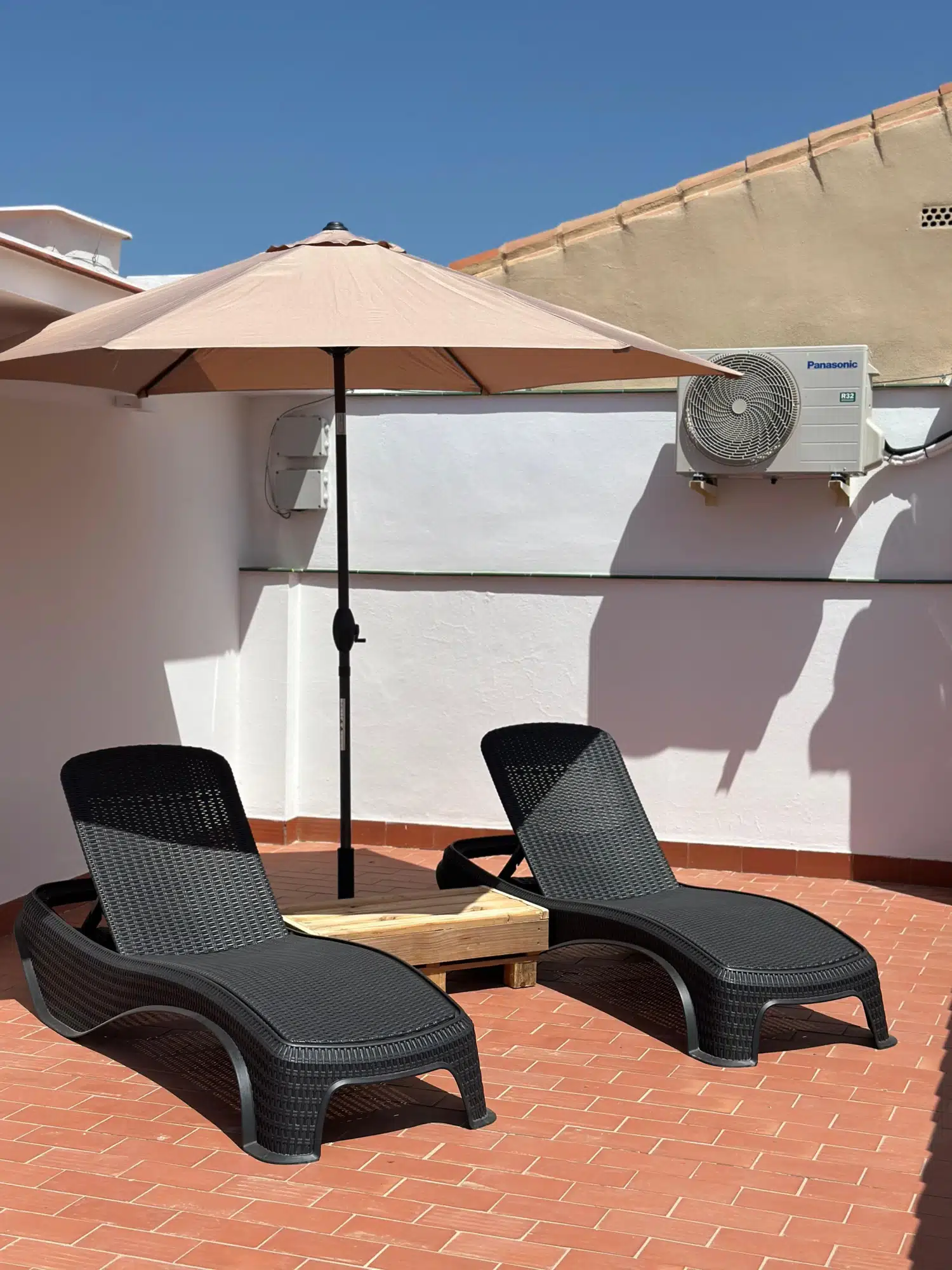 Planta superior: segundo dormitorio también con cama doble y acceso a una terraza privada con vistas panorámicas al entorno cultural de Vélez-Málaga. La terraza, orientada al este, sur y oeste, recibe sol durante todo el día y dispone de una zona techada con mobiliario exterior ideal para relajarse o disfrutar de una cena al aire libre.
