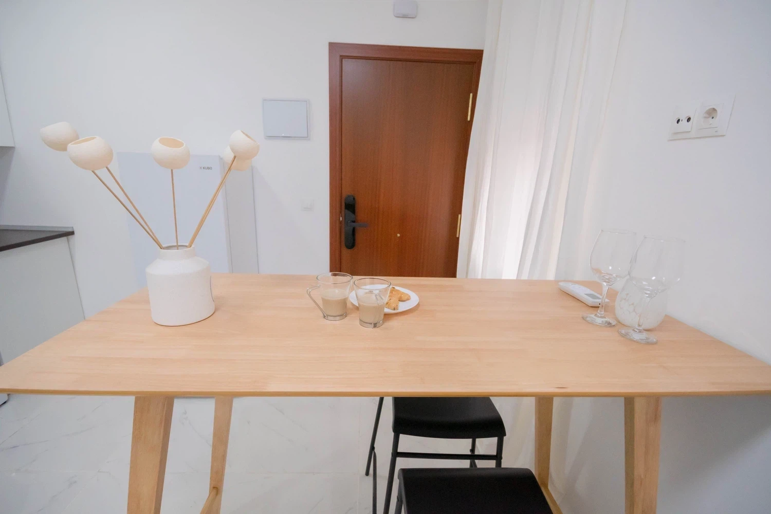 El apartamento está diseñado para recrear una zona emblemática de Madrid como es la plaza 2 de mayo el barrio Malasaña, las sillas de mimbre, la decoración en tonos beige y blanco evocan la elegancia y el detalles de la callecitas de ladrillo visto de este barrio, pero también hemos querido darle el toque de colores verdes en el patio interior, rememorando la alegría y la movida que tiene este emblemático barrio, en resumen en este apartamento encontraras una serie de que evocan la sensación de un barrio típico de Madrid como es ¨Malasaña¨, por este motivo si está buscando un apartamento con carácter, ¡no busque más este estudio es la elección perfecta!
