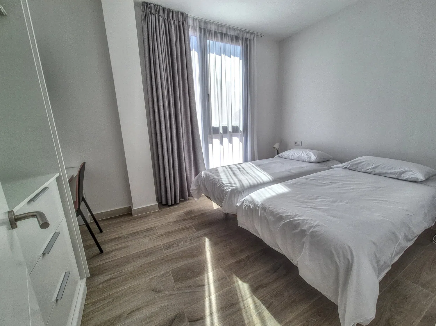 Los 3 dormitorios cuentan con camas individuales, armarios y espacio de almacenaje suficiente. Los 2 baños están equipados con duchas y accesorios de alta calidad. La cocina americana está totalmente equipada con electrodomésticos de última generación, incluyendo nevera, congelador, lavadora, lavavajillas, horno, microondas y cafetera. Además, encontrarás todo lo necesario para cocinar y servir tus comidas.