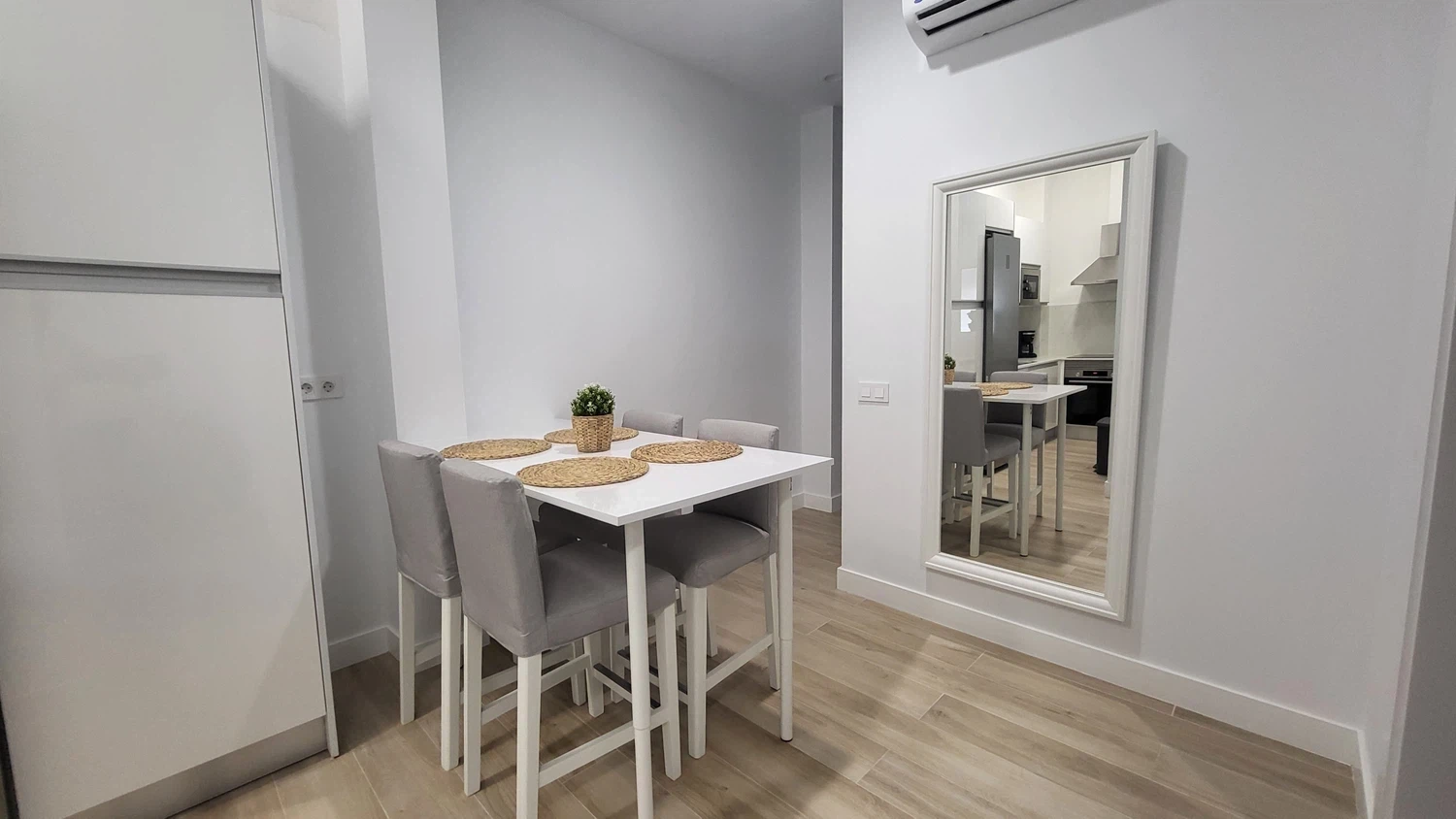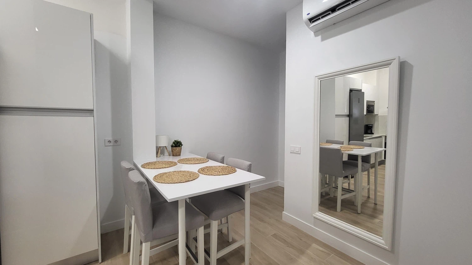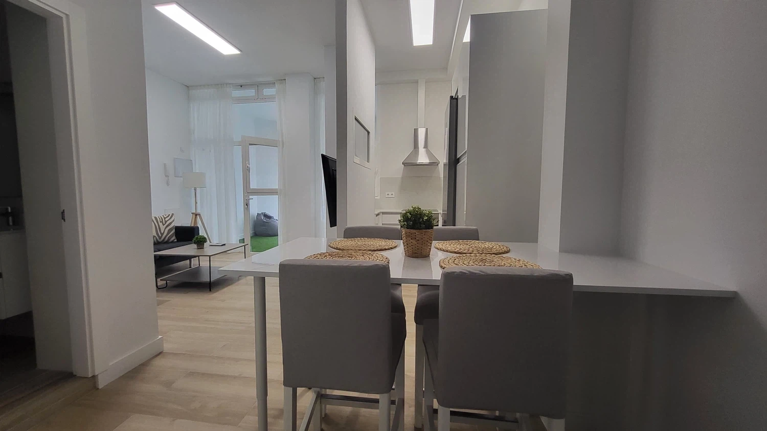 La cocina independiente está totalmente equipada con electrodomésticos de última generación, incluyendo cocina de inducción, nevera, congelador, lavadora, horno, microondas, cafetera, tostadora, hervidor, exprimidor y una completa dotación de menaje y utensilios de cocina. Esto permite a los huéspedes preparar comidas y disfrutar de momentos gastronómicos en el apartamento.
