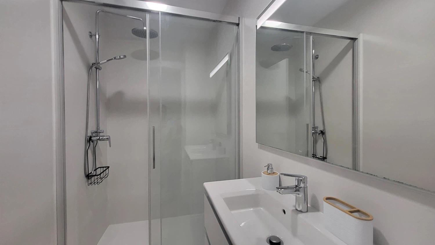 La vivienda cuenta con dos dormitorios que pueden alojar hasta 4 personas cómodamente. Dispone de una cama queen sizey dos camas individuales, ofreciendo flexibilidad para diferentes configuraciones de huéspedes. Los dos baños con ducha garantizan comodidad y privacidad durante su estancia.