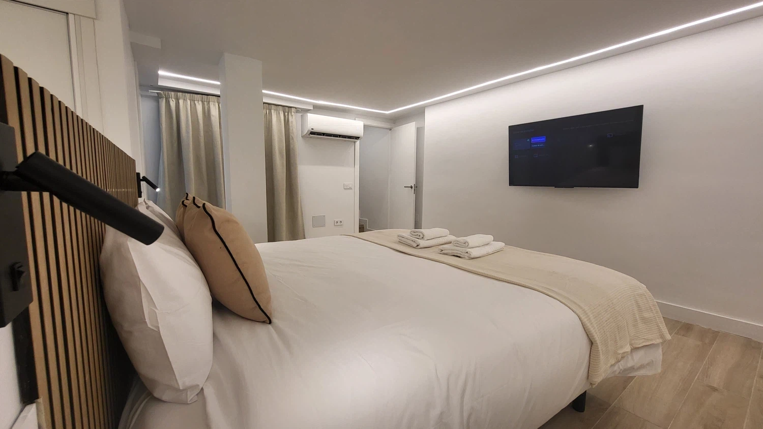 El espacio interior está climatizado con aire acondicionado y bomba de calor, asegurando una temperatura agradable en cualquier época del año. Además, cuenta con conexión WiFi, dos televisores, plancha, radio y otros detalles que hacen de la estancia una experiencia confortable.