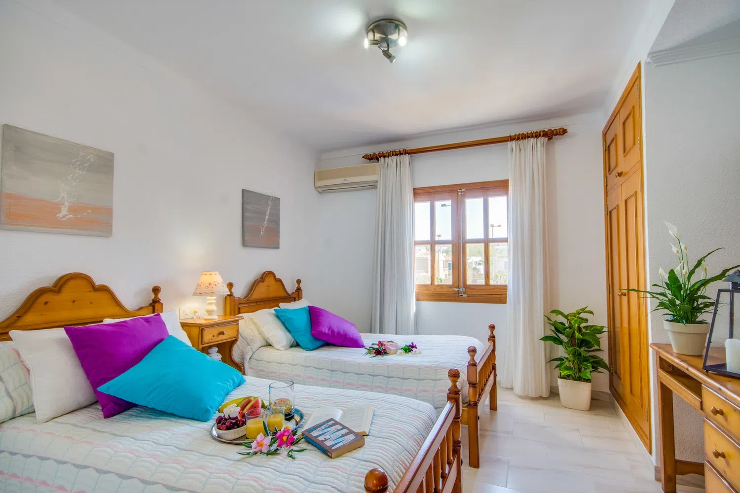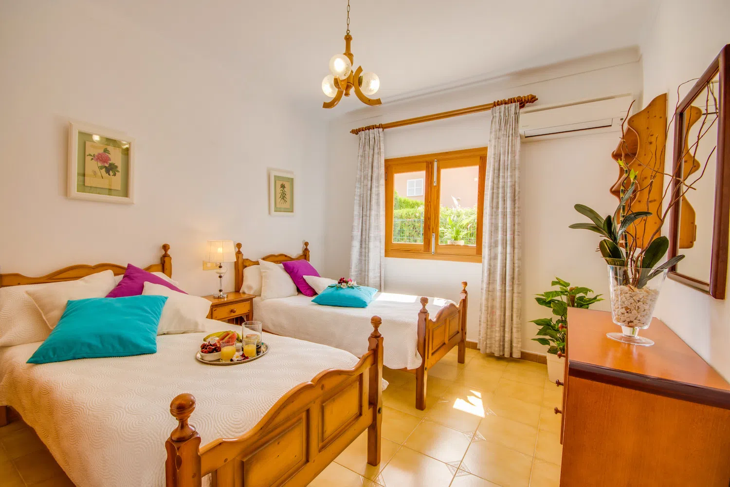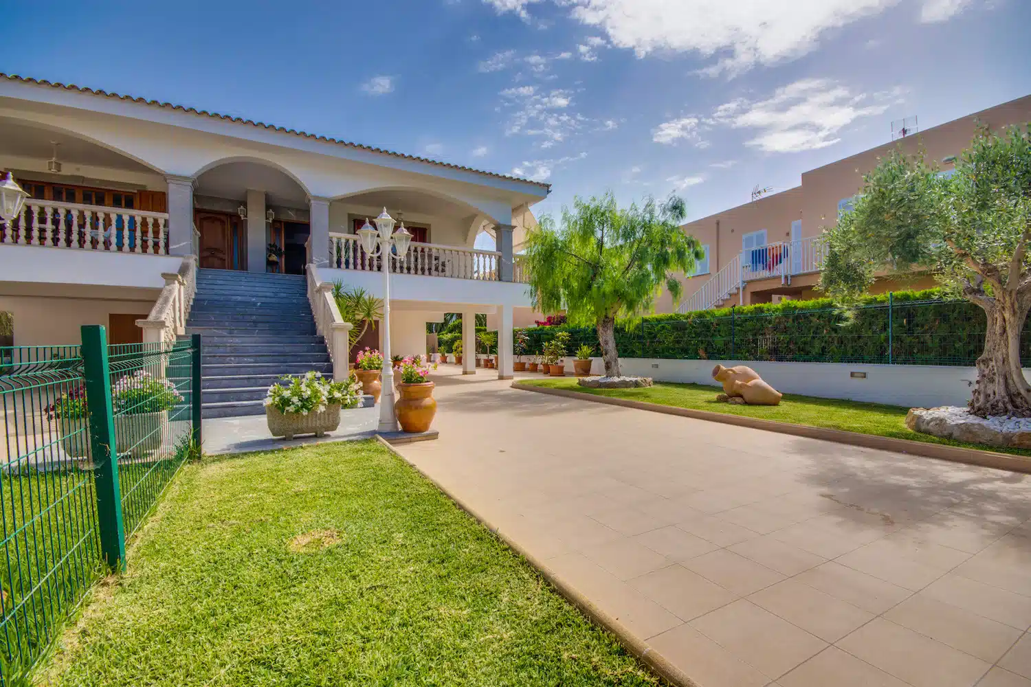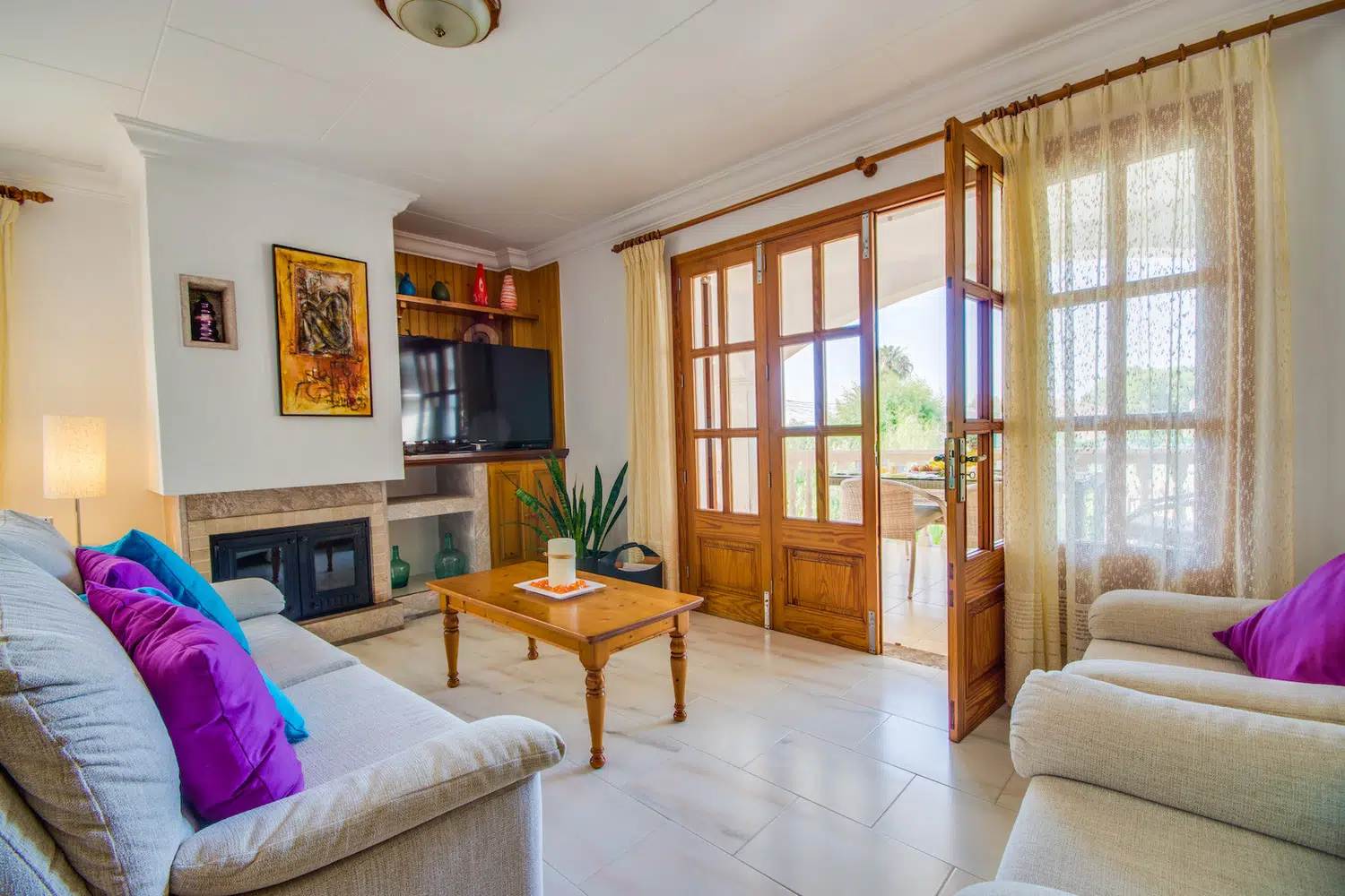 “Flor” es una acogedora casa con piscina de agua salada de tamaño 6m x 4m situada a pocos metros de playa de Muro cerca del puerto de Alcudia. La zona exterior de esta casa, cuenta con una terraza cubierta con una gran mesa de comedor donde comer al aire libre. Aquí puede disfrutar del desayuno, la barbacoa por la noche o de agradables momentos en familia o con amigos. La piscina, equipada con cómodas tumbonas donde relajarse al sol, dispone también de una barrera infantil móvil, para los más pequeños si fuese necesario.