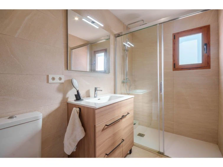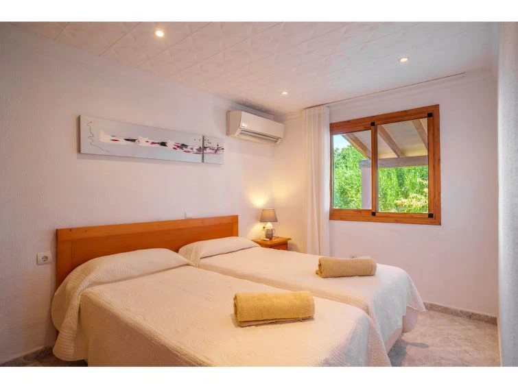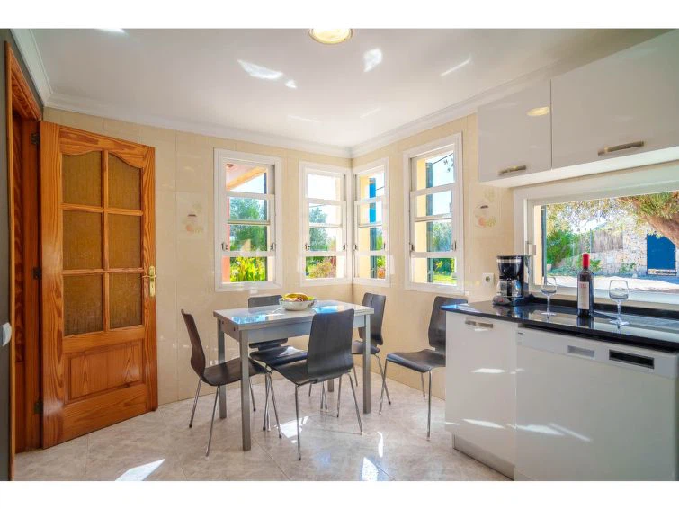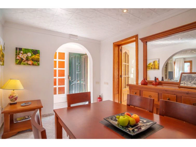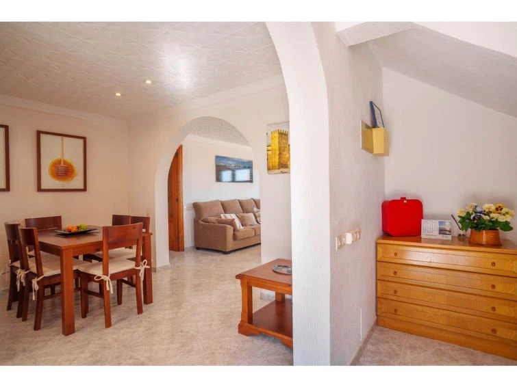 "Sa Olivera", casa 3 estancias 80 m2 en 2 plantas. Con mobiliario bonito: salón-comedor con mesa de comedor, TV satélite, TV digital, DVD, calefacción eléctrica y aire acondicionado. Salida a la terraza. 1 dorm. con 2 camas, calefacción eléctrica y aire acondicionado. 1 dorm. con 1 cama de matrimonio (180 cm), calefacción eléctrica y aire acondicionado. Cocina (horno, lavavajillas, 4 placas de vitrocerámica, tostadora, hervidor de agua eléctrico, microondas, congelador, cafetera eléctrica) con mesa de comedor. Baño/WC, ducha/WC. Terraza 20 m2, cubierta, terraza 15 m2. Muebles de terraza, barbacoa, tumbonas. Vista bonita al jardín. El alojamiento dispone de: lavadora, secador de pelo. Internet (Wifi, gratis). A tener en cuenta: casa para no fumadores. 2 camas adicionales se encuentran en la "torre", acceso exterior. ET/2356