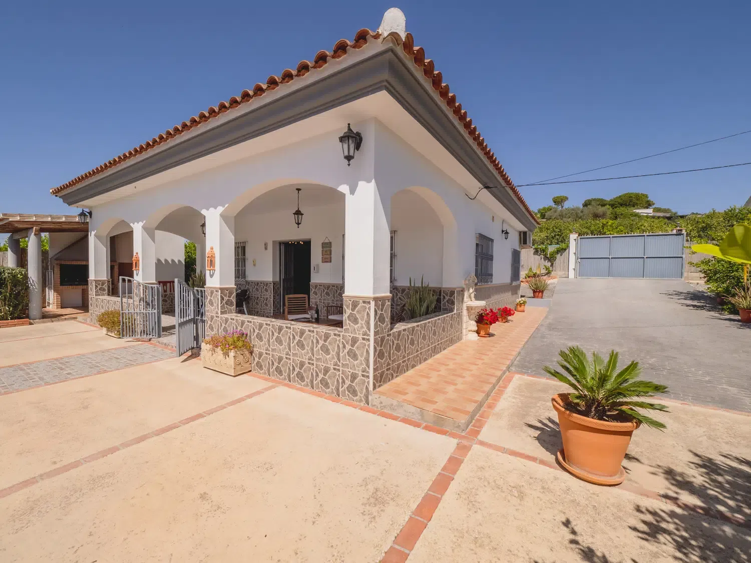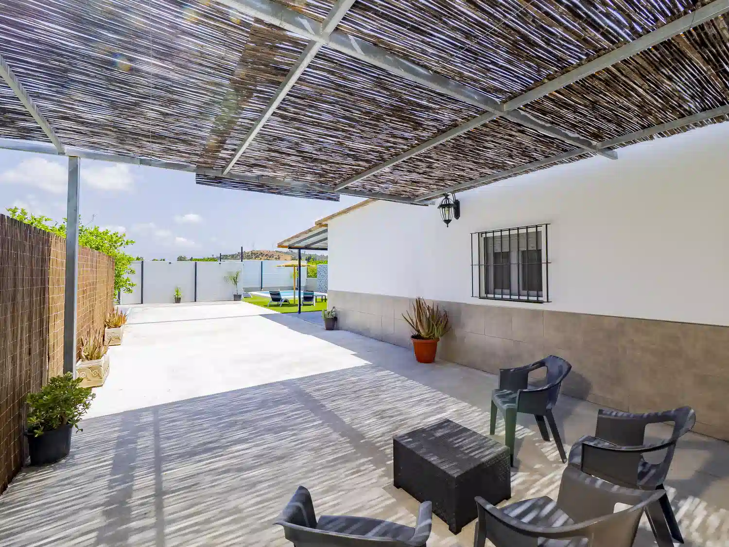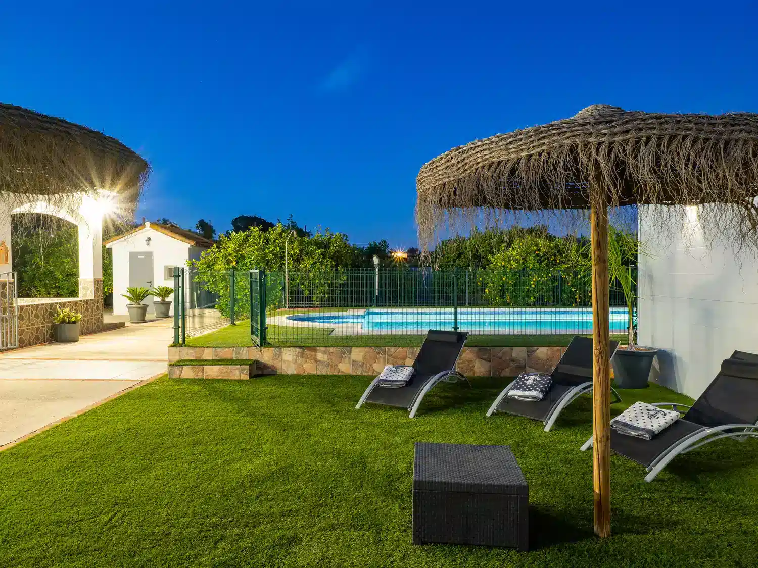 En el exterior, disfrutarás de dos piscinas privadas de agua salada y valladas, zonas ajardinadas con hamacas, amplias terrazas, barbacoa y espacios ideales para comidas al aire libre o relajarte mientras los más pequeños se divierten. Además, hay baños exteriores para mayor comodidad. 🏊♂️🍽️🌞