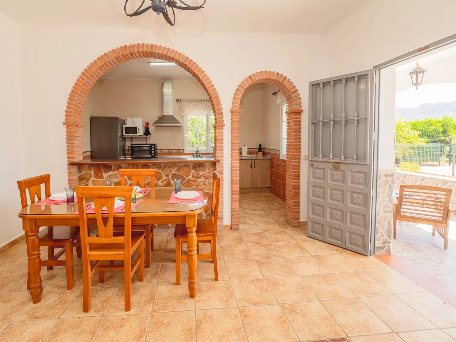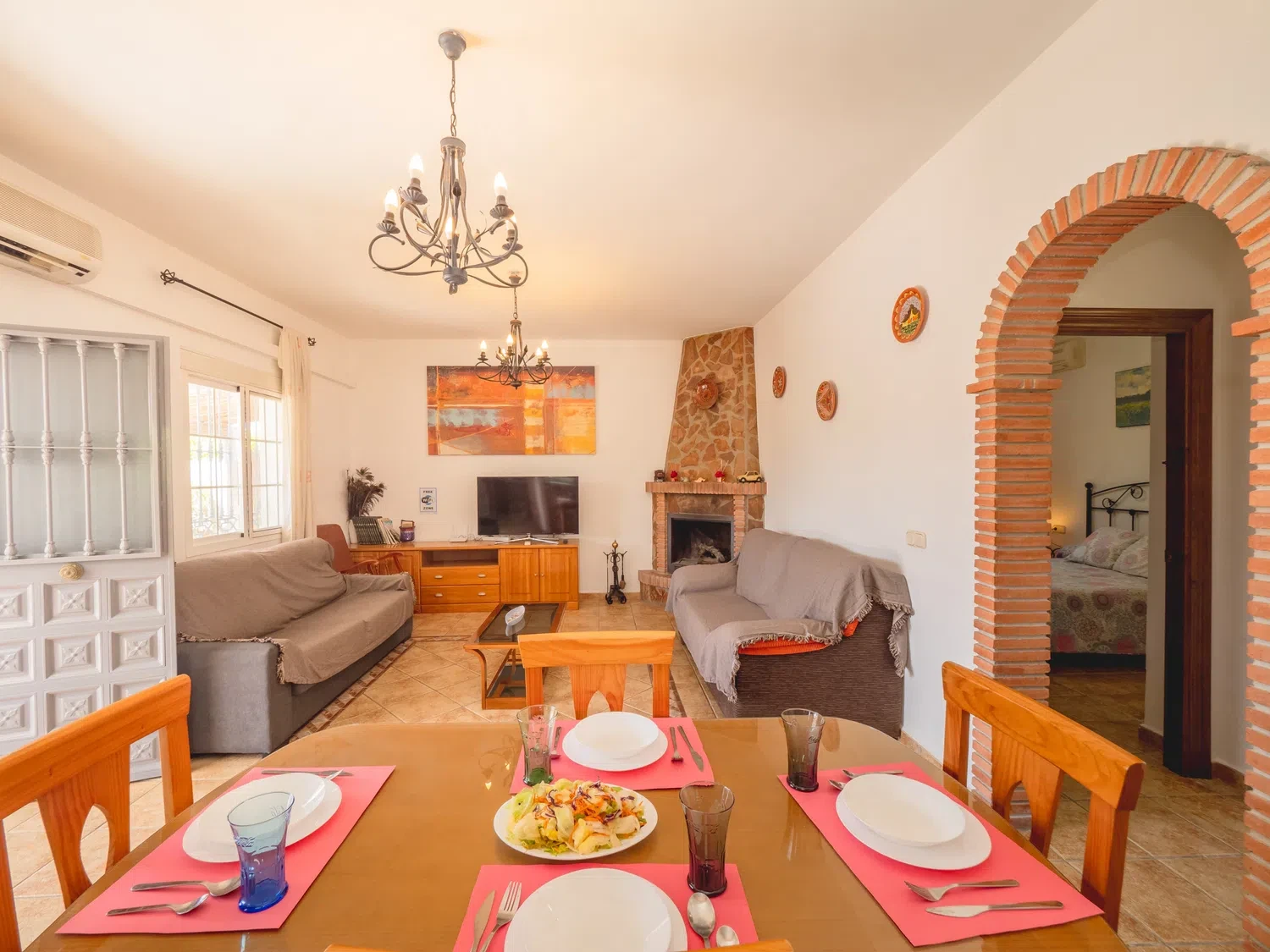 El interior de ambas casas se distribuye en 5 dormitorios (algunos con cama de matrimonio y otros con camas individuales o literas), todos con aire acondicionado, mosquiteras y espacio para equipaje. Los salones-comedor ofrecen un ambiente acogedor con chimenea, sofás, televisión e internet, y las cocinas americanas están totalmente equipadas con vitrocerámica, horno, microondas, lavavajillas, frigorífico, lavadora y todo el menaje necesario.