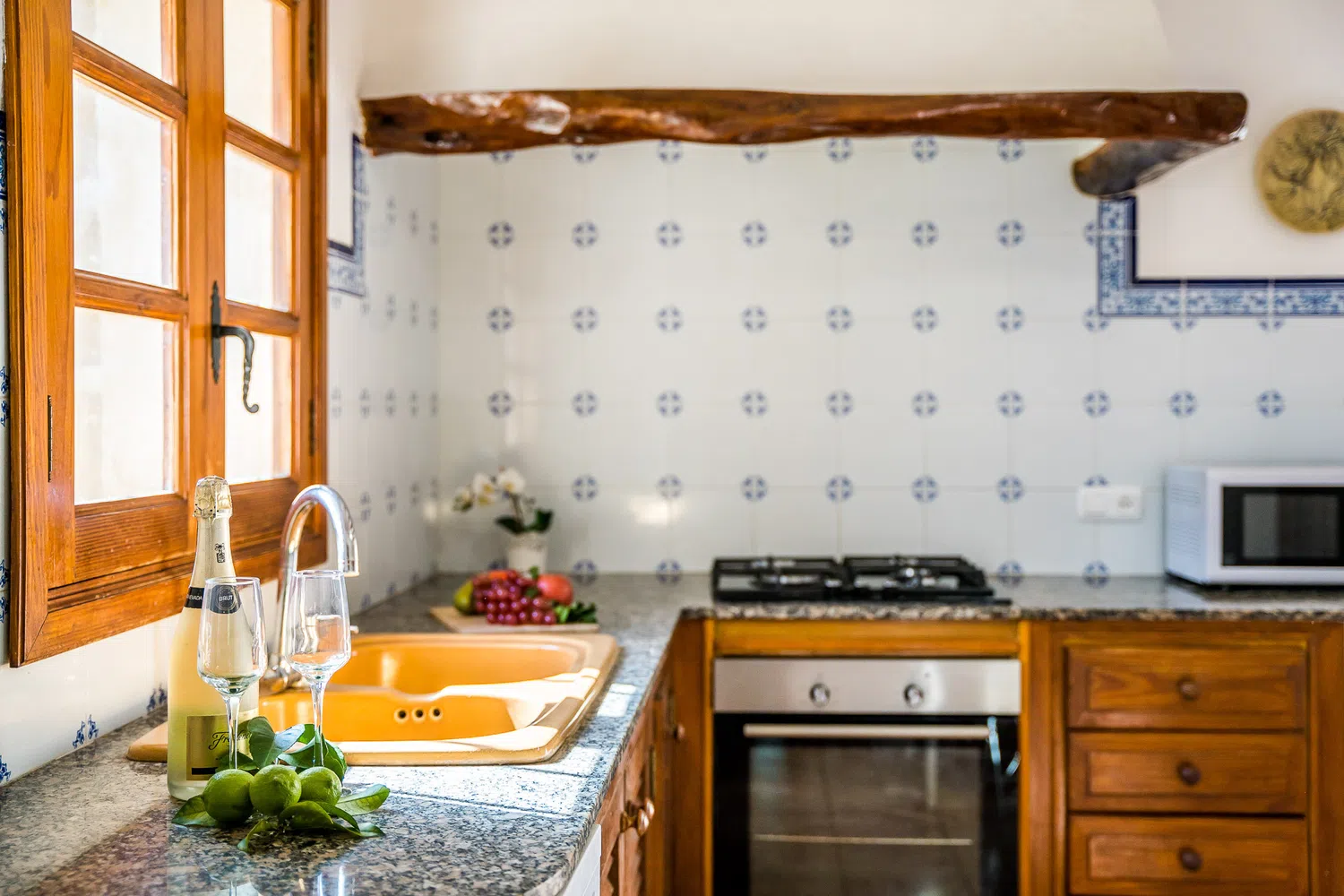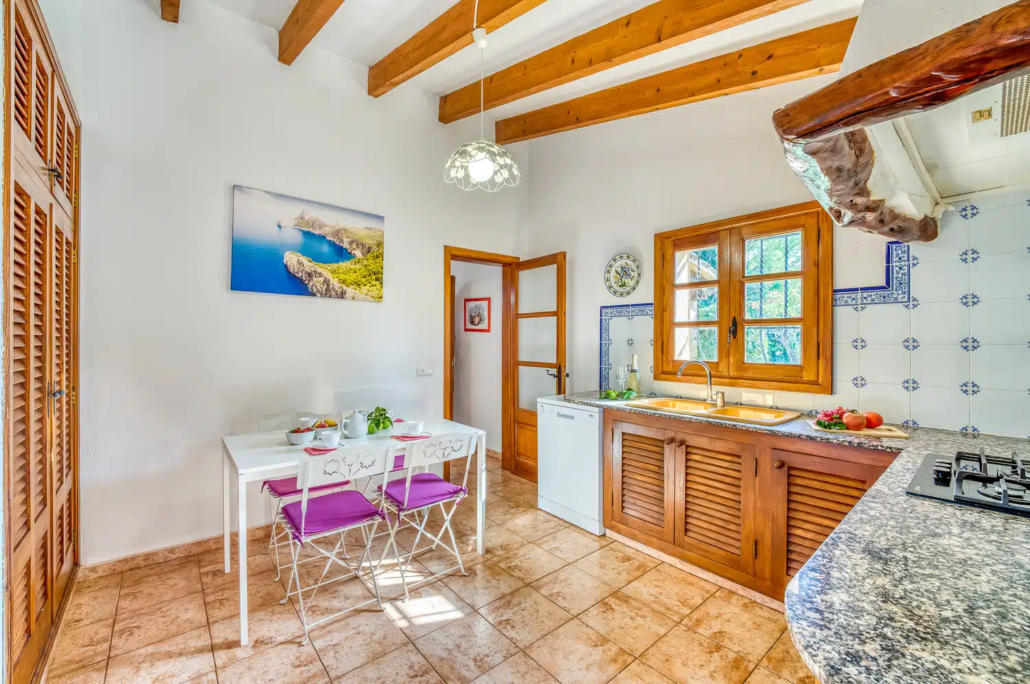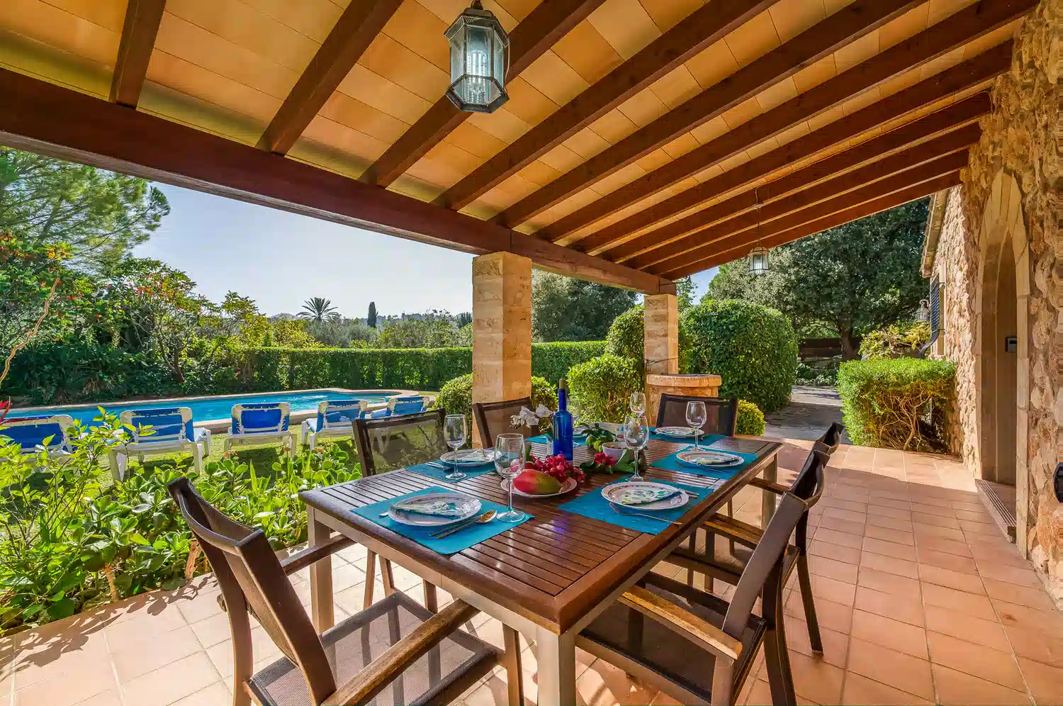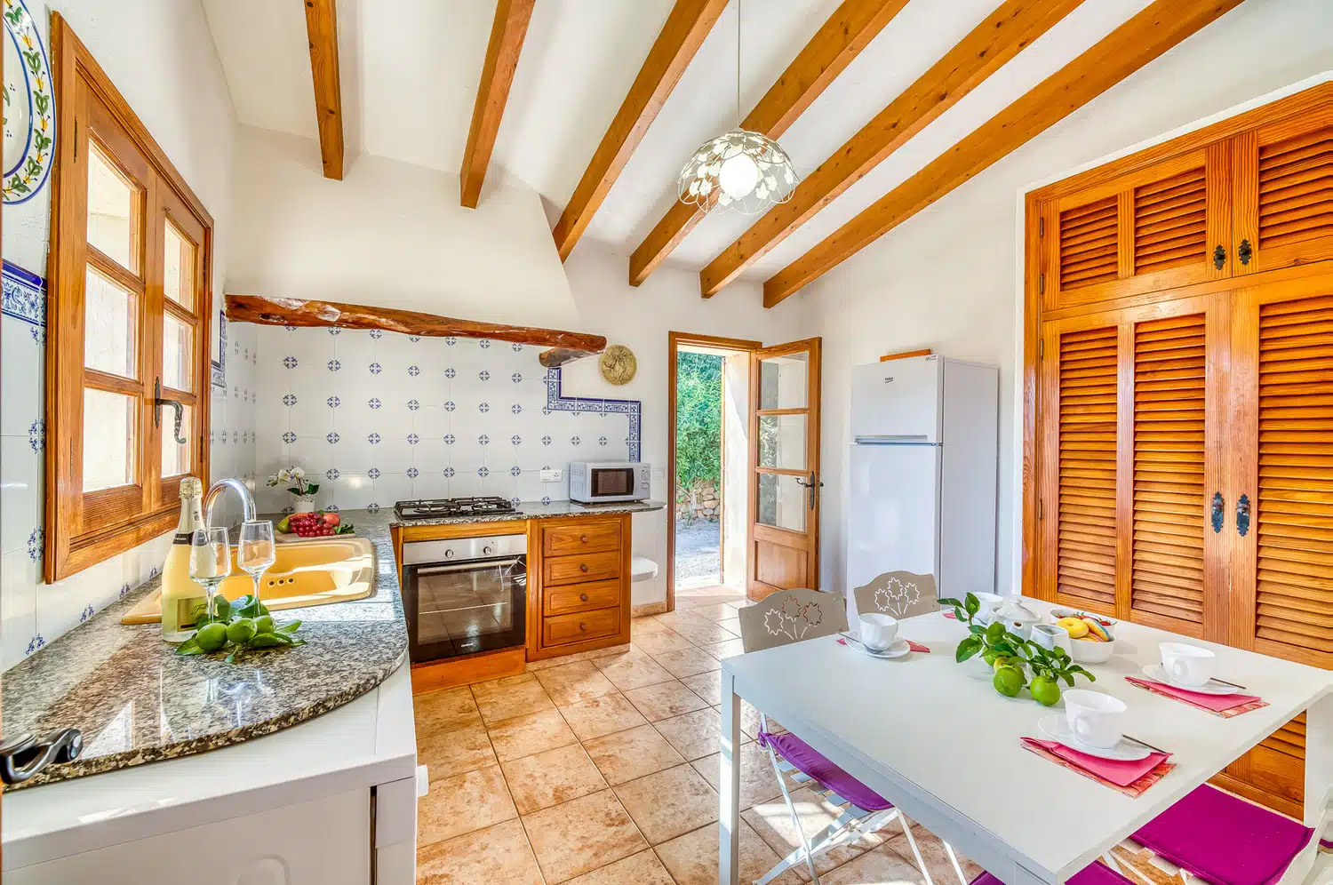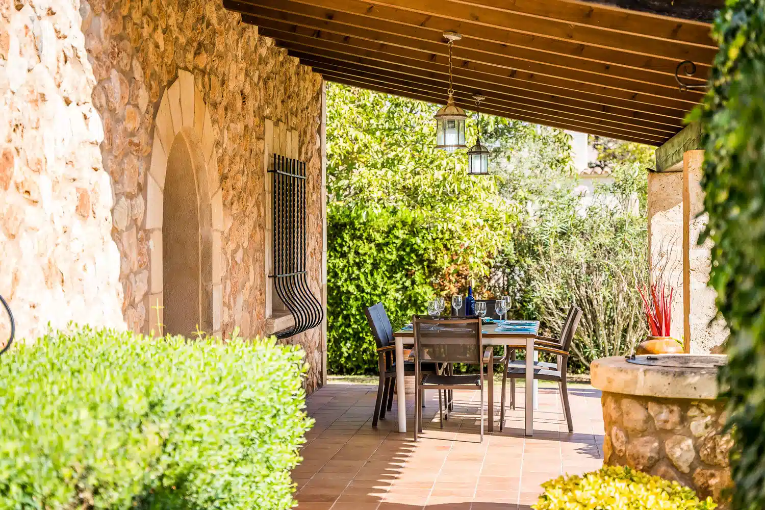 Podrá compartir deliciosas comidas en la terraza cubierta con mesa para seis personas o preparar auténticas parrilladas mallorquinas en la barbacoa de piedra, con acceso directo a la cocina.