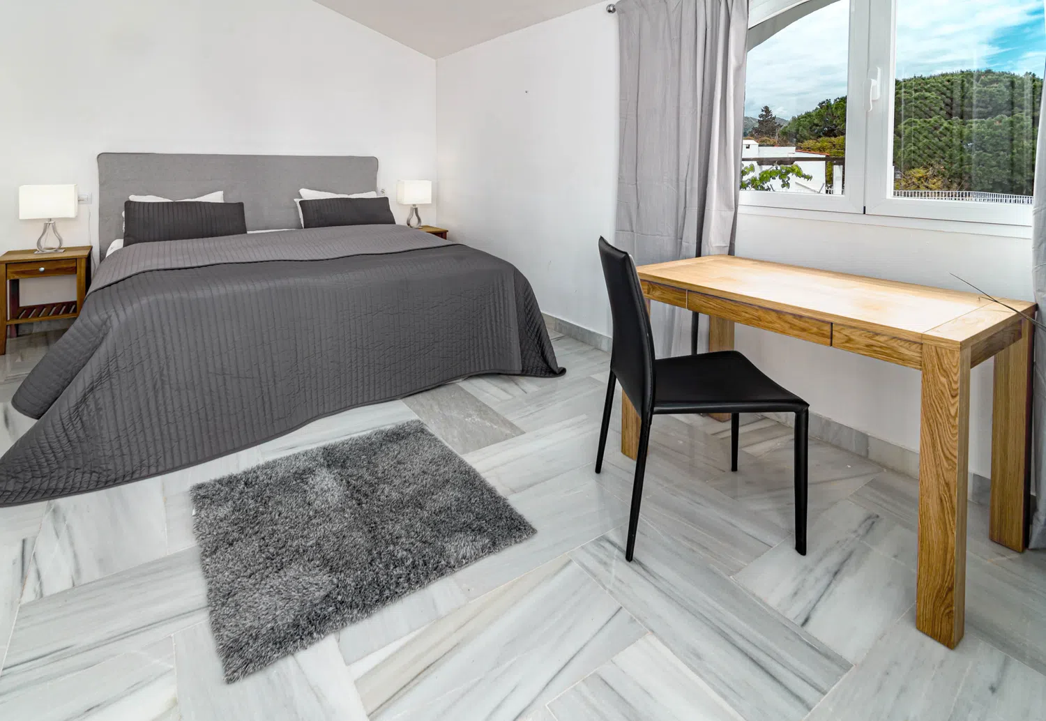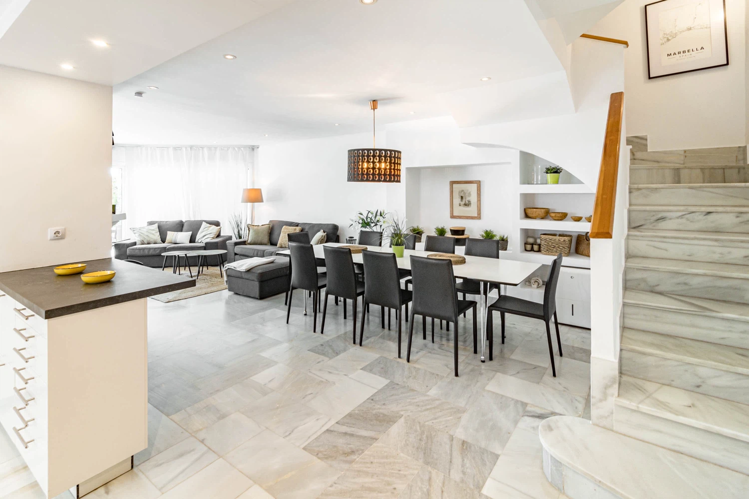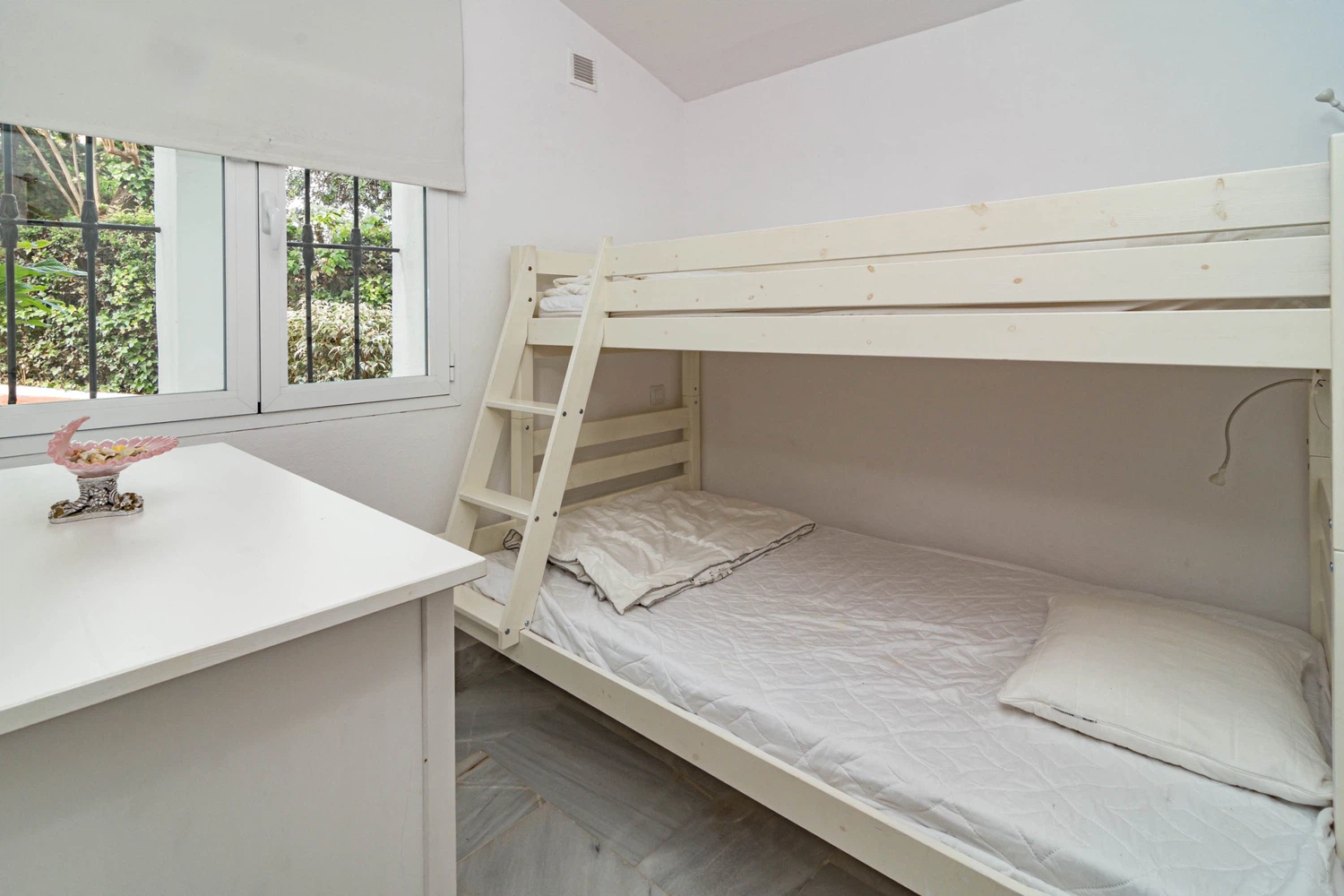 La casa adosada en Marbella tiene 4 dormitorios y puede alojar a 6 personas. La casa adosada está amueblada con buen gusto, totalmente equipada y tiene 140 m². Se extiende sobre tres plantas, y dos de las habitaciones tienen acceso directo a una terraza/balcón. Los dos baños son en suite, con bañera o ducha. Desde la espaciosa sala de estar y el comedor combinado para disfrutar de comidas agradables, puede ir directamente a la terraza de la planta baja y al pequeño jardín. Desde allí puede acceder a la piscina compartida para disfrutar de agradables baños. Tiene vistas al jardín. La propiedad se encuentra a 800 m del campo de golf Monte Paraiso Country Club, a 1 km de la reserva natural Cascada de Camoján, a 2 km de la playa de arena de Playa de la Fontanilla, a 3 km del restaurante Sidrería Usategui, a 3 km del supermercado Lidl, a 3 km de la estación de autobuses de Marbella, a 4 km del casco antiguo de Marbella y a 55 km del aeropuerto de Málaga. El pintoresco casco antiguo de Marbella alberga edificios renacentistas encalados, balcones adornados con flores y calles estrechas y sinuosas. La Plaza de los Naranjos atrae a los visitantes con sus naranjos, la iglesia Ermita de Santiago del siglo XVI y los restaurantes con terraza que sirven platos tradicionales como gazpacho y albóndigas. La casa está ubicada en una zona bien comunicada dentro de un complejo residencial. El alojamiento está equipado con los siguientes elementos: jardín, muebles de jardín, terraza, lavadora, plancha, internet (Wi-Fi), calefacción central, aire acondicionado, piscina compartida, aparcamiento abierto cerca del edificio, TV. La cocina independiente tiene estufa, nevera, microondas, horno, congelador, lavavajillas, vajilla/cubertería, utensilios de cocina, cafetera, tostadora y hervidor de agua.