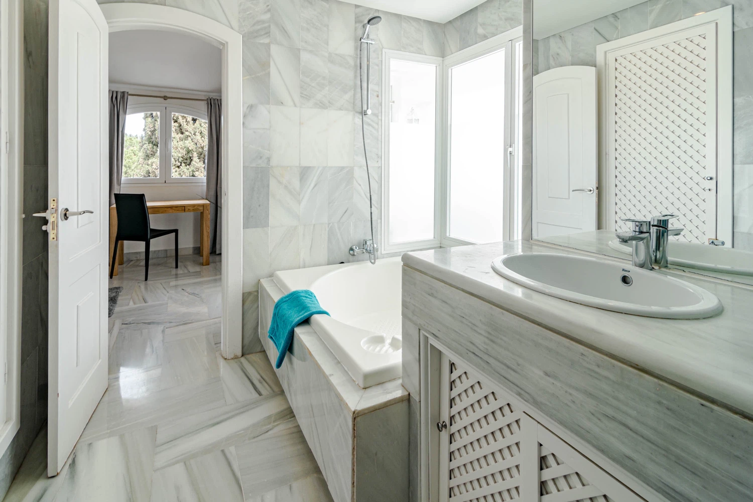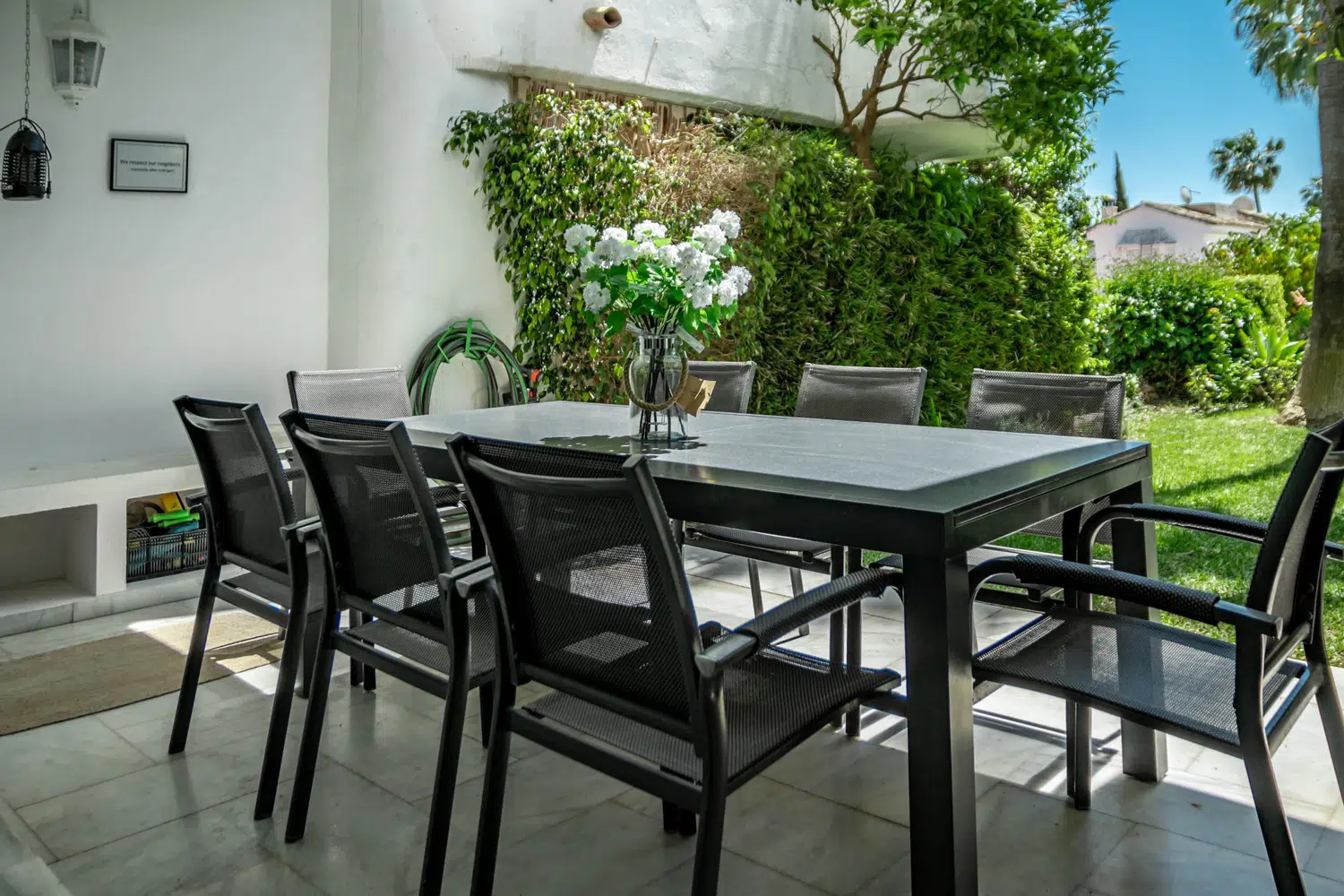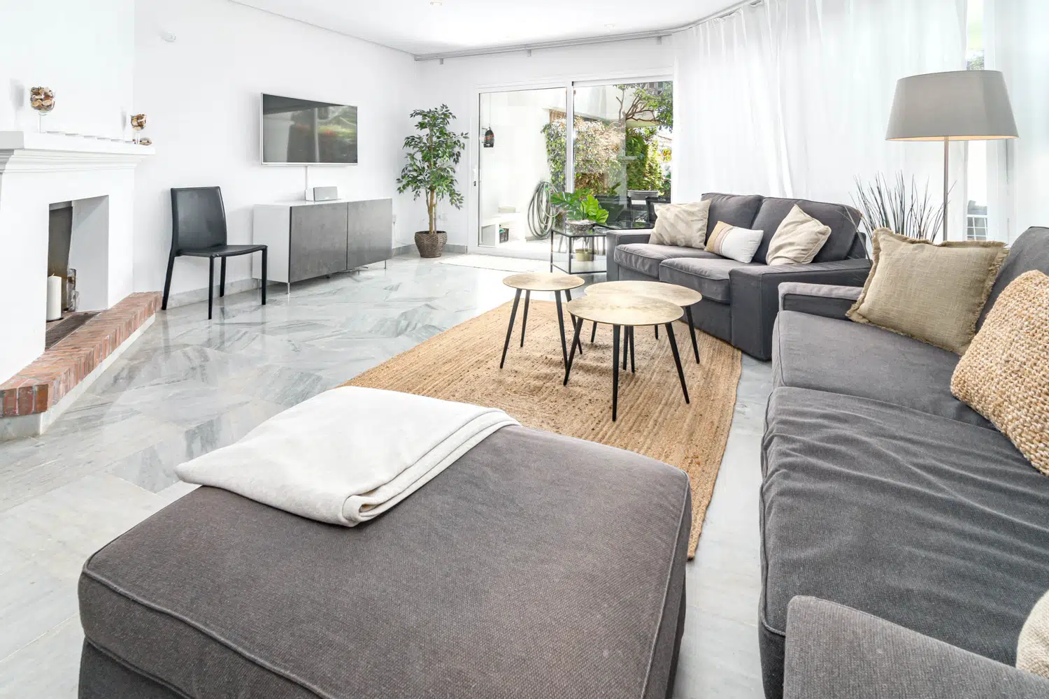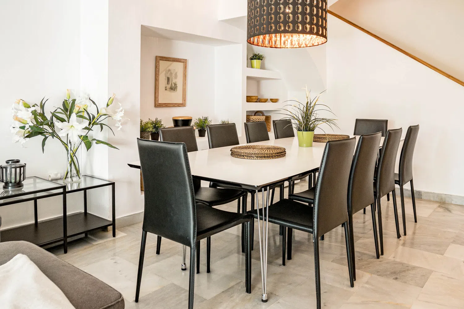 La casa adosada en Marbella tiene 4 dormitorios y puede alojar a 6 personas. La casa adosada está amueblada con buen gusto, totalmente equipada y tiene 140 m². Se extiende sobre tres plantas, y dos de las habitaciones tienen acceso directo a una terraza/balcón. Los dos baños son en suite, con bañera o ducha. Desde la espaciosa sala de estar y el comedor combinado para disfrutar de comidas agradables, puede ir directamente a la terraza de la planta baja y al pequeño jardín. Desde allí puede acceder a la piscina compartida para disfrutar de agradables baños. Tiene vistas al jardín. La propiedad se encuentra a 800 m del campo de golf Monte Paraiso Country Club, a 1 km de la reserva natural Cascada de Camoján, a 2 km de la playa de arena de Playa de la Fontanilla, a 3 km del restaurante Sidrería Usategui, a 3 km del supermercado Lidl, a 3 km de la estación de autobuses de Marbella, a 4 km del casco antiguo de Marbella y a 55 km del aeropuerto de Málaga. El pintoresco casco antiguo de Marbella alberga edificios renacentistas encalados, balcones adornados con flores y calles estrechas y sinuosas. La Plaza de los Naranjos atrae a los visitantes con sus naranjos, la iglesia Ermita de Santiago del siglo XVI y los restaurantes con terraza que sirven platos tradicionales como gazpacho y albóndigas. La casa está ubicada en una zona bien comunicada dentro de un complejo residencial. El alojamiento está equipado con los siguientes elementos: jardín, muebles de jardín, terraza, lavadora, plancha, internet (Wi-Fi), calefacción central, aire acondicionado, piscina compartida, aparcamiento abierto cerca del edificio, TV. La cocina independiente tiene estufa, nevera, microondas, horno, congelador, lavavajillas, vajilla/cubertería, utensilios de cocina, cafetera, tostadora y hervidor de agua.