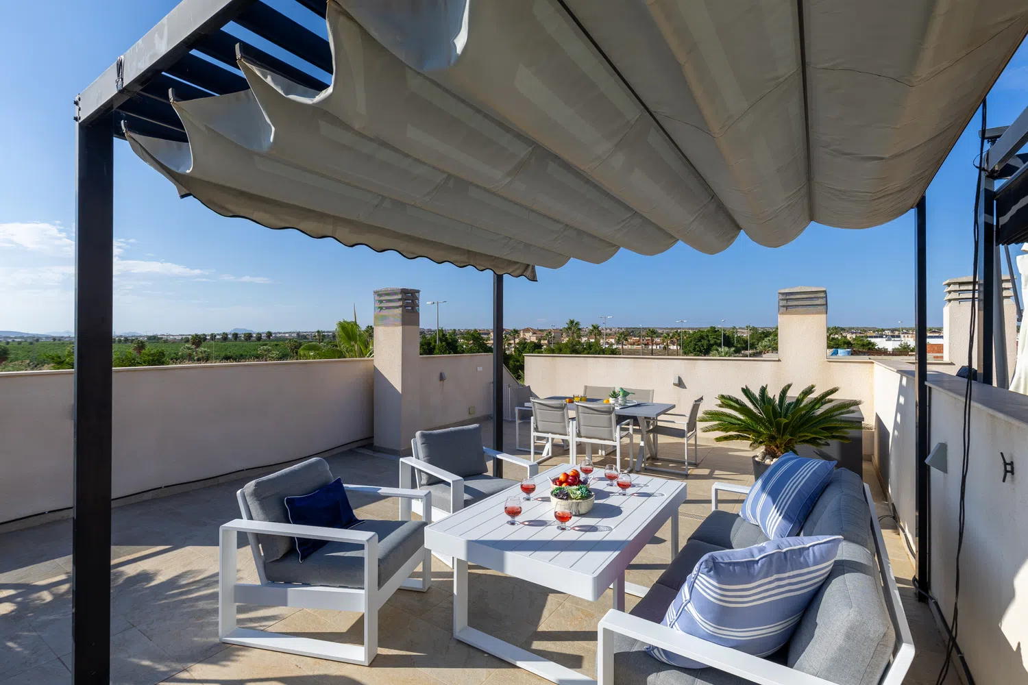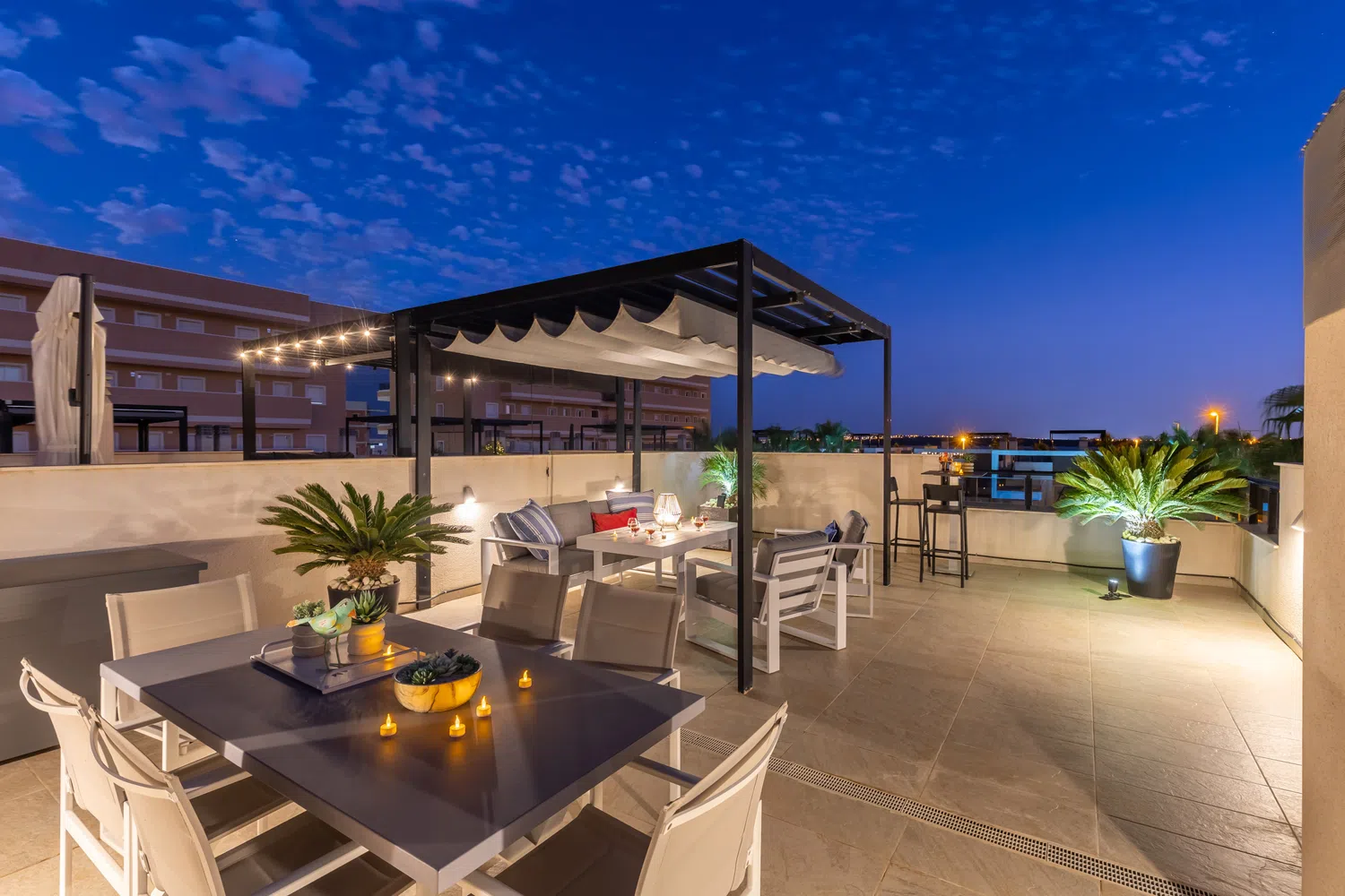 La terraza privada también cuenta con una barbacoa, creando el entorno perfecto para cenas al aire libre. La zona de comedor al aire libre te brinda la oportunidad de disfrutar de deliciosas comidas mientras respiras la brisa marina.