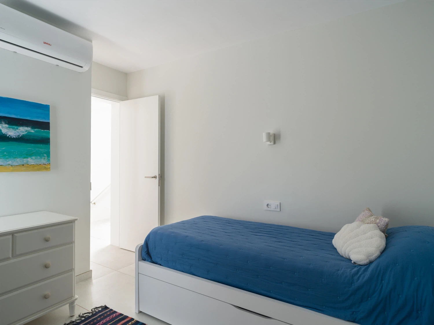 1 dormitorio con cama nido, convertible en 2 camas (0.90 x 2.00 m).