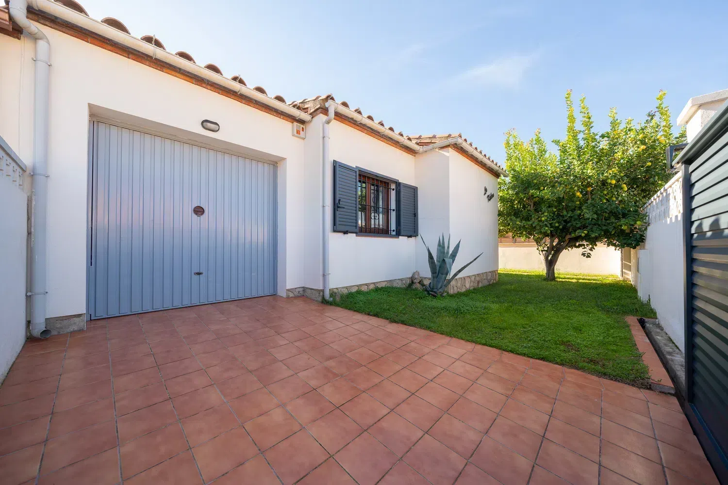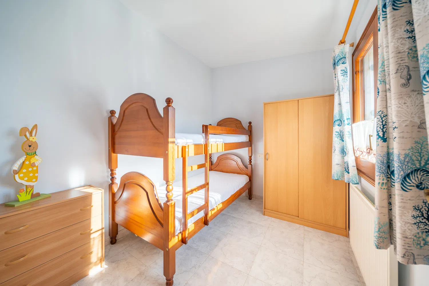 Esta bonita casa se encuentra en L´Escala, cerca al parque natural Montgrí. La casa está distribuida en una sola planta donde se encuentra: la cocina, 3 dormitorios (una con cama doble 1.60m, una con cama doble 1.40m, y otra con 1 litera), un baño con ducha y salón-comedor con salida a la terraza. Podrán disfrutar de la piscina privada con zona de barbacoa de obra.