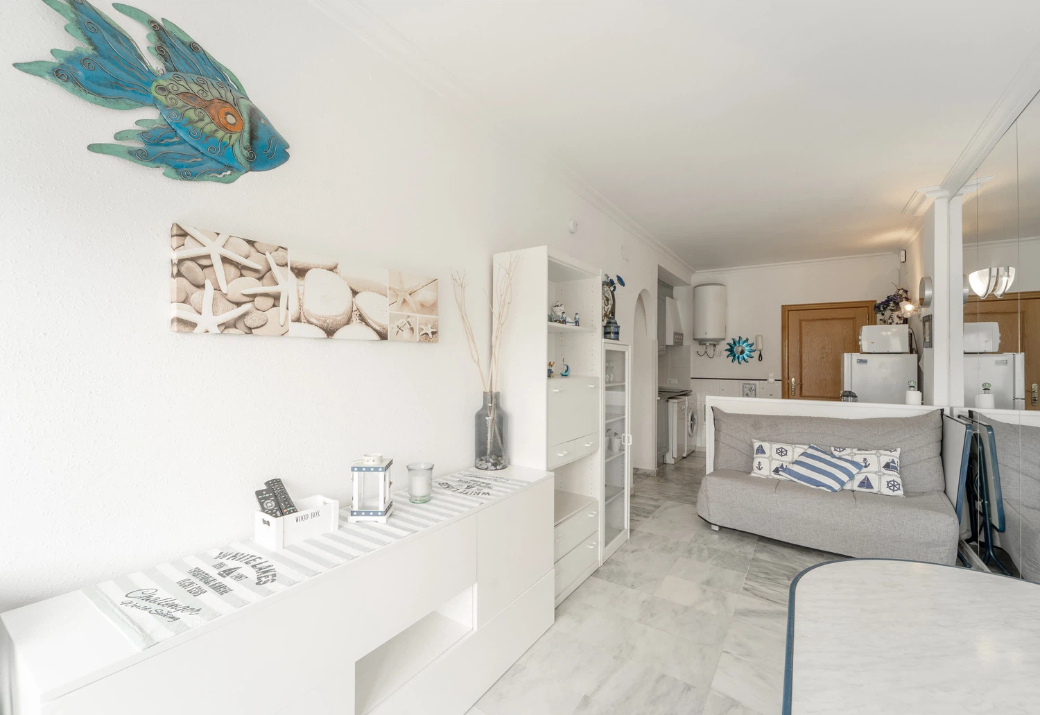 La zona de cocina está completamente equipada con nevera, horno, vitrocerámica, hervidor de agua, cafetera y microondas, además de un lavavajillas para tu comodidad. La sala de estar cuenta con mesa de comedor, sofá cama, Smart TV y acceso directo a una terraza donde podrás disfrutar de un café con vistas al canal. La zona de noche incluye una cama de matrimonio y un baño completo.