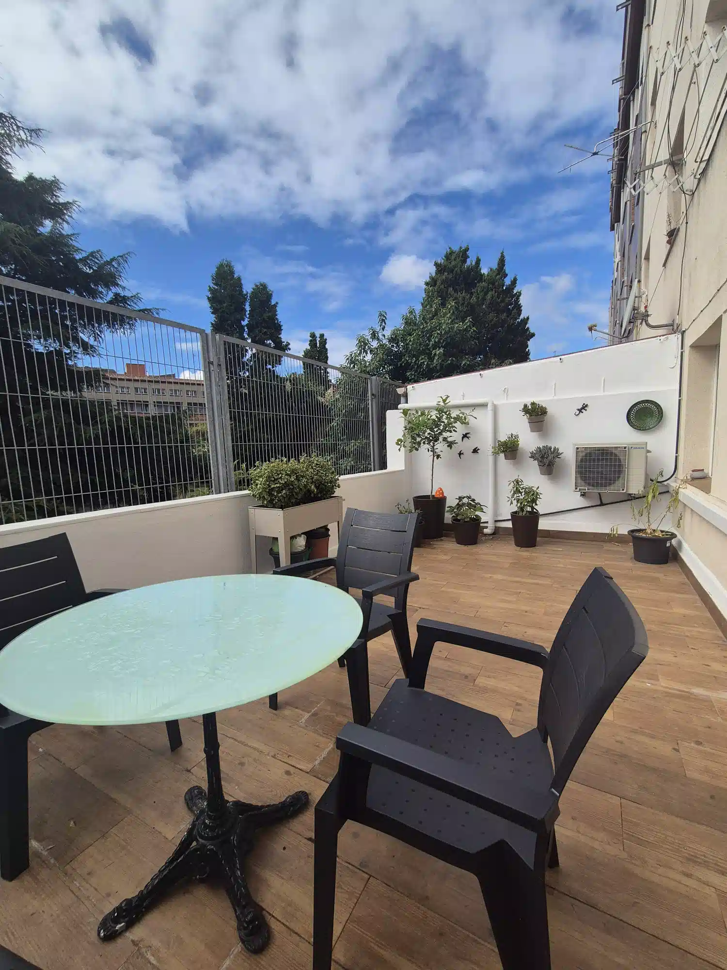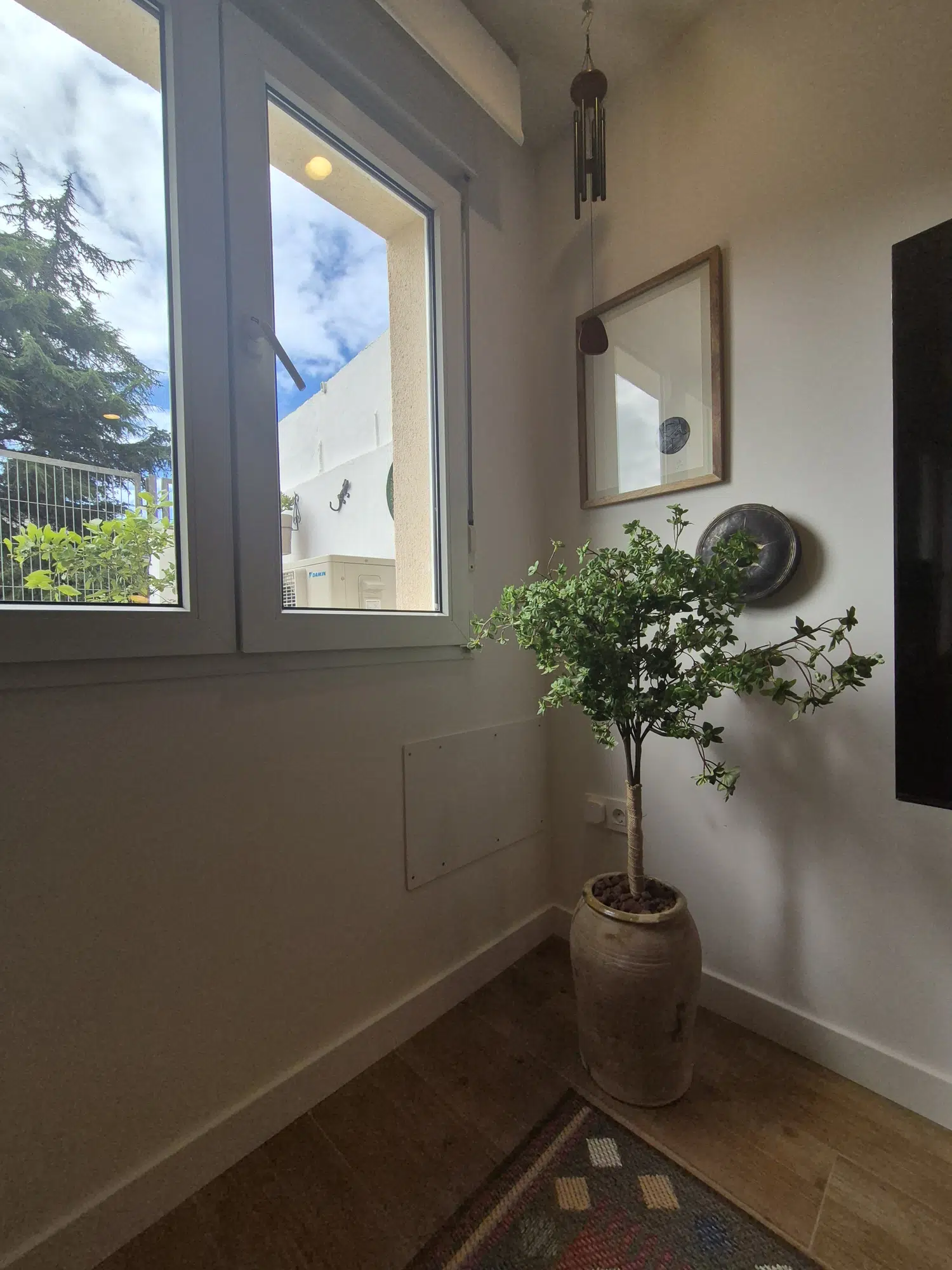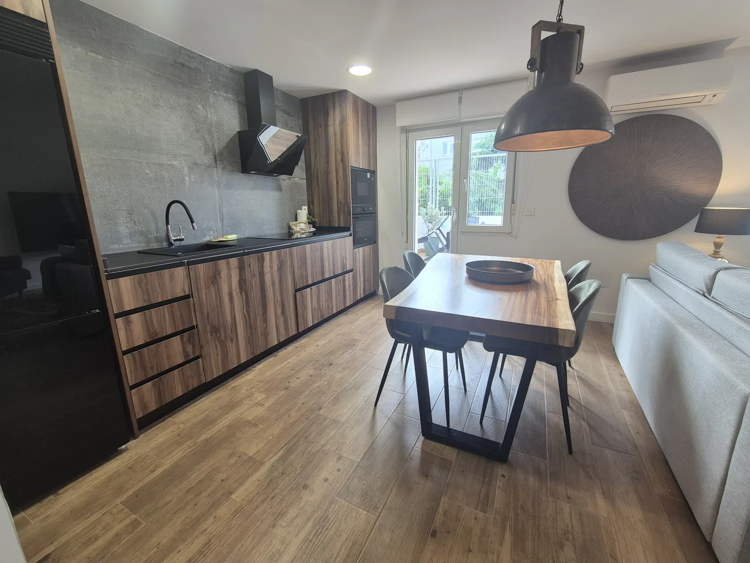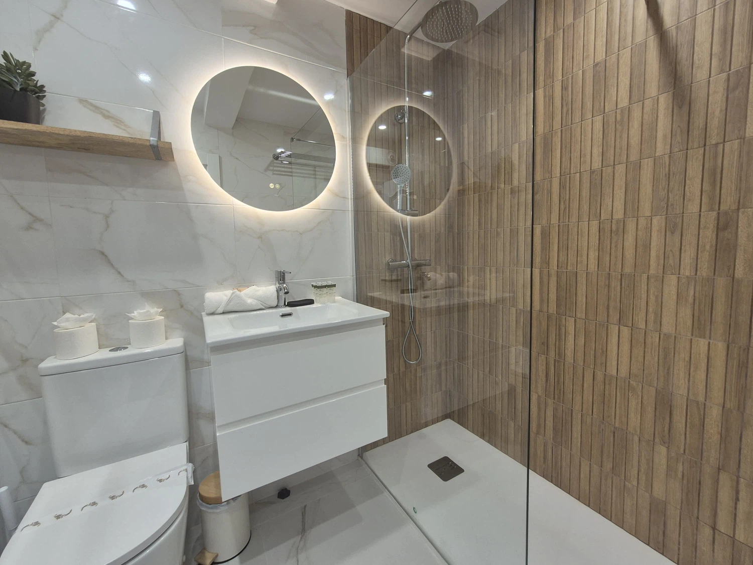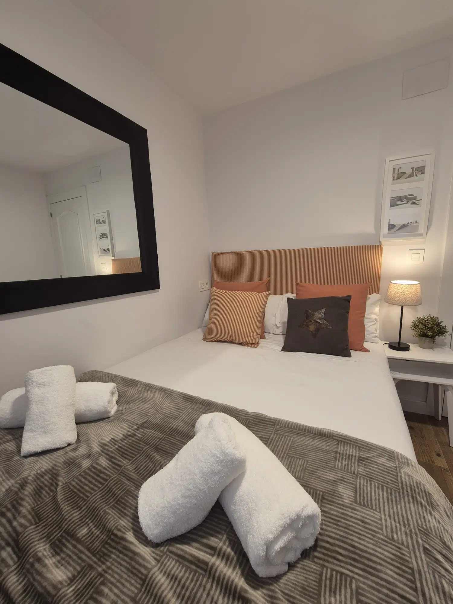 Moderno apartamento recién reformado en El Coto, Gijón. Dispone de 2 dormitorios (uno con cama matrimonial, otro con 2 individuales). Cocina y salón en espacio abierto con sofá cama y baño completo con ducha. Cuenta con una terraza exterior con mesa y sillas y está equipado con 2 Smart TV (una en el salón y otra en la habitación).