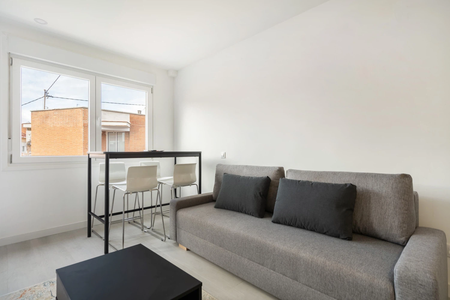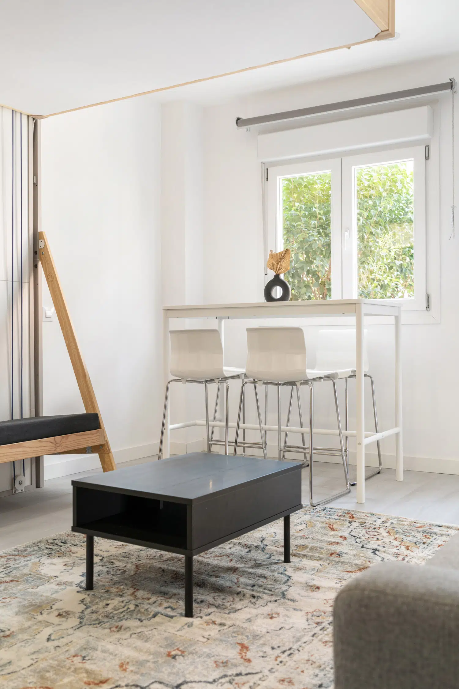 Sala de estar luminosa: Un espacio acogedor donde podrás relajarte después de un día de exploración en Madrid.