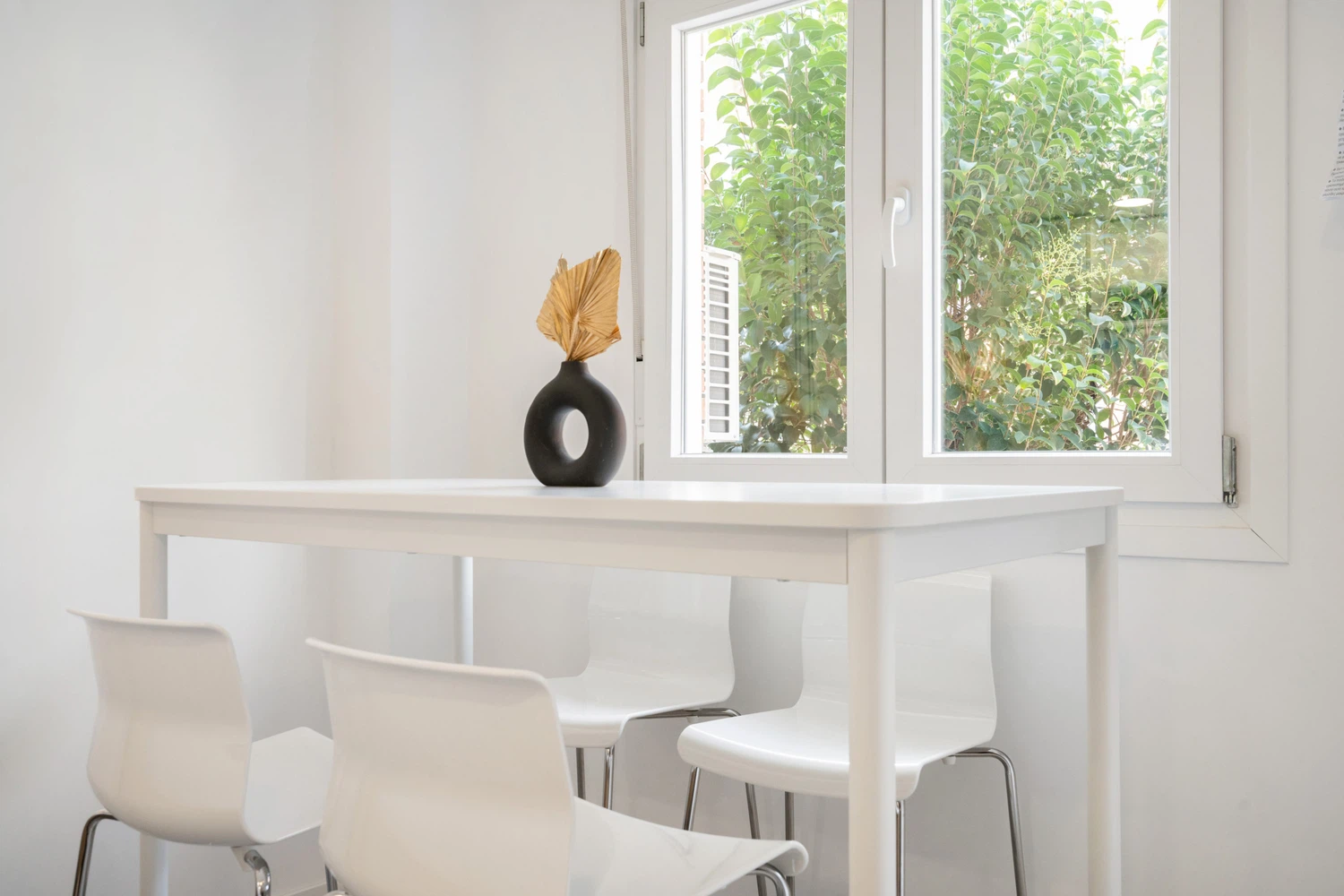 ¡Bienvenido a nuestro encantador estudio completamente reformado, ubicado junto al pintoresco parque Madrid Río y a solo unos pasos de la estación de metro Urgel! Si buscas comodidad, modernidad y una plaza de garaje incluida, ¡has encontrado el lugar perfecto! Este apartamento es ideal para hasta 4 personas, ofreciendo una estancia cómoda y conveniente en una ubicación inmejorable.