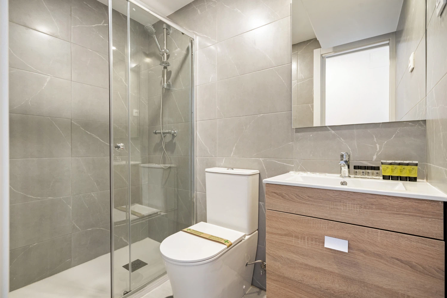 Baño completo: Moderno y limpio, equipado con todas las comodidades necesarias.