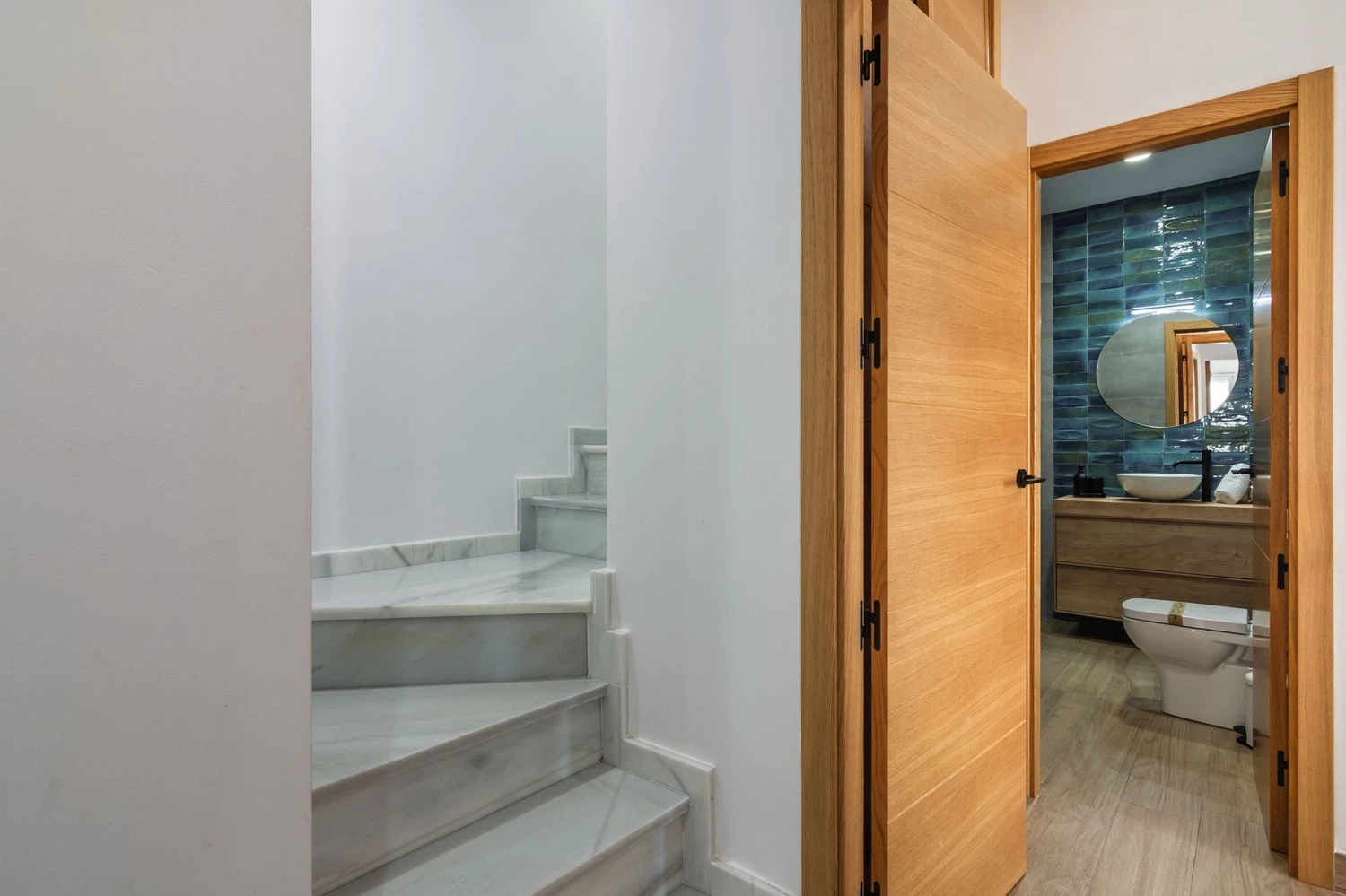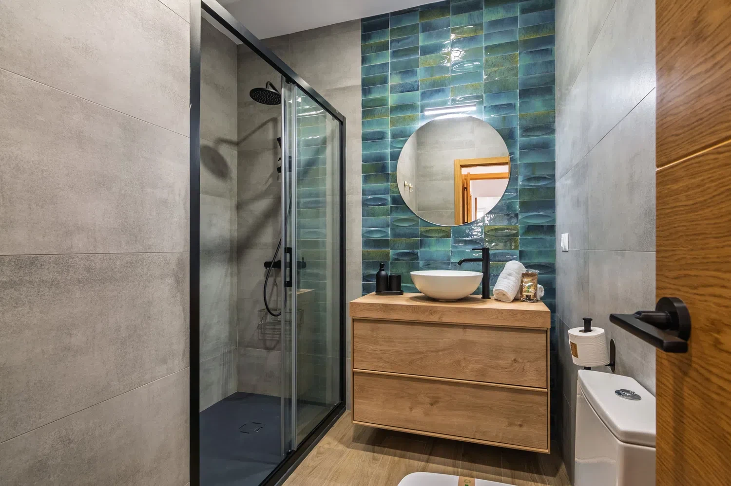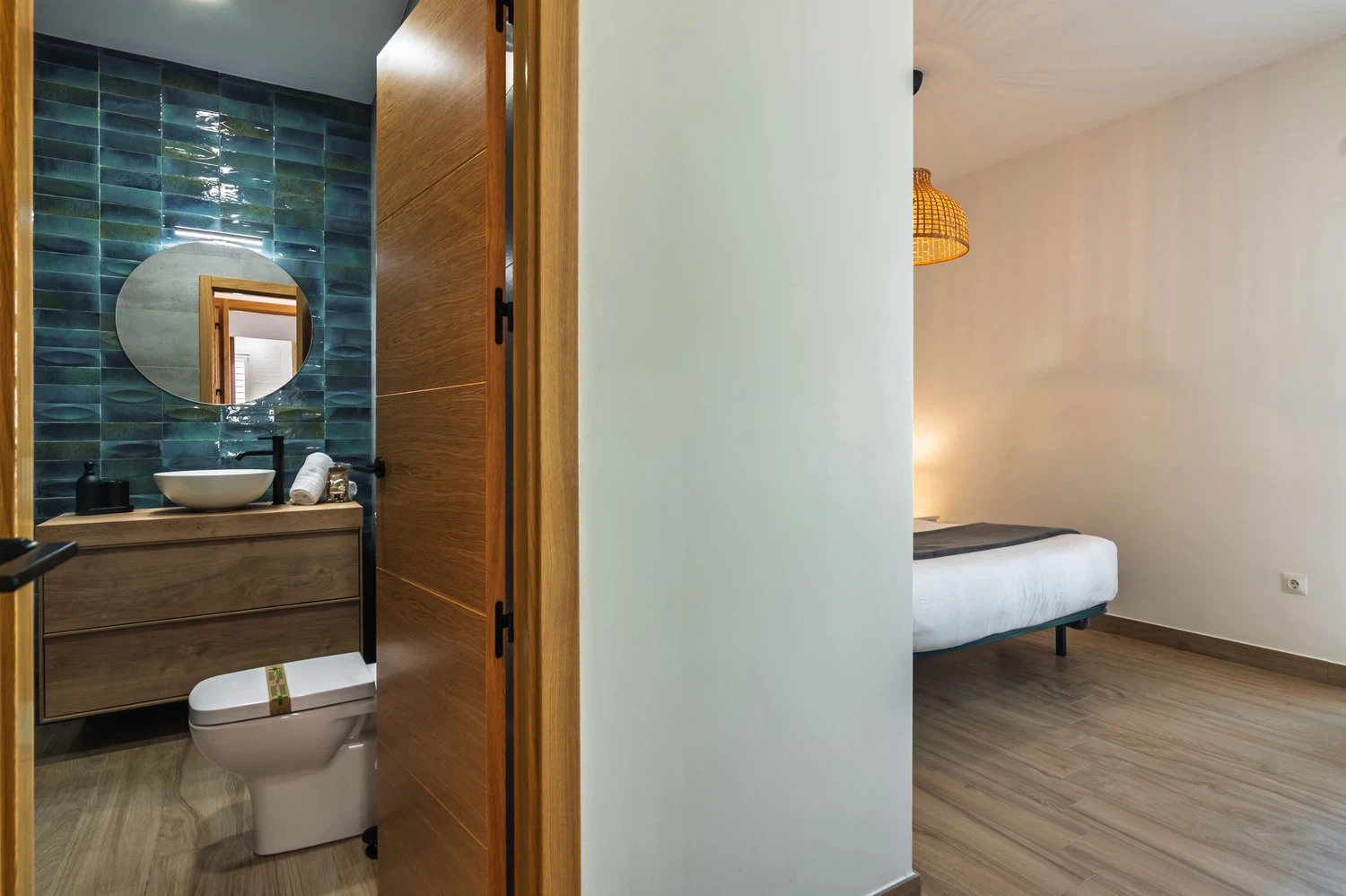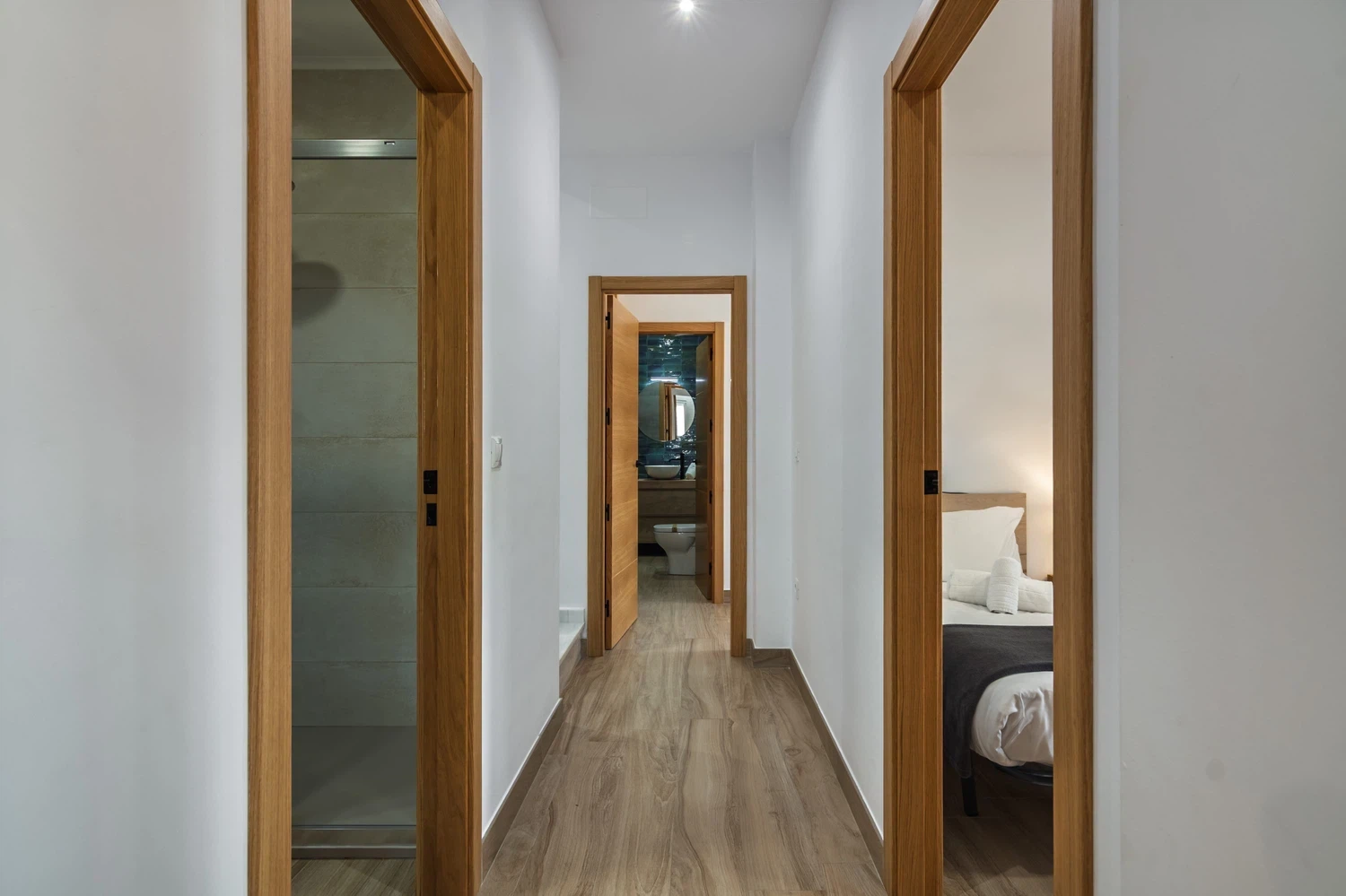 El apartamento cuenta con dos dormitorios bien distribuidos: una cama doble, una cama individual y una litera, ideal para grupos pequeños o familias con niños. Dispone de dos baños completos con ducha, lo que facilita la convivencia y la privacidad de los huéspedes.