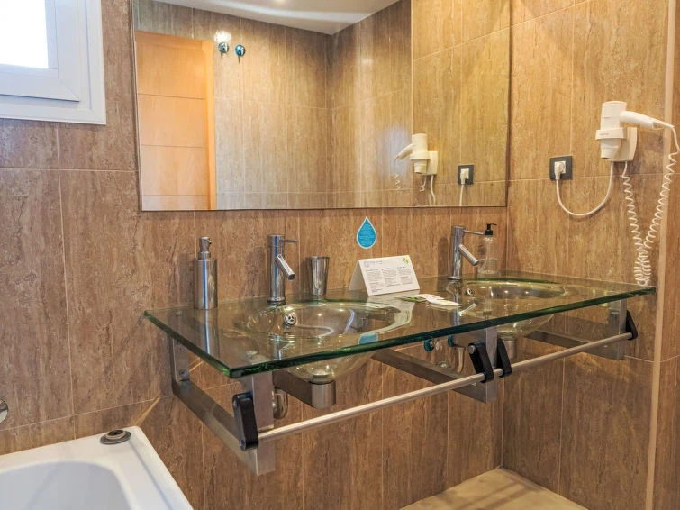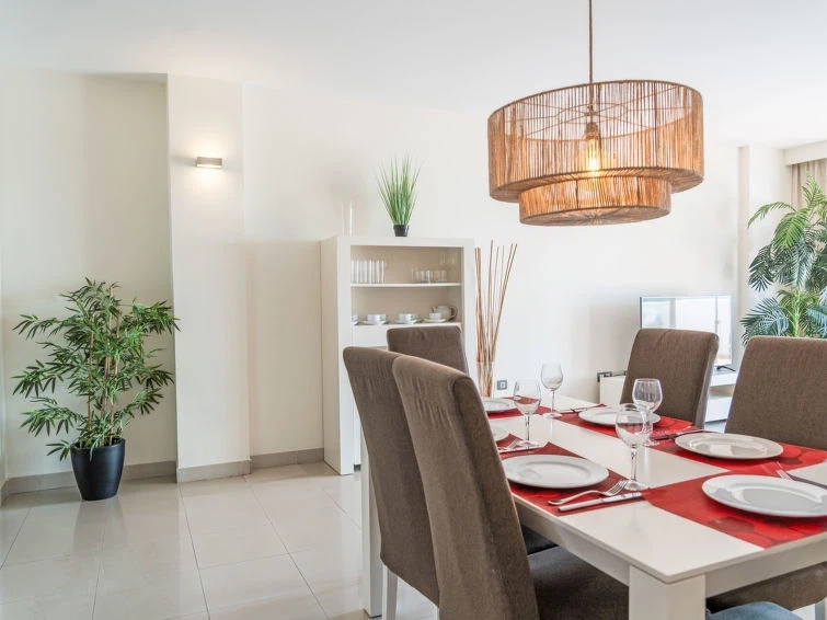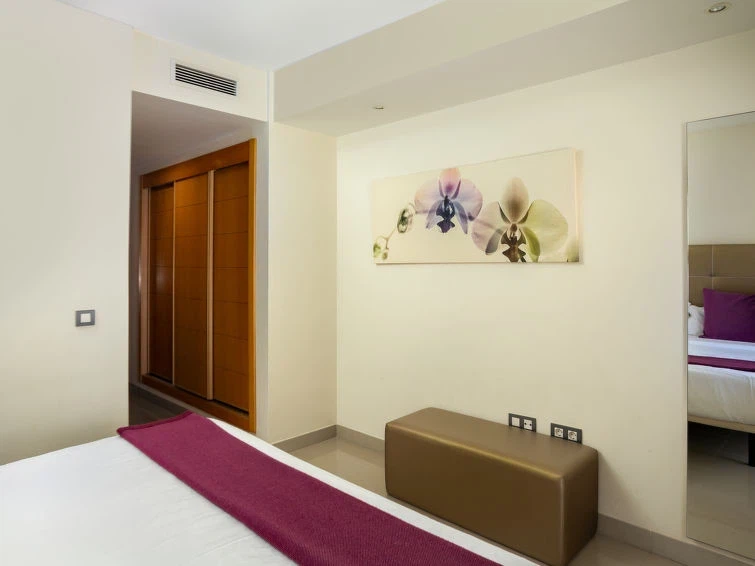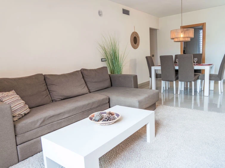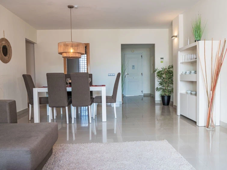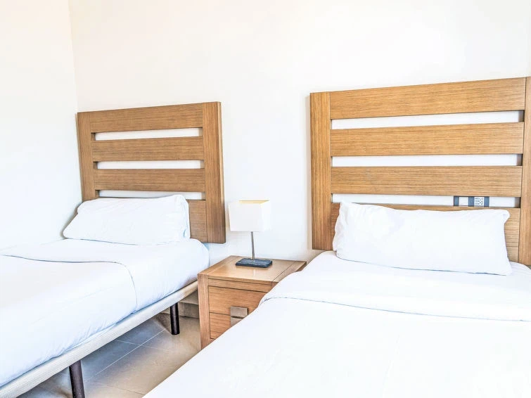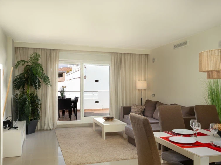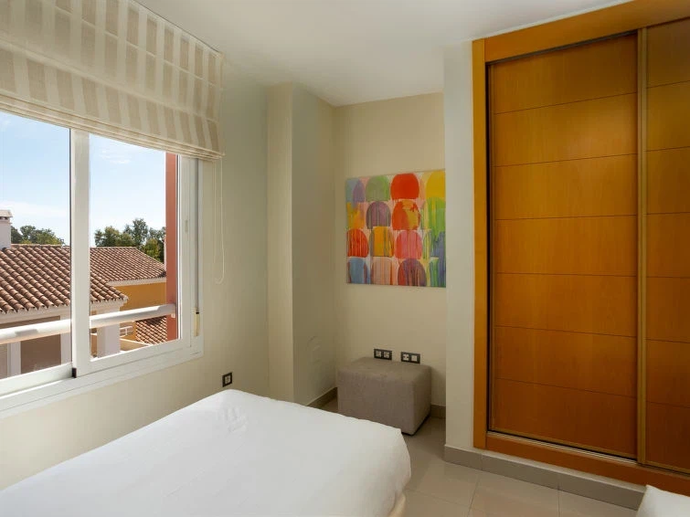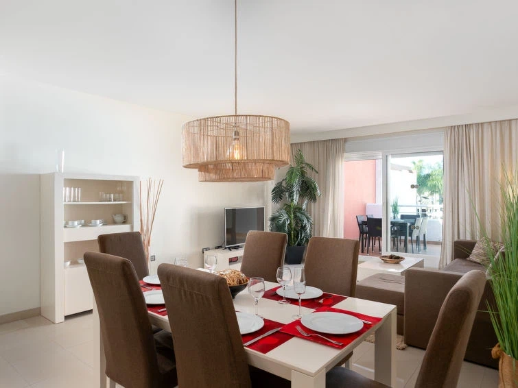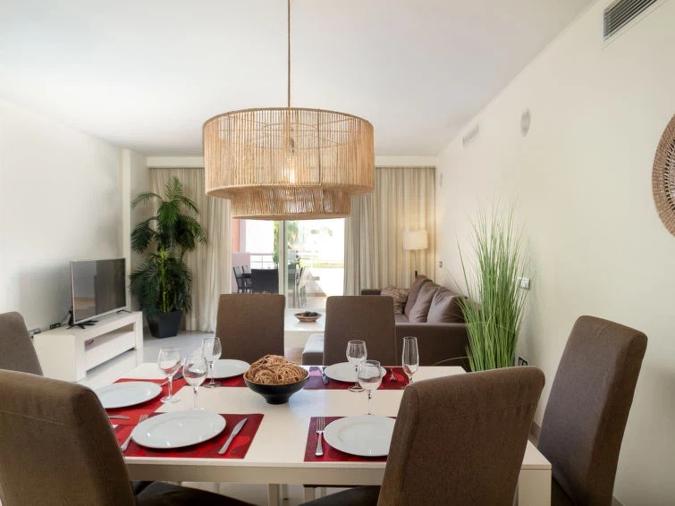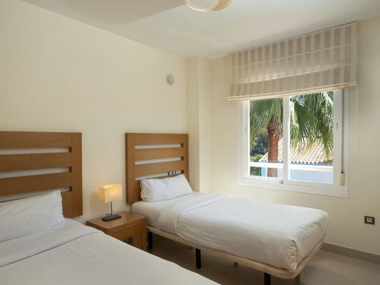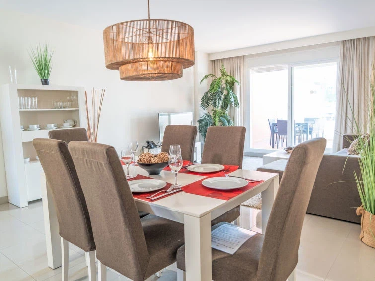 "Cortijo seastar", apartamento de 3 estancias 106 m2, orientación sur. Luminoso, con mobiliario muy confortable y bonito: salón-comedor con TV digital, aire acondicionado y bomba de calor, caliente. Salida a la terraza. 1 dorm. con 1 cama de matrimonio (180 cm, 200 cm de longitud), baño/WC y doble lavabo (privado) aire acondicionado y persianas eléctricas. Salida a la terraza. 1 dorm. con 2 camas (105 cm, 200 cm de longitud), aire acondicionado y bomba de calor, caliente. Cocina (horno, lavavajillas, 4 placas de vitrocerámica, tostadora, hervidor de agua eléctrico, microondas, congelador, cafetera eléctrica). Baño/WC. Terraza. Muebles de terraza. Vista a la piscina y al jardín. El alojamiento dispone de: lavadora, plancha, trona, cuna, secador de pelo. Internet (Wifi, gratis). Garaje. VUT/MA/92420