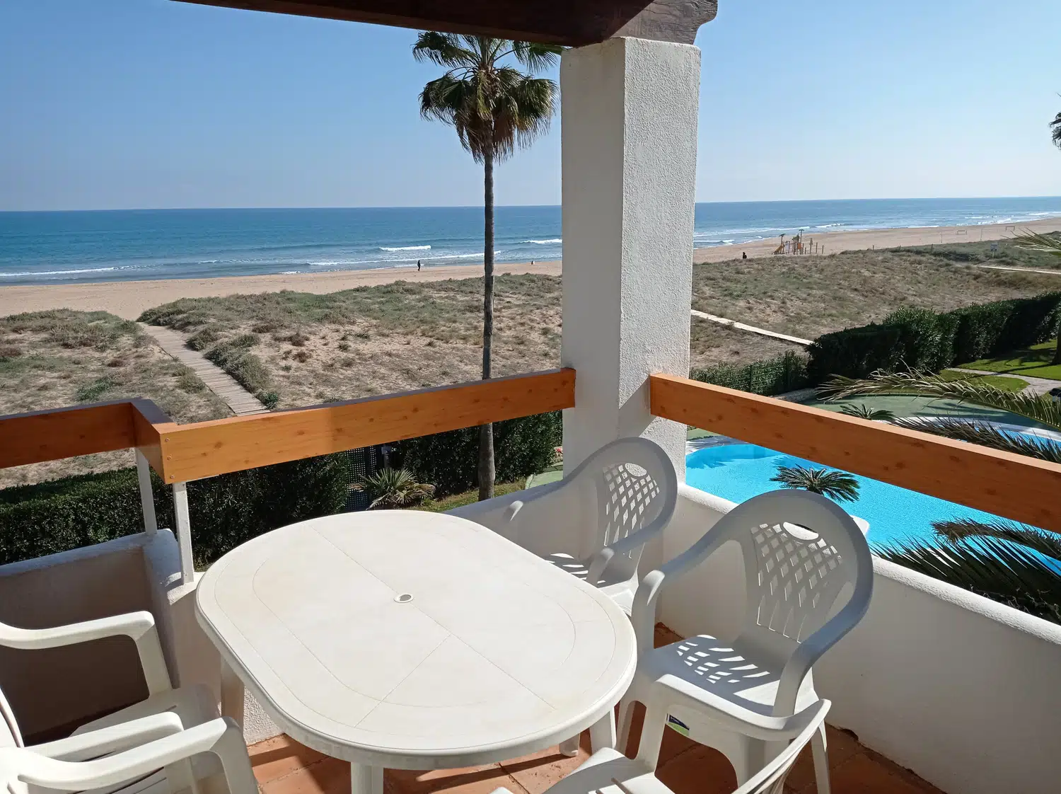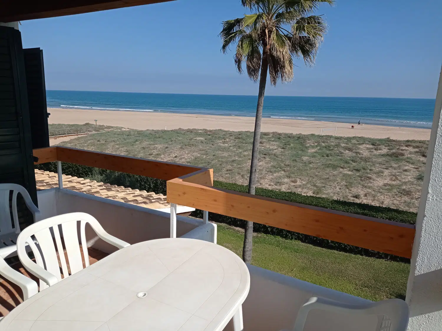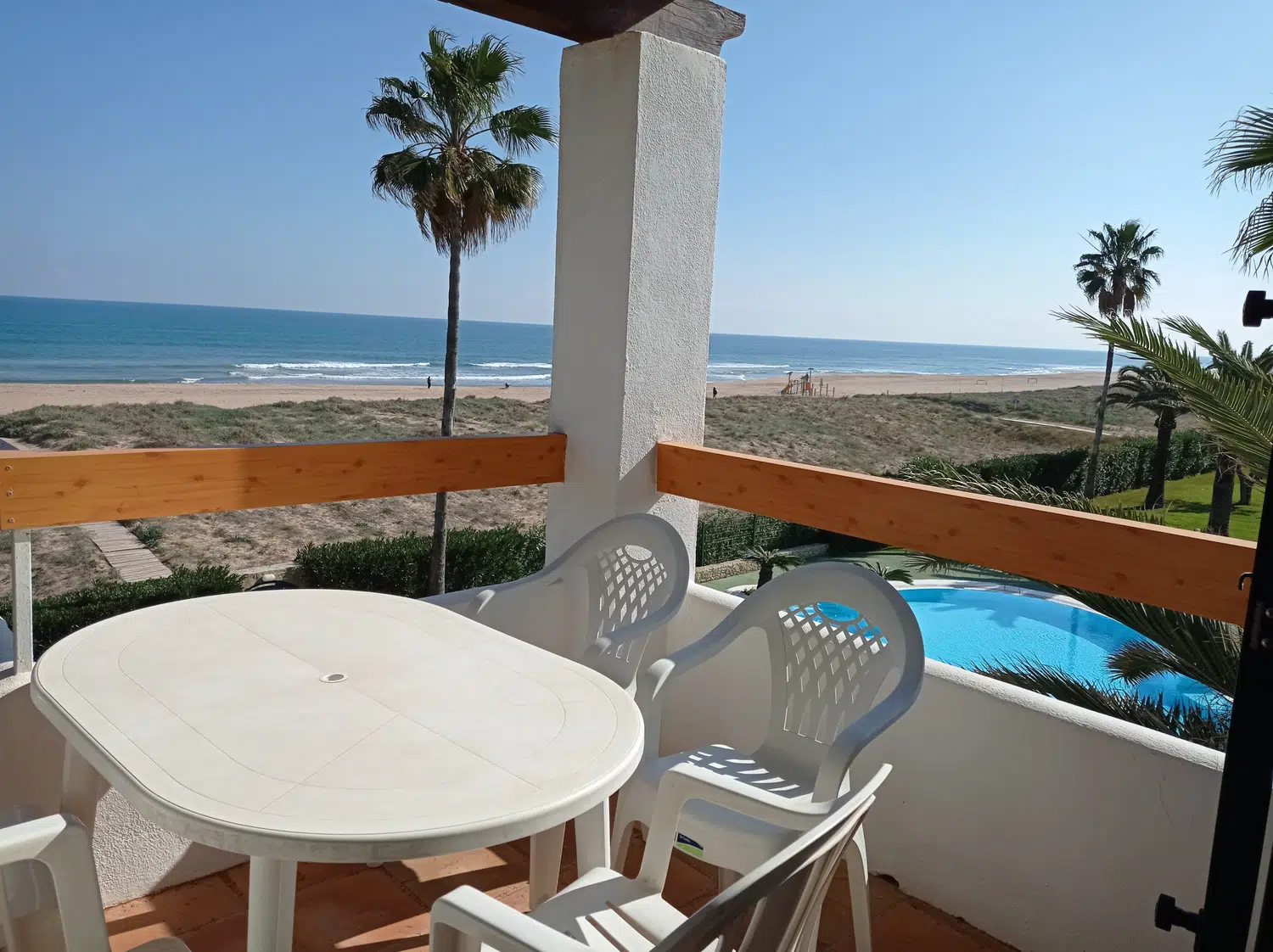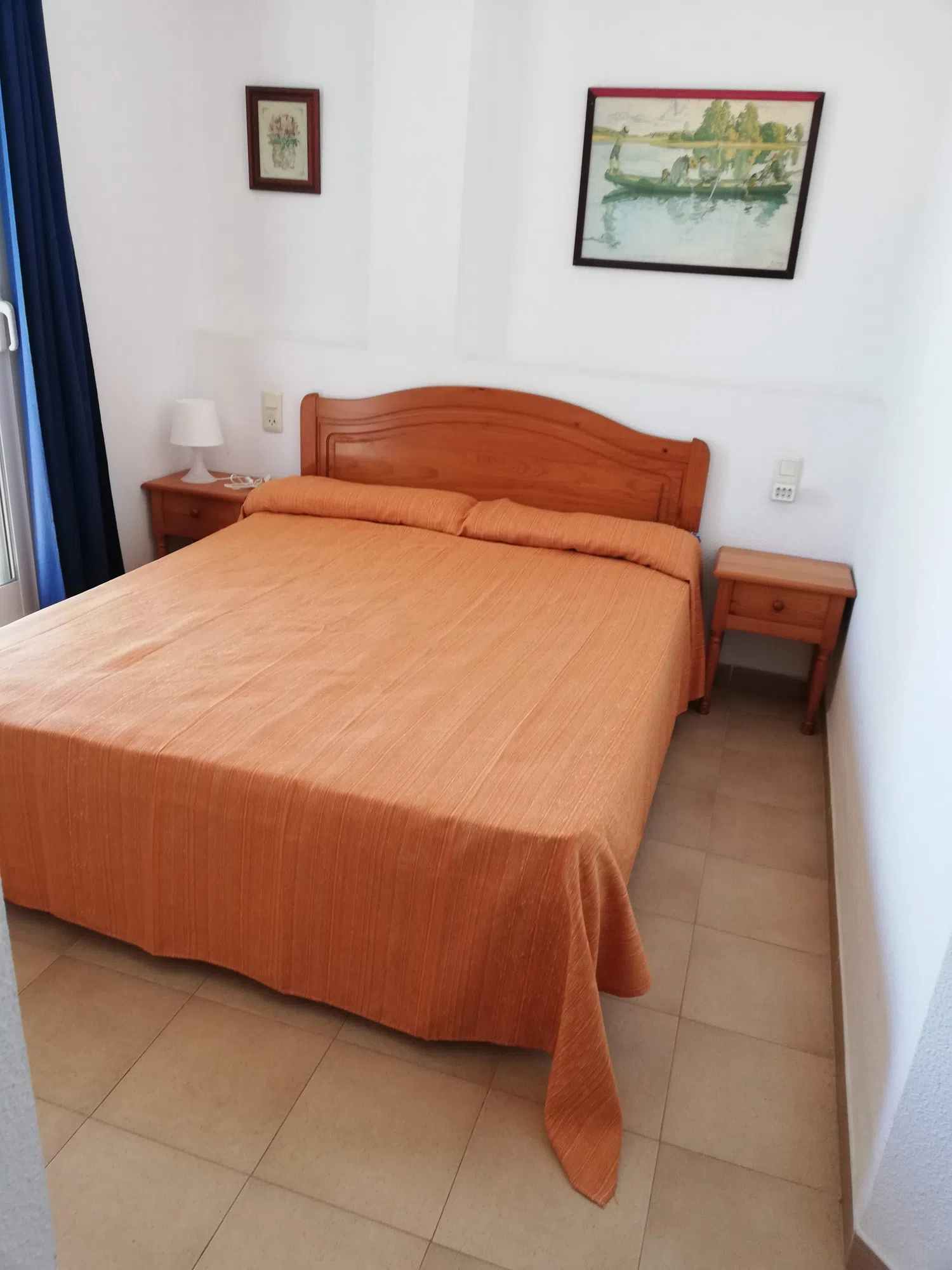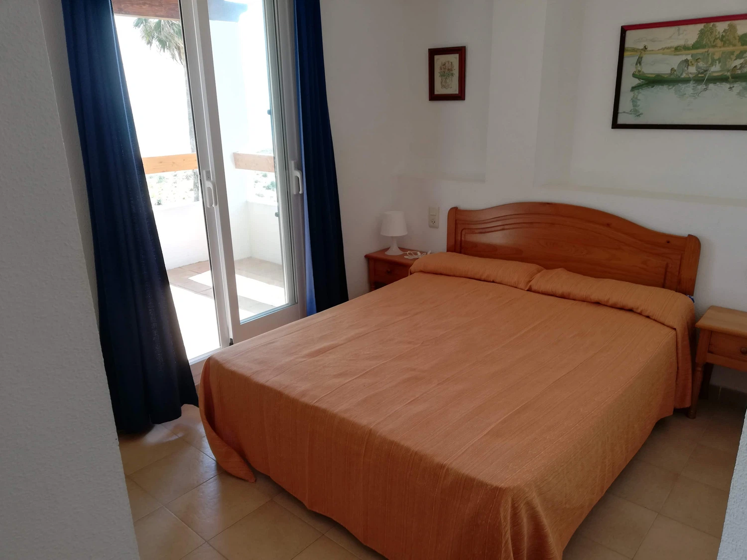 Apartamento disponible en 2ª planta con terraza de orientación Este frontal con fabulosas vistas al mar y al interior del residencial. Tiene una cocina con barra Americana equipada con todo lo necesario para cocinar y poner mesa, una galería-lavadero, un salón comedor, dos baños y dos dormitorios dobles. Incluye servicio WIFI. Capacidad 4/5 personas.