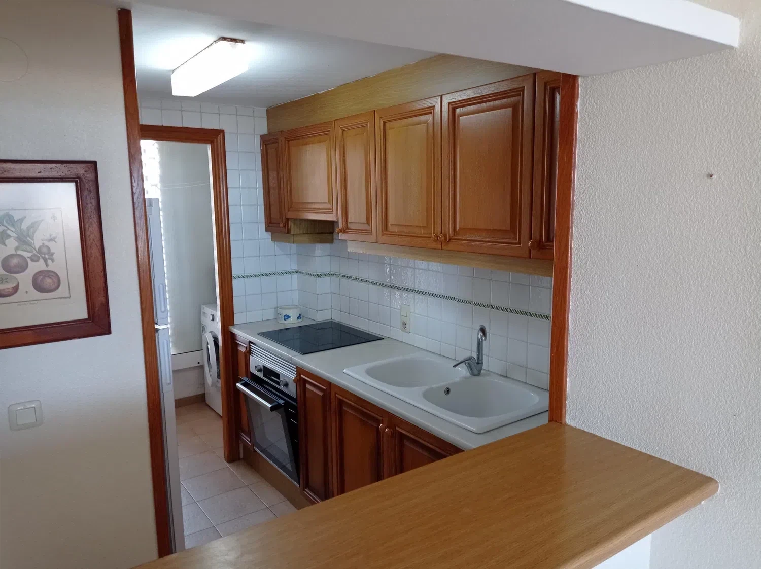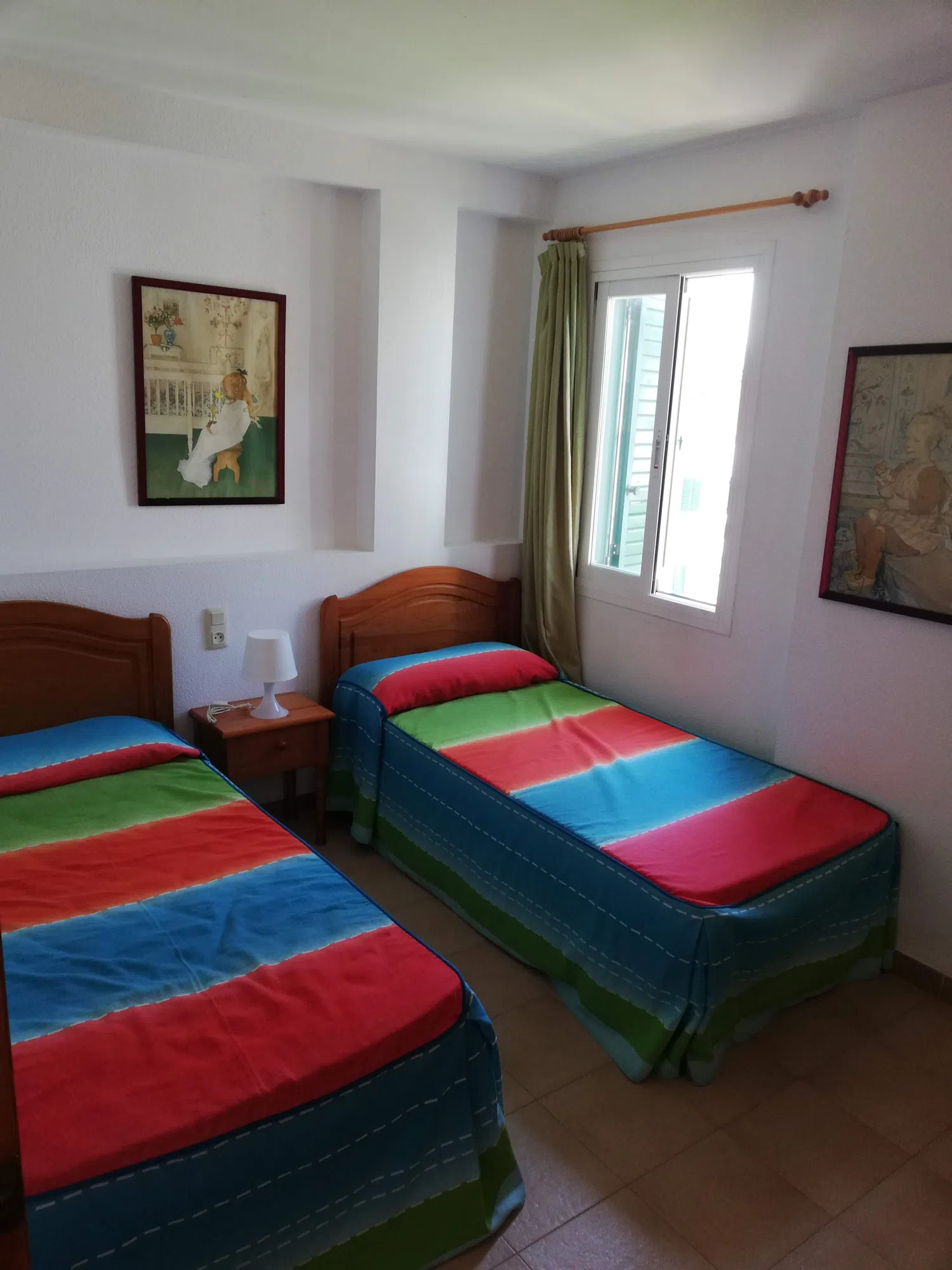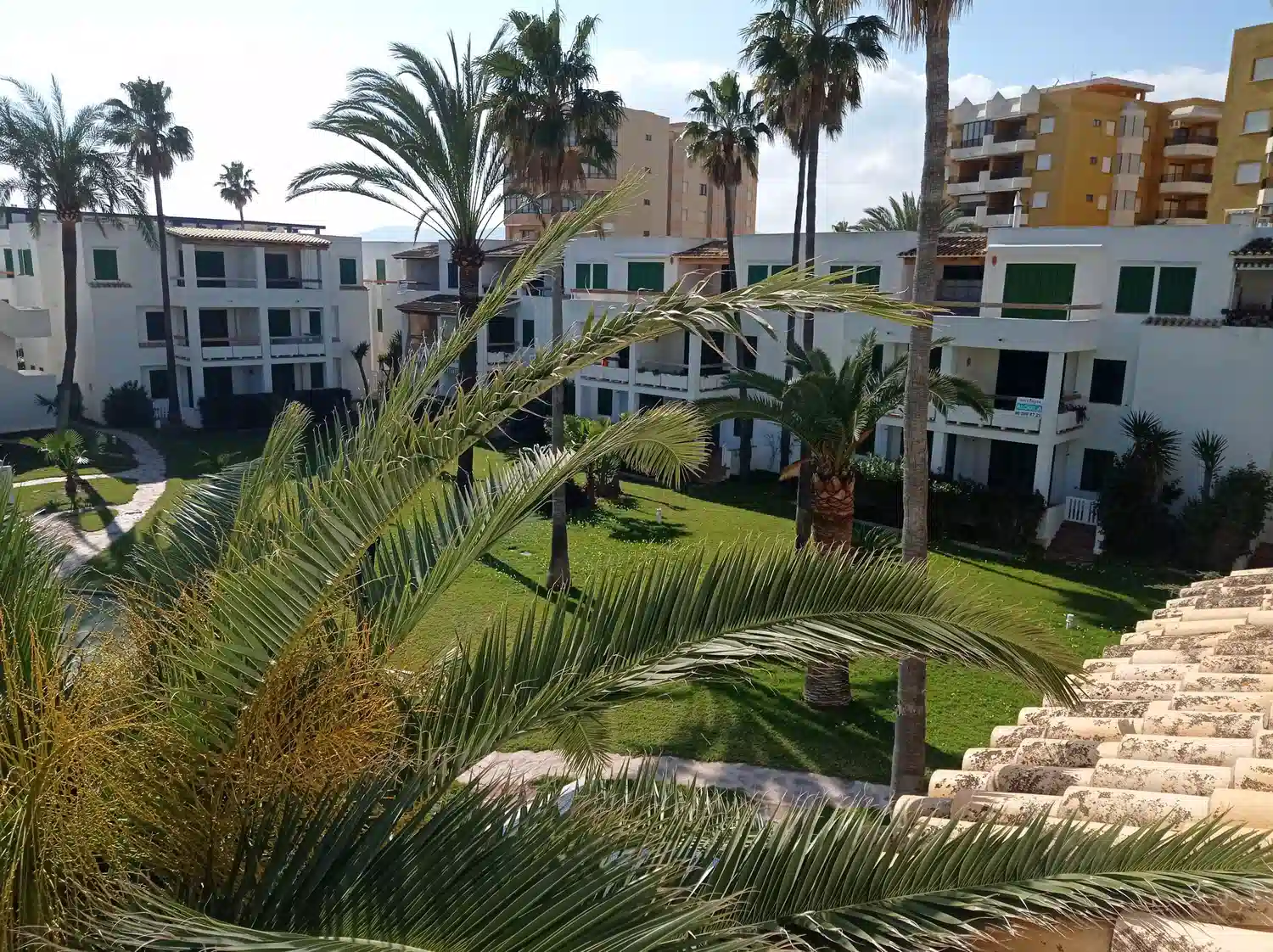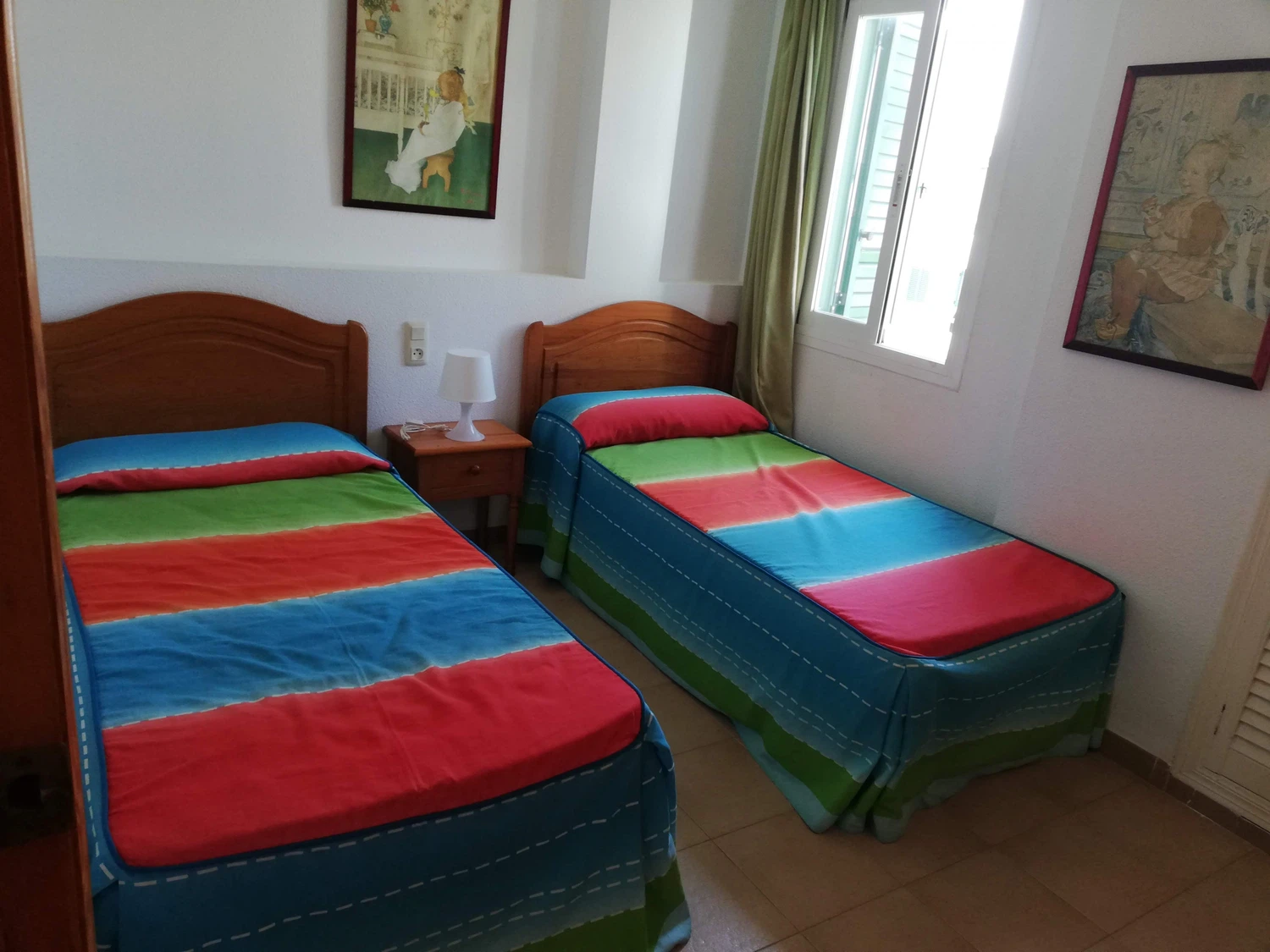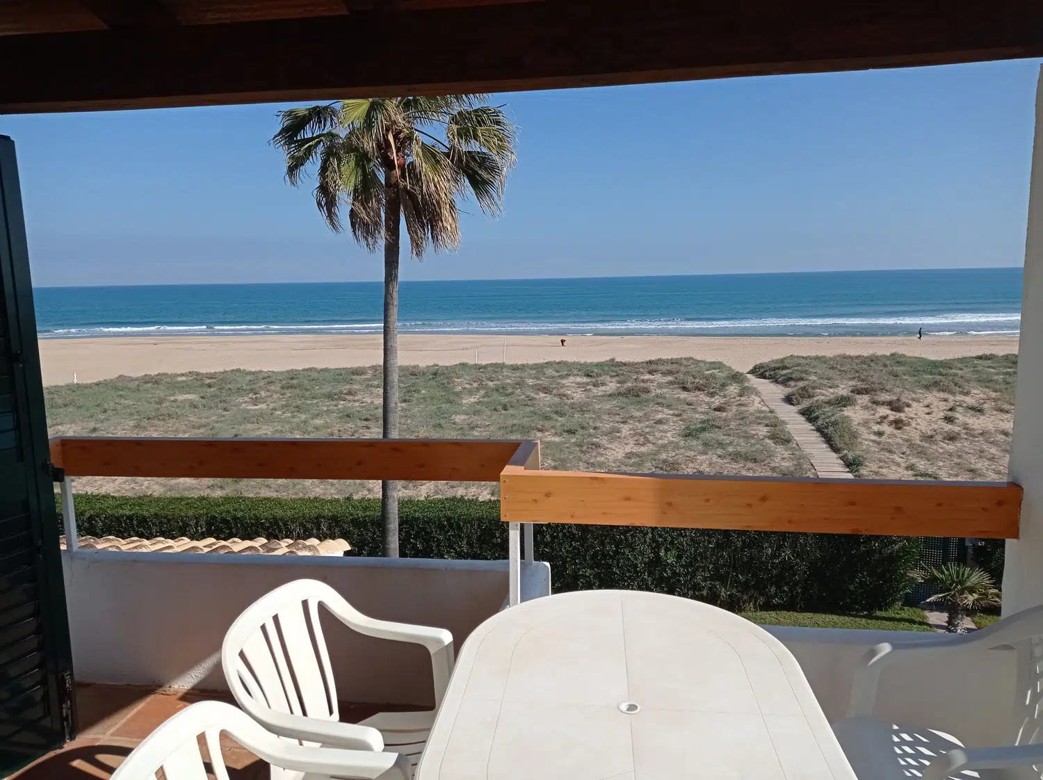 Apartamento disponible en 2ª planta con terraza de orientación Este frontal con fabulosas vistas al mar y al interior del residencial. Tiene una cocina con barra Americana equipada con todo lo necesario para cocinar y poner mesa, una galería-lavadero, un salón comedor, dos baños y dos dormitorios dobles. Incluye servicio WIFI. Capacidad 4/5 personas.