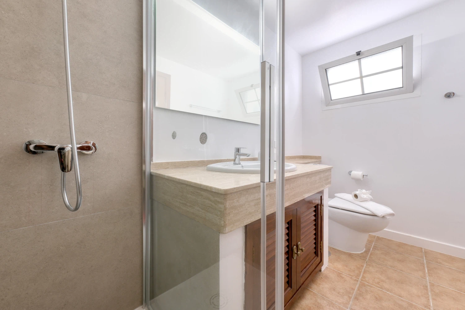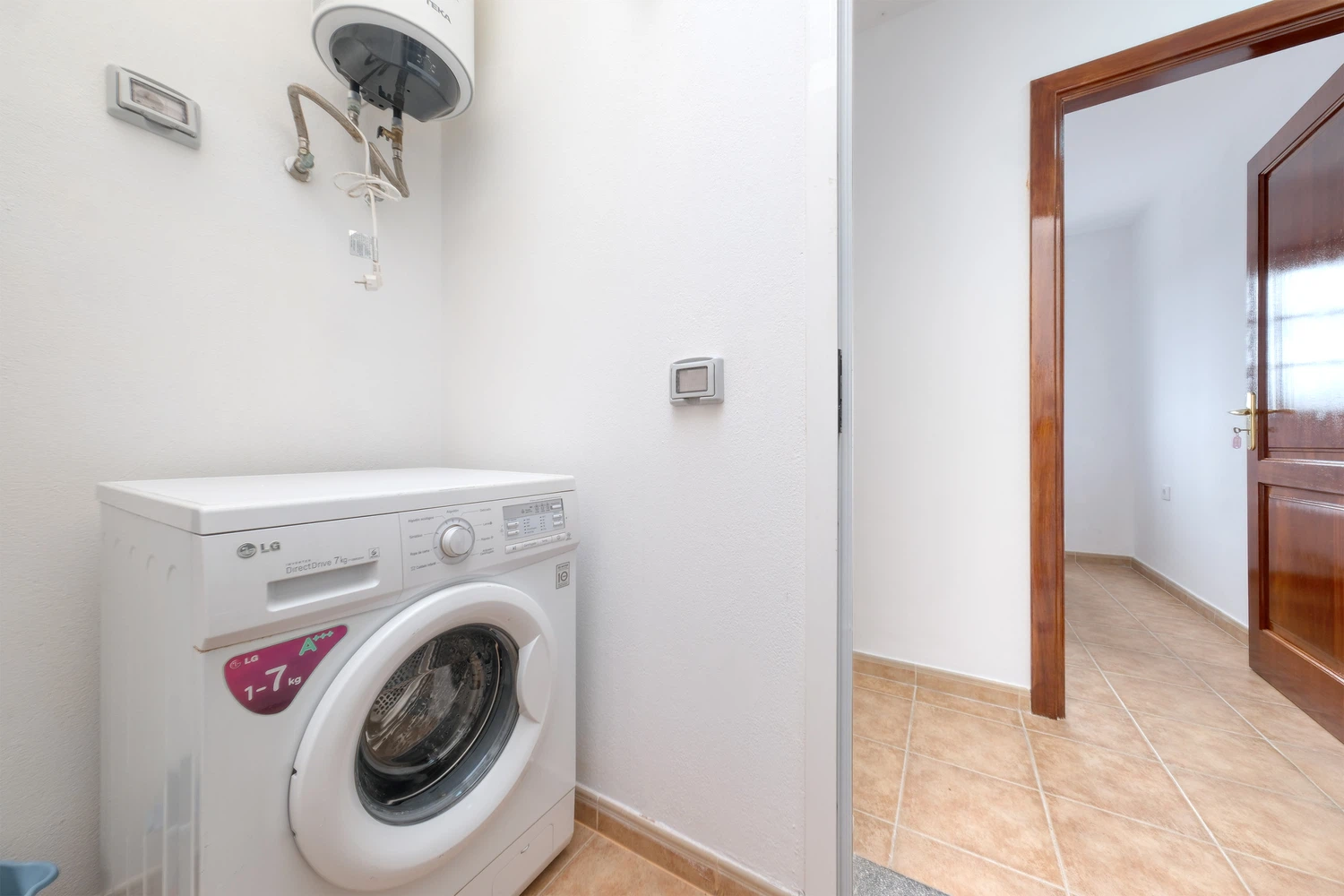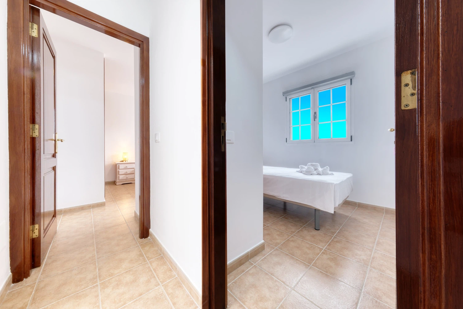 La distribución incluye 2 dormitorios luminosos: uno con una cama individual y otro con dos camas individuales que, bajo petición, pueden convertirse en una cama de matrimonio. Ambos cuentan con armarios empotrados. Además, la vivienda dispone de un baño con ducha y lavadora para mayor comodidad.