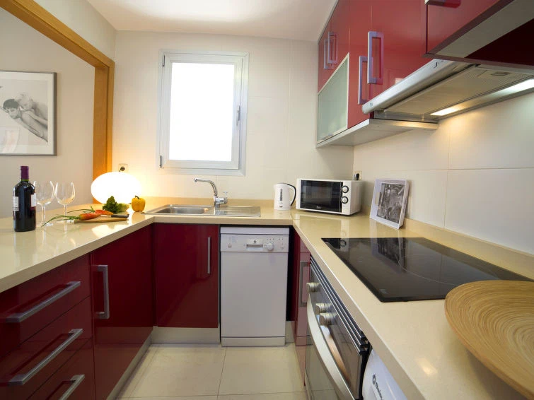 "Entremares", apartamento de 2 estancias 73 m2 en el 3° piso. Espacioso y luminoso, con mobiliario bonito y moderno: salón-comedor con 1 sofá-cama, TV digital, aire acondicionado y bomba de calor, caliente. Salida a la terraza. 1 dorm. con 1 cama de matrimonio, aire acondicionado y bomba de calor, caliente. Cocina abierta (horno, lavavajillas, 3 placas de vitrocerámica, microondas). Ducha/bidet/WC. Terraza 20 m2. Muebles de terraza. Vista al mar, a la piscina y al pueblo. El alojamiento dispone de: lavadora. Internet (Wifi, gratis). Plaza de aparcamiento n. 11 (cubierto). AT-468365-A