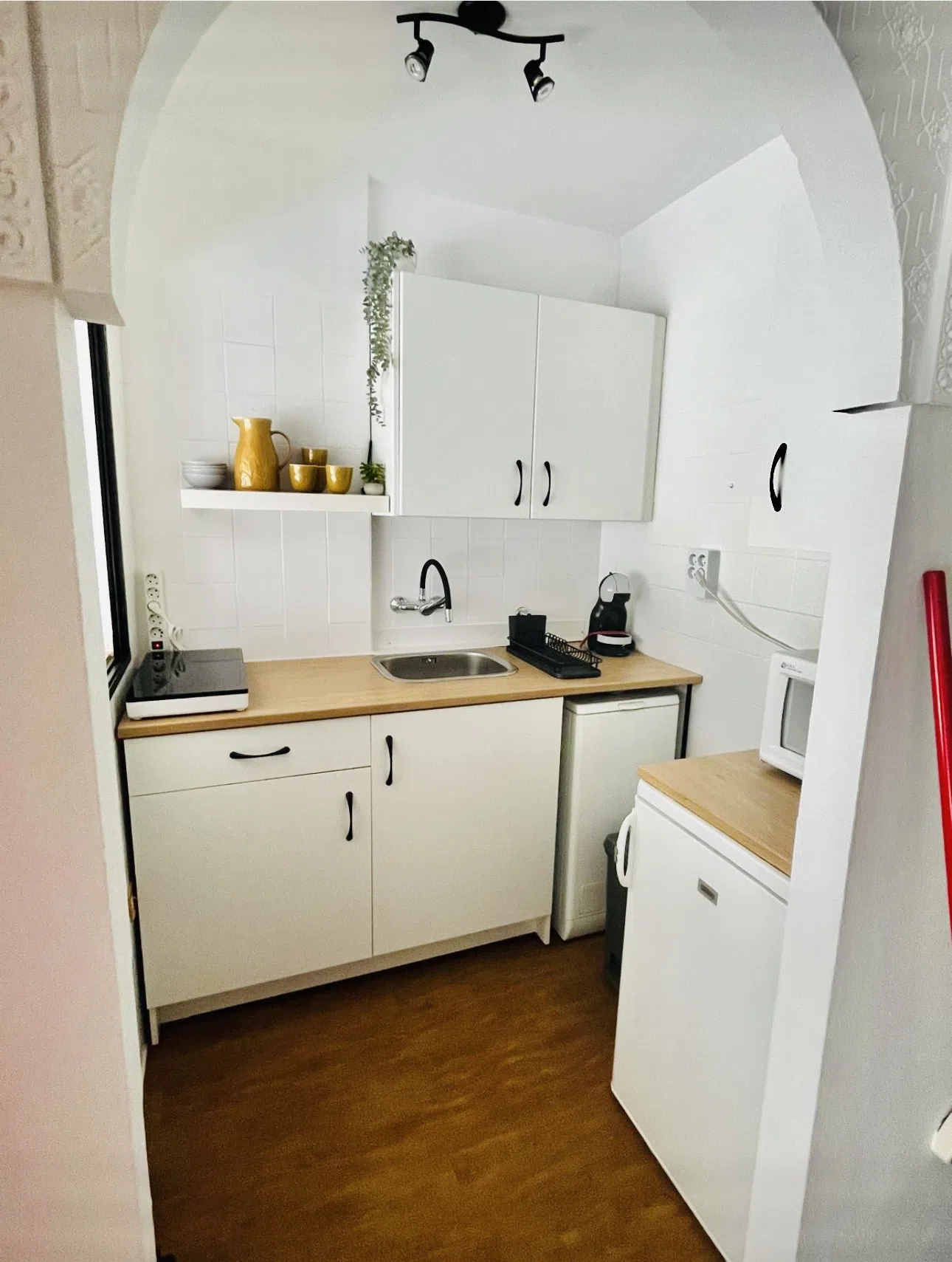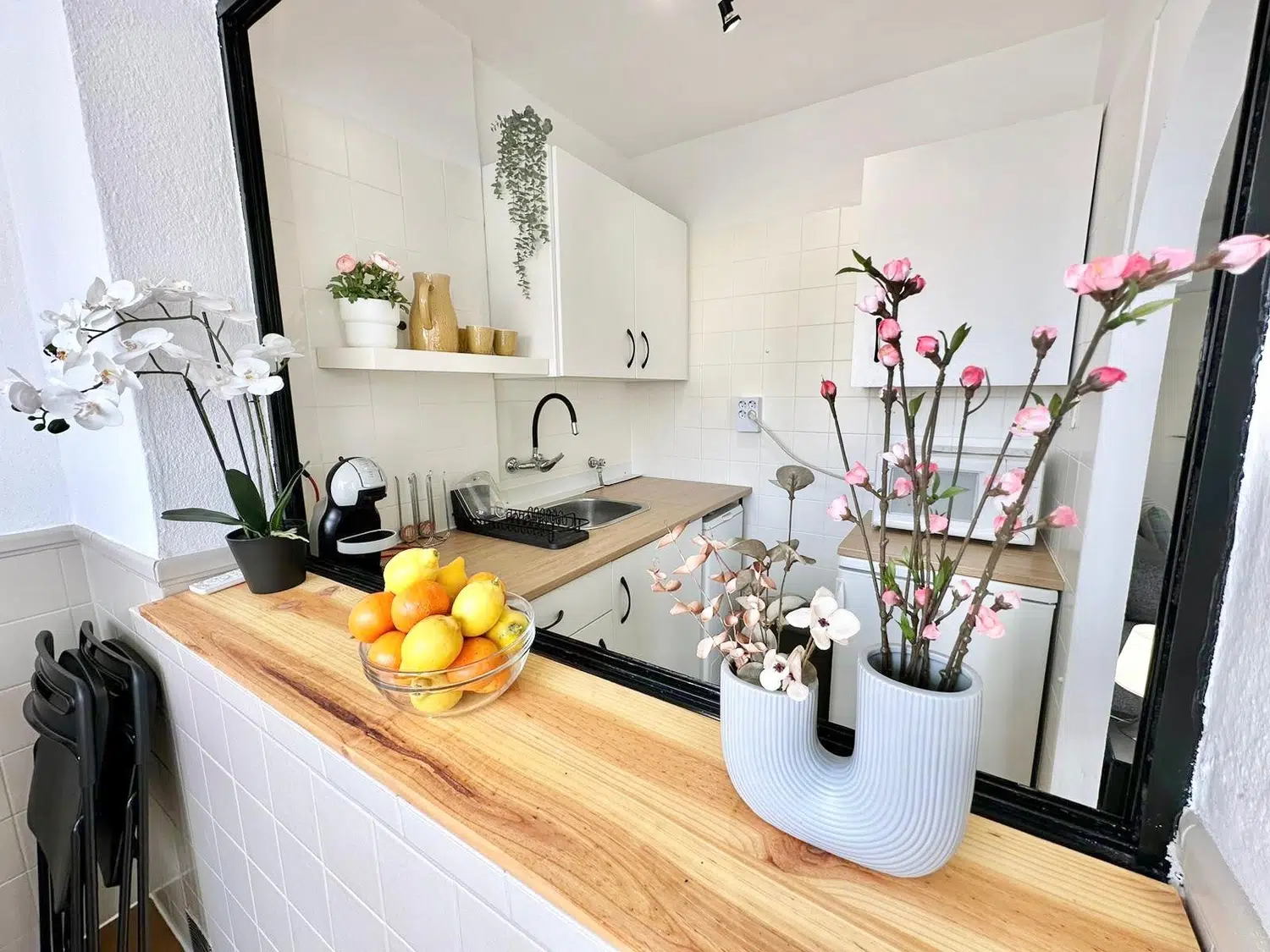 La cocina americana, de vitrocerámica, está equipada con nevera, microondas, vajilla/cubertería, utensilios/cocina, cafetera, tostadora, hervidor de agua y exprimidor.