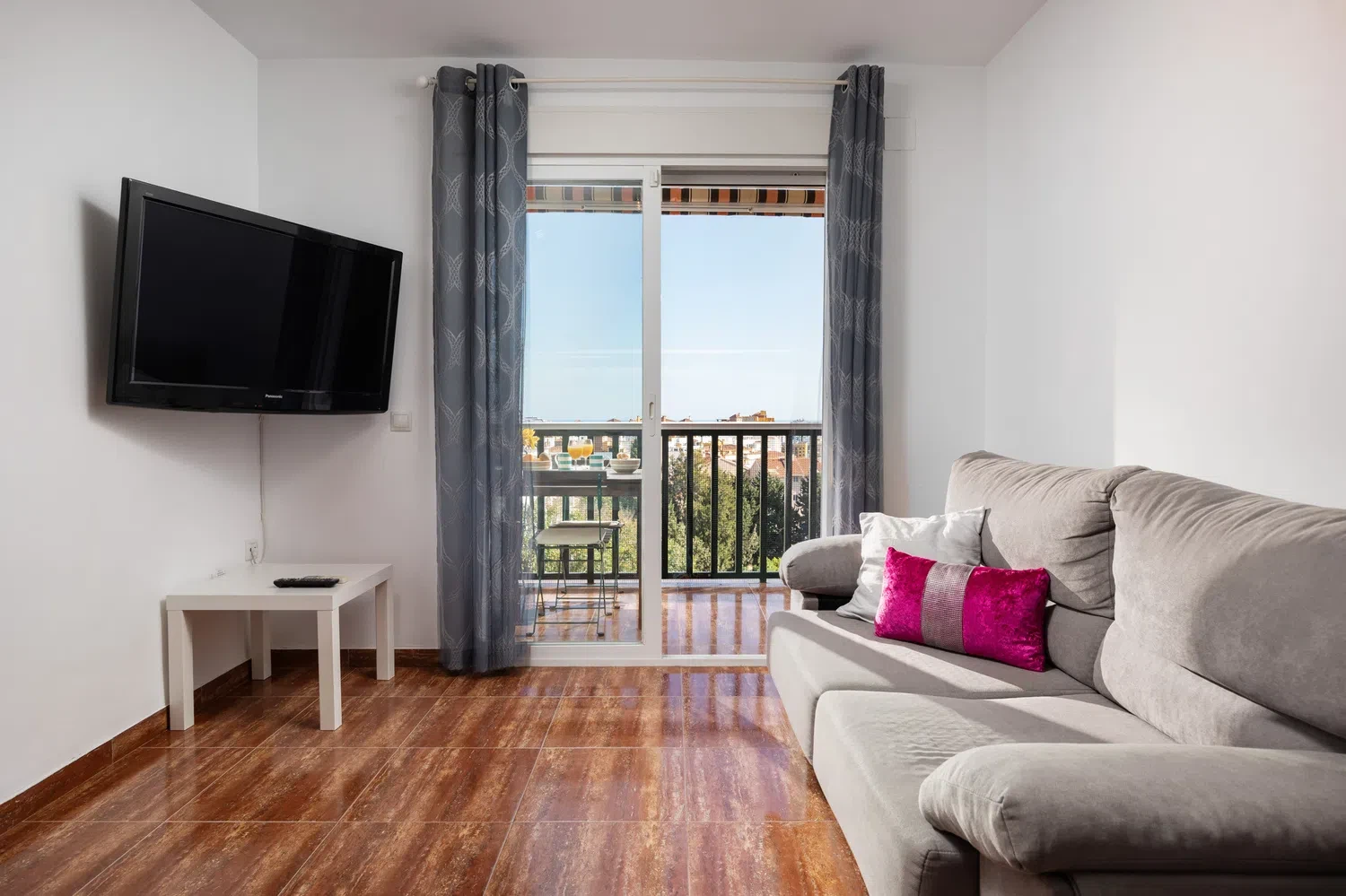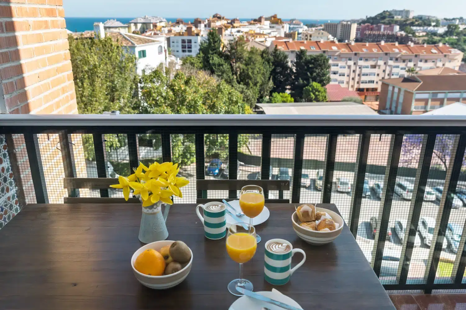 Un detalle práctico es el parking privado al aire libre ubicado en el mismo edificio, perfecto para familias que viajan en coche. La terraza de 5 metros cuadrados ofrece un espacio exterior para disfrutar de momentos de relax y contemplar las vistas al mar.