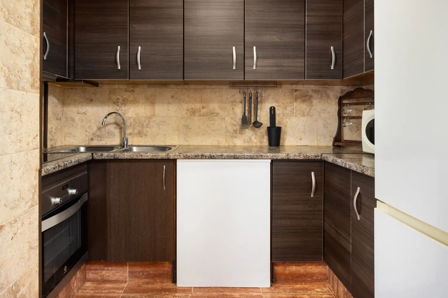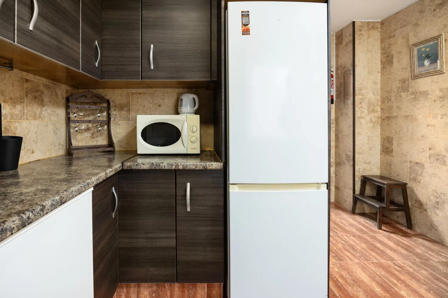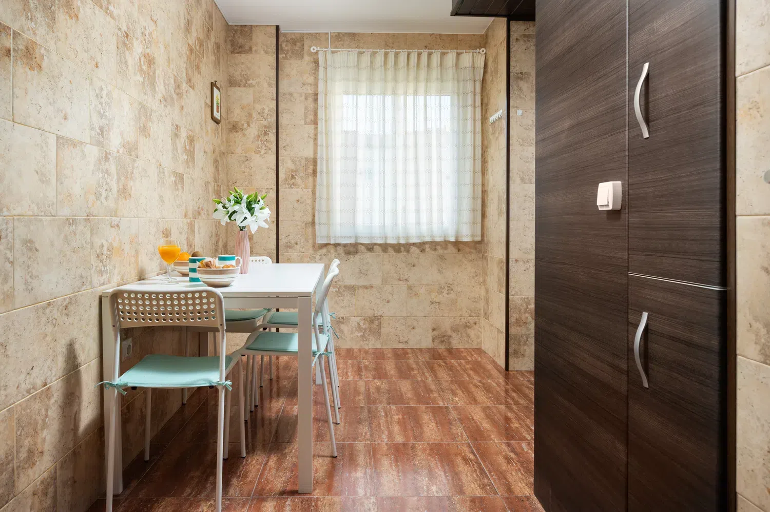La cocina, completamente independiente, está totalmente equipada con electrodomésticos modernos como nevera, congelador, lavadora, horno, microondas, cafetera, tostadora, hervidor y exprimidor. Además, dispone de todos los utensilios de cocina necesarios para preparar deliciosas comidas familiares.