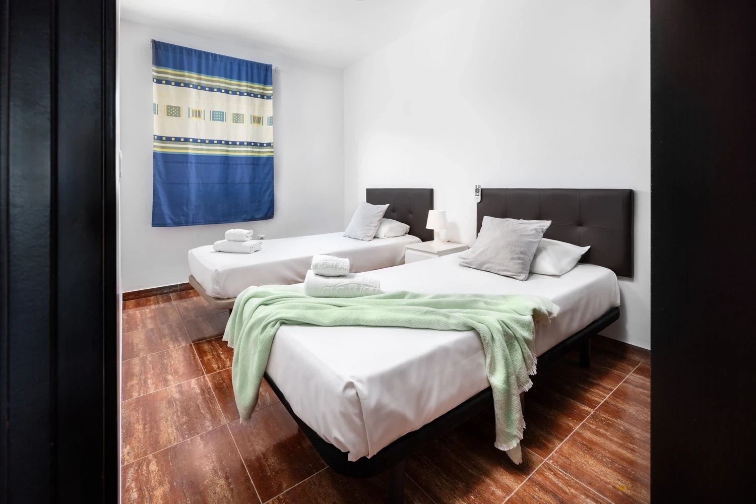 El apartamento cuenta con 3 dormitorios bien distribuidos: dos habitaciones con camas dobles y dos individuales, garantizando un descanso reparador para todos los miembros de la familia.