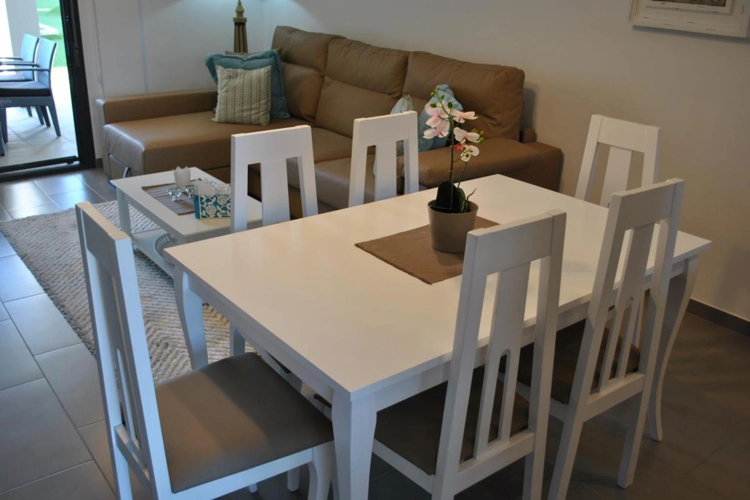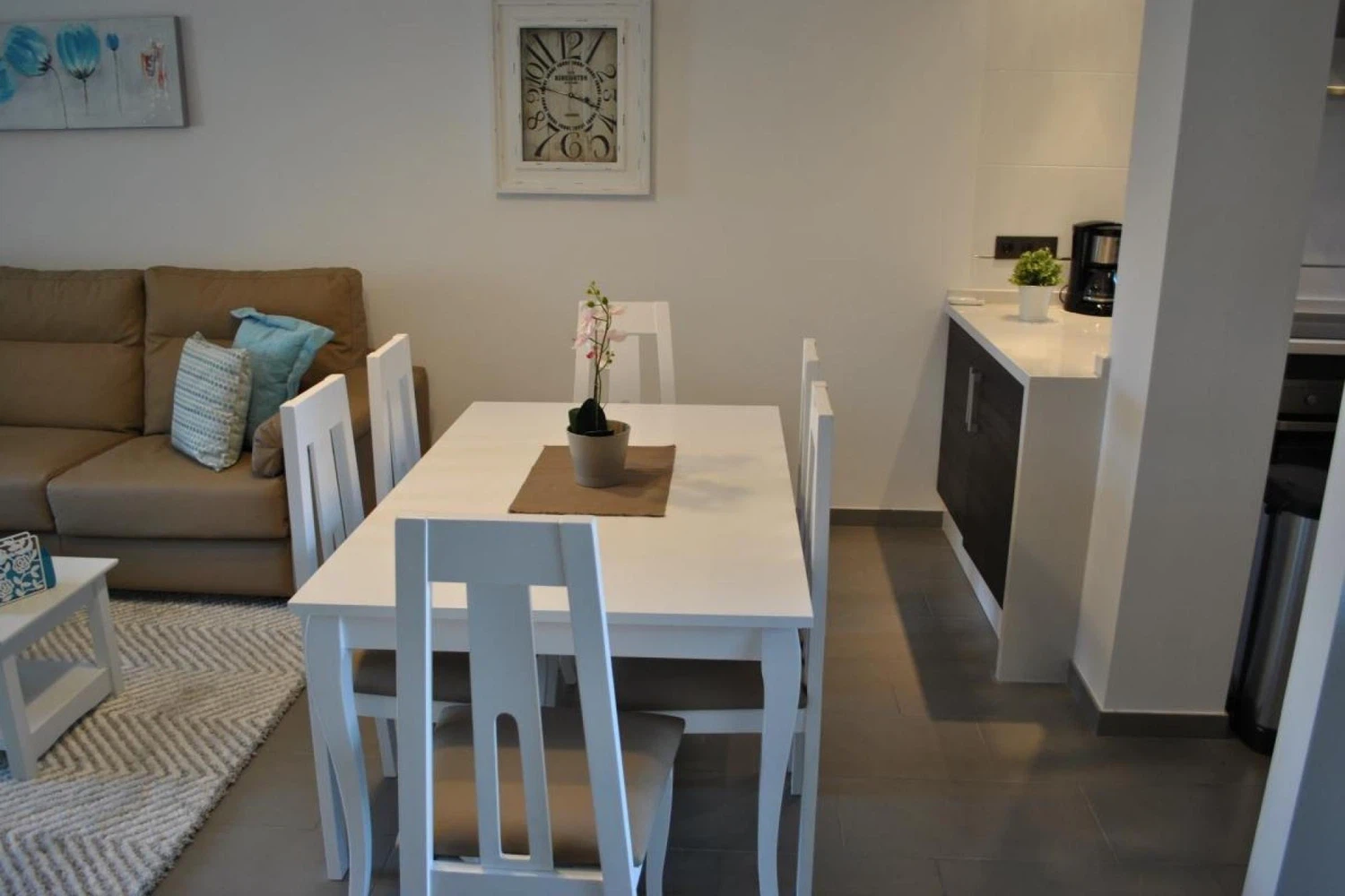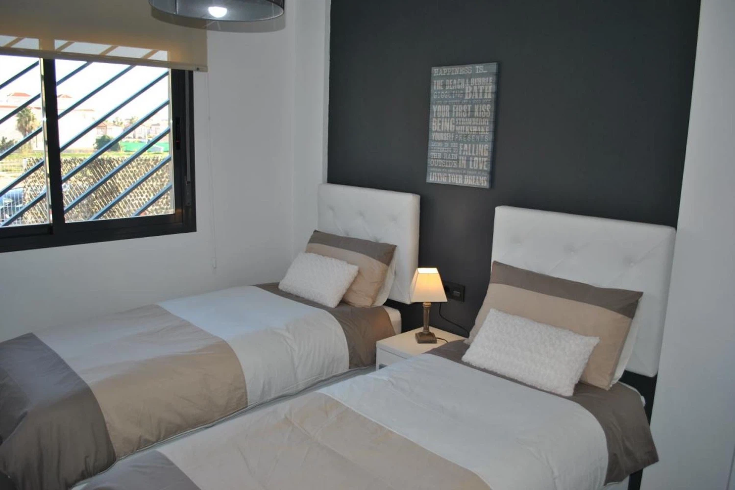 Descubre este encantador apartamento de 2 dormitorios ubicado en La Zenia, perfecto para parejas y familias que buscan unas vacaciones relajantes. Con 75 metros cuadrados de espacio interior y una terraza de 20 metros cuadrados, este alojamiento ofrece comodidad y amplitud. El apartamento cuenta con dos dormitorios: uno con cama doble y dos individuales, ideal para familias pequeñas o grupos de amigos. Dispone de dos baños, uno con ducha y otro con bañera, lo que garantiza la comodidad de todos los huéspedes. La cocina americana está completamente equipada con electrodomésticos de última generación, incluyendo nevera, congelador, lavadora, lavavajillas, horno, microondas y máquina de café. Además, encontrarás todos los utensilios de cocina necesarios para preparar deliciosas comidas. El alojamiento ofrece aire acondicionado en todas las habitaciones y calefacción por bomba de calor para garantizar tu confort en cualquier época del año. Conexión WiFi gratuita, televisión y otros detalles como plancha y percheros completan el equipamiento. La ubicación es inmejorable. Está situado a solo 250 metros de supermercados como Mercadona, Lidl y Alcampo, y cerca del centro comercial La Zenia Boulevard con restaurantes y cafeterías. La playa de arena está a 900 metros y el campo de golf de Villamartin a 3 kilómetros. Entre las comodidades exteriores, destaca la terraza con vistas a la piscina y al jardín, muebles de jardín y un jacuzzi exterior. El complejo residencial es ideal para niños y permite estancias largas. Nota importante: No se permiten mascotas ni fumar en el interior del apartamento.
