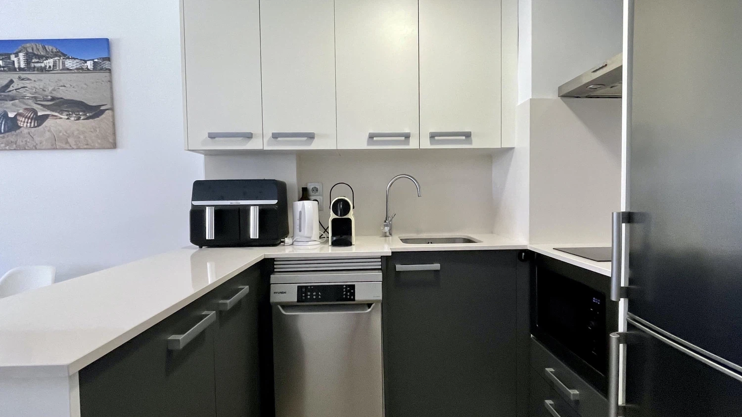La cocina americana está completamente equipada con electrodomésticos modernos como lavavajillas, microondas, tostadora, máquina de café y nevera-congelador. Además, dispone de todos los utensilios de cocina necesarios para preparar deliciosas comidas familiares.
