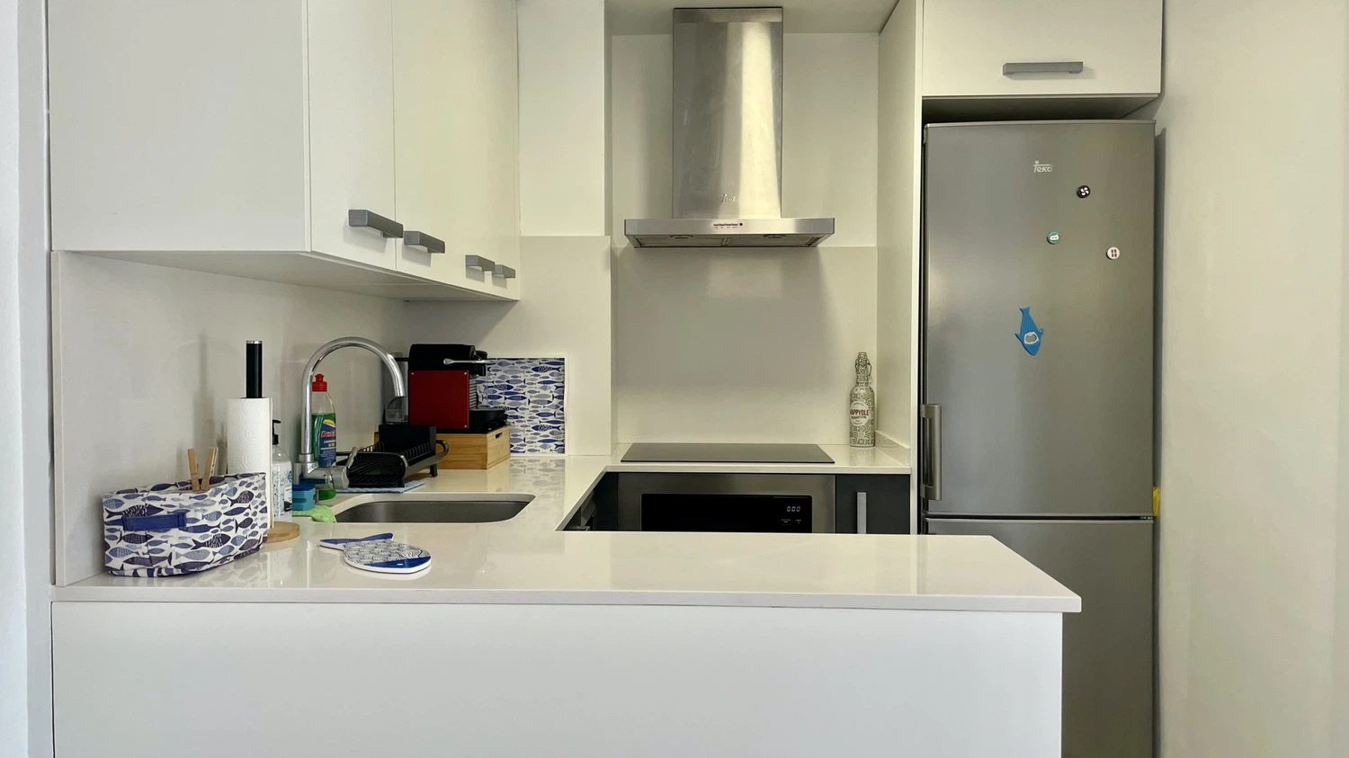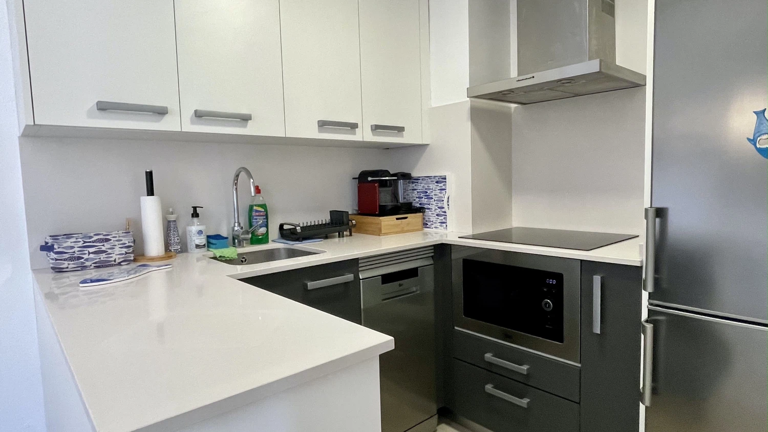 La cocina está completamente equipada con electrodomésticos modernos como nevera, congelador, lavavajillas, microondas, tostadora y máquina de café. Además, dispone de todos los utensilios de cocina necesarios para preparar comidas deliciosas durante su estancia.