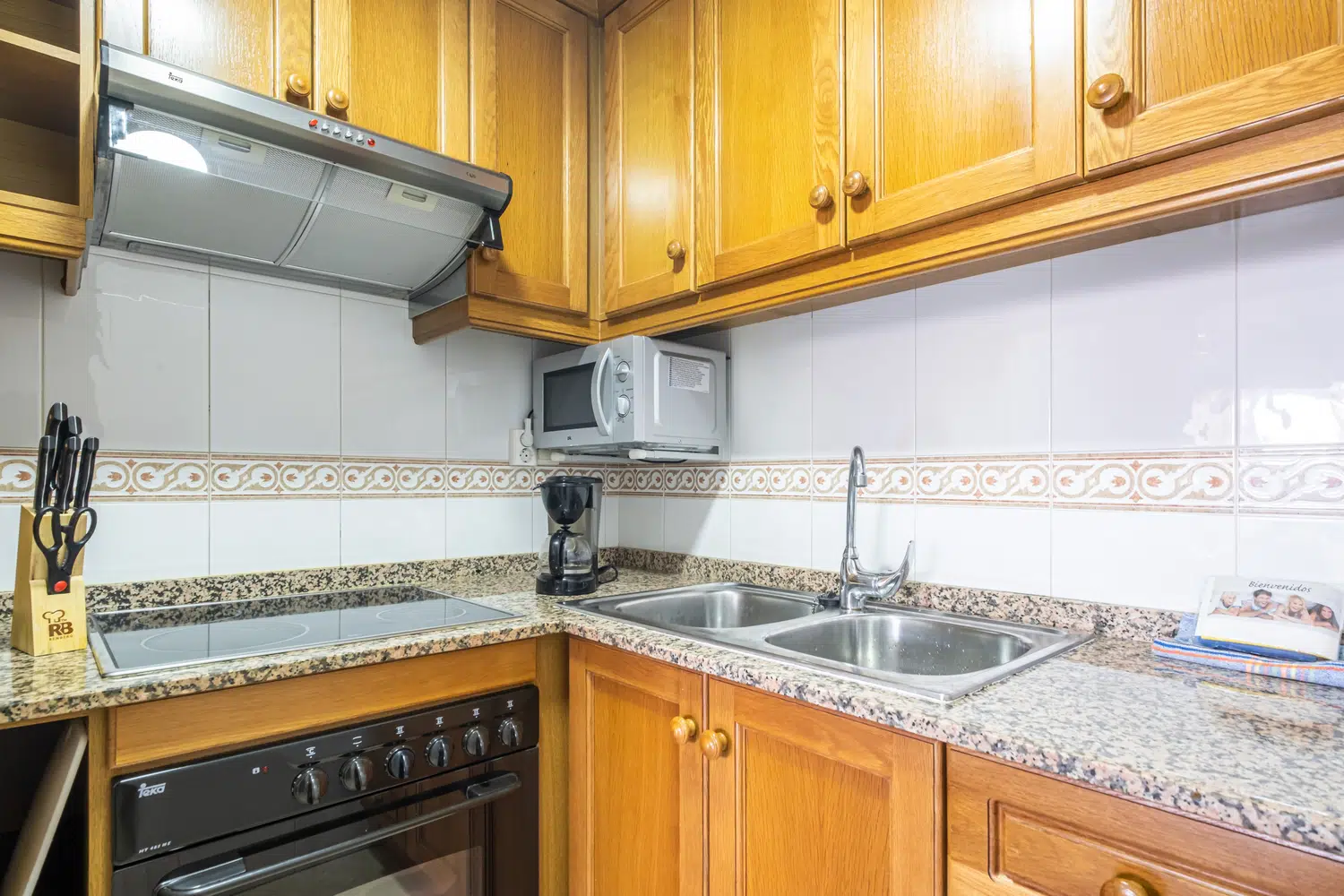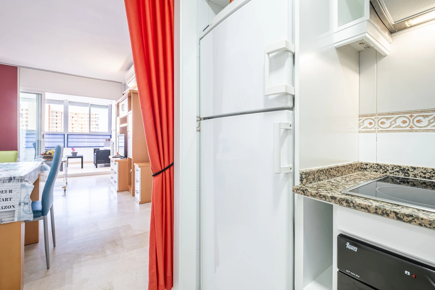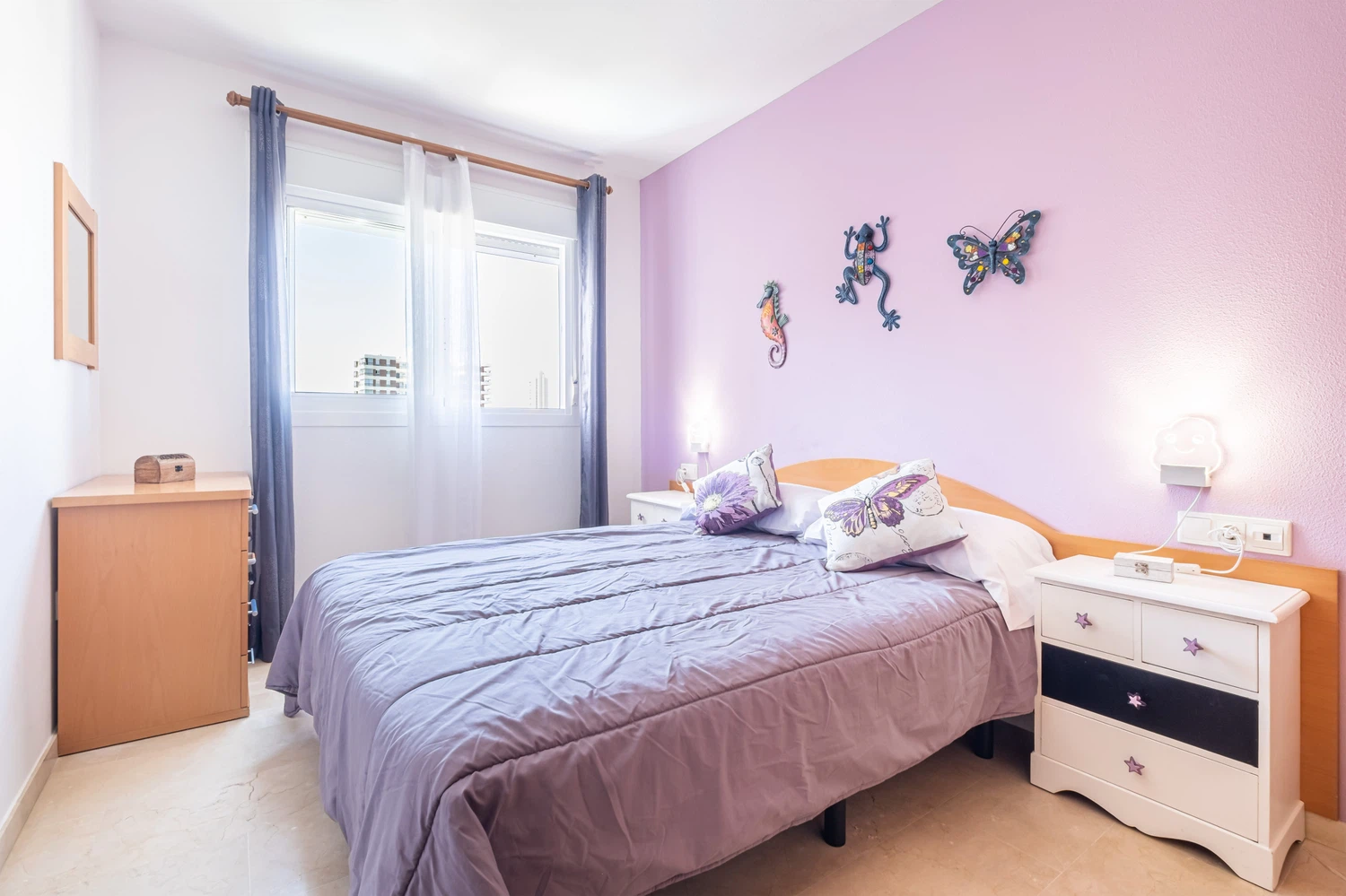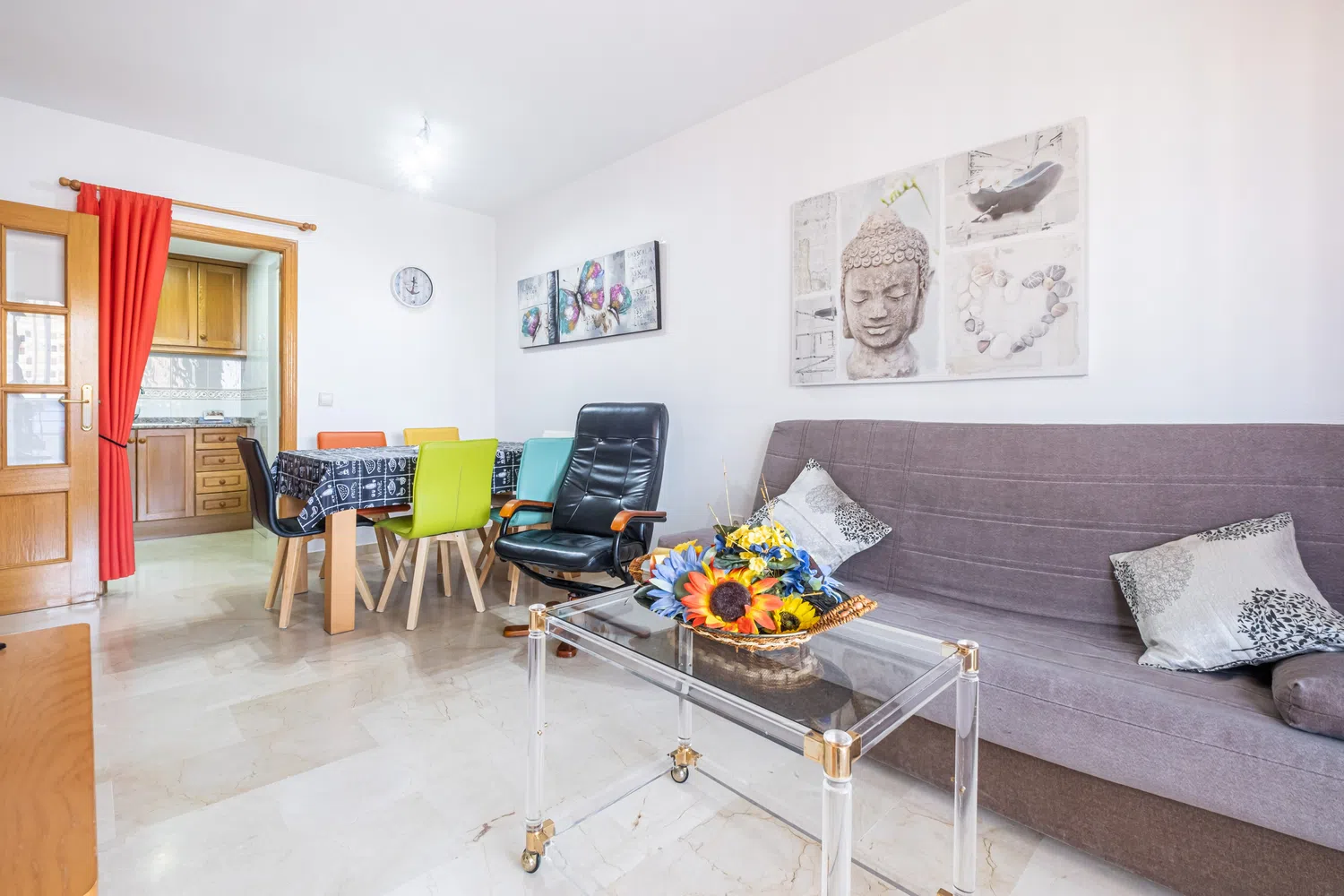 Apartamento en Levante, Benidorm, totalmente equipado de menaje, electrodomésticos y mobiliario para unas fantásticas vacaciones. Ubicado en la planta 15, cuenta con 1 dormitorio doble con cama de matrimonio y armario empotrado, cuarto de baño completo con bañera y secador de pelo, cocina independiente totalmente equipada y con galería, salón comedor con sofá cama doble, T.V Smart TV, wifi de alta velocidad por fibra, terraza acristalada con cama abatible doble para convertirla por las noches en el segundo dormitorio y comedor exterior.