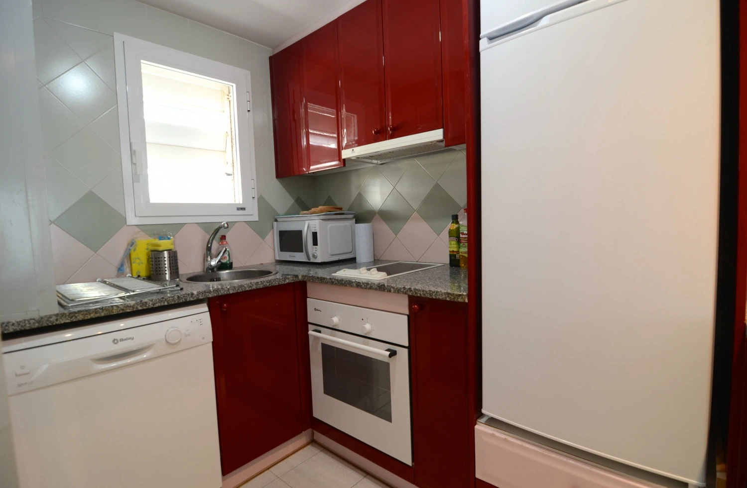 El alojamiento incluye una cocina americana totalmente equipada con nevera, microondas, horno, congelador, lavadora, lavavajillas, vajilla, cubertería, utensilios de cocina, cafetera, tostadora y exprimidor. Además, la propiedad cuenta con plancha y acceso a Internet, sujeto a disponibilidad por un costo adicional de 10€ al día.