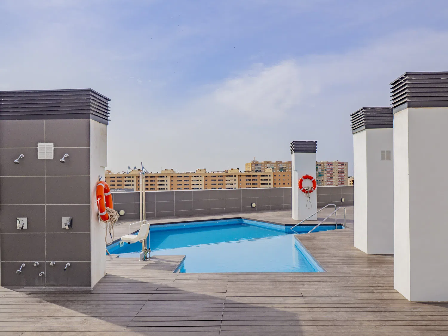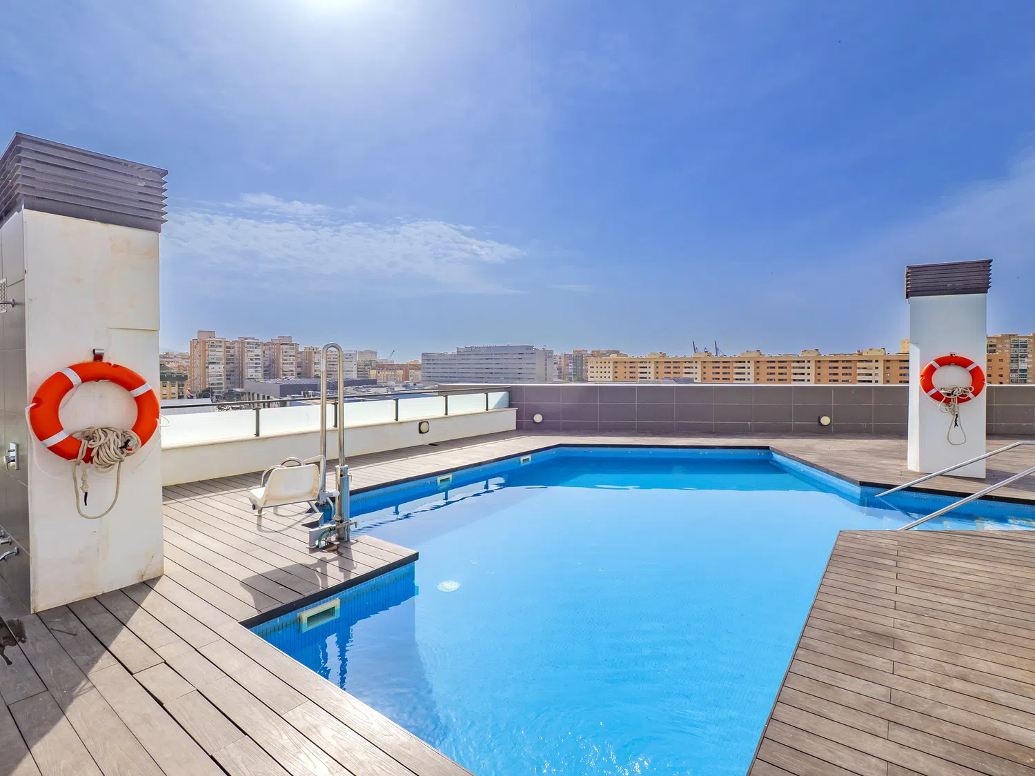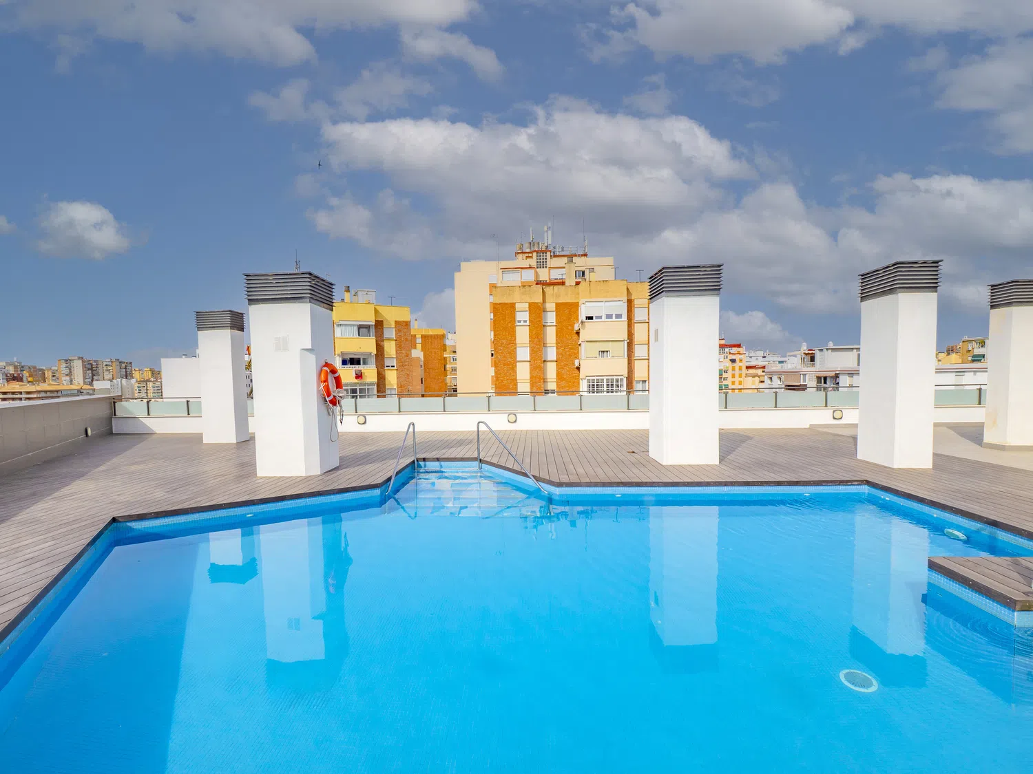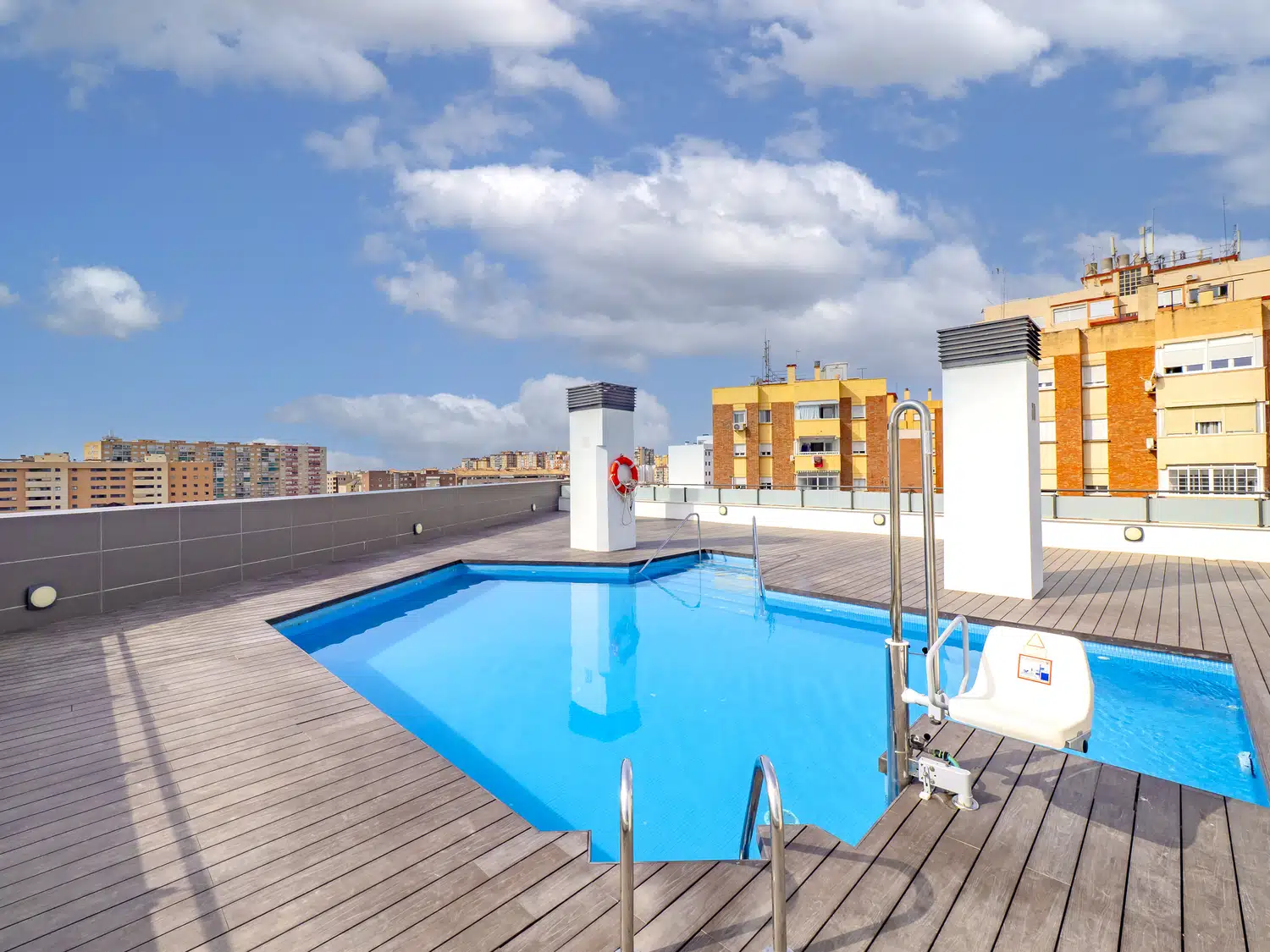 El edificio dispone de ascensor y una bonita piscina comunitaria en la última planta, perfecta para relajarte tras un día de exploración. También tienes la opción de aparcamiento en el mismo edificio por un coste adicional por noche (consultar con la agencia).