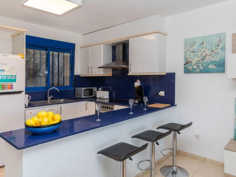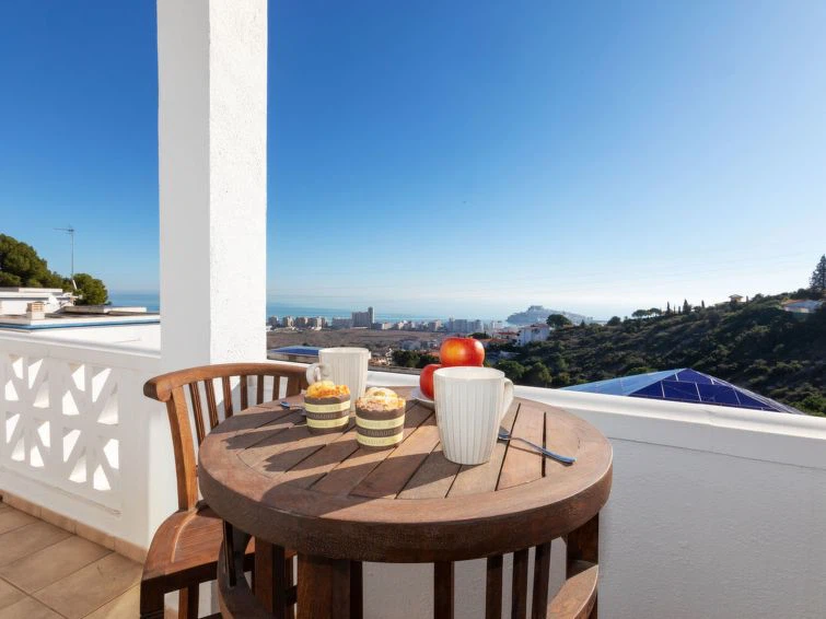 Atalayas Peñiscola a 2 km de Peñiscola centro: Casa semiadosada "Los balcones", moderna, confortable, adosada por un lado, reformada en 2016. 9 casas en el complejo. En la localidad, a 2 km del centro de Peñiscola, lugar soleado en una colina, a 2 km del mar, a 2 km de la playa. En el inmueble: aire acondicionado. Aparcamiento (para 2 coches), garaje individual. Supermercado 2 km, centro comercial 5 km, restaurante 1 km, café 2 km, parada autobús "Plaza de la Constitución" 1.8 km, estación de tren "Benicarló-Peñíscola" 9.5 km, playa de arena "Peñiscola Norte" 2 km. Campo de golf (18 hoyos) 35 km. Atracciones en los alrededores: Peñiscola 2 km, Delta del Ebro 40 km, Port Aventura 100 km, Museo de las Ciencias - Valencia 120 km. Lagos conocidos fácilmente accesibles: Pantano La Senia 25 km. Zona de senderismo Parque natural Sierra de Irta 5 km. A tener en cuenta: coche recomendable. Vivienda adecuada para 6 adultos + 1 niño. El propietario no acepta grupos de adolescentes/jóvenes. Vecindario muy sensible a ruidos. Se ruega respetar la tranquilidad y normas de buen comportamiento.