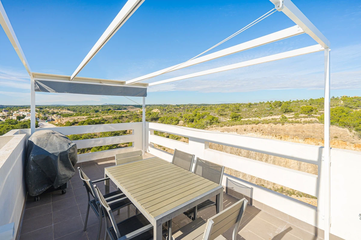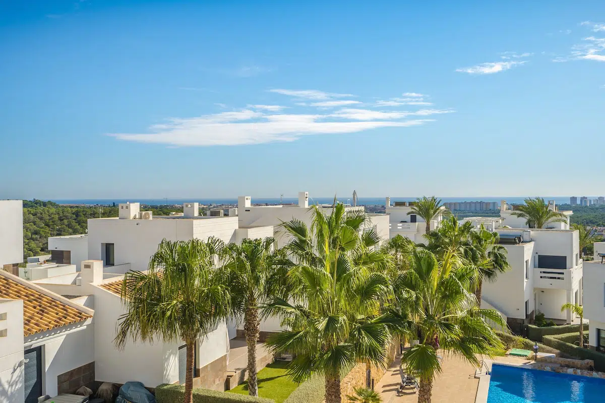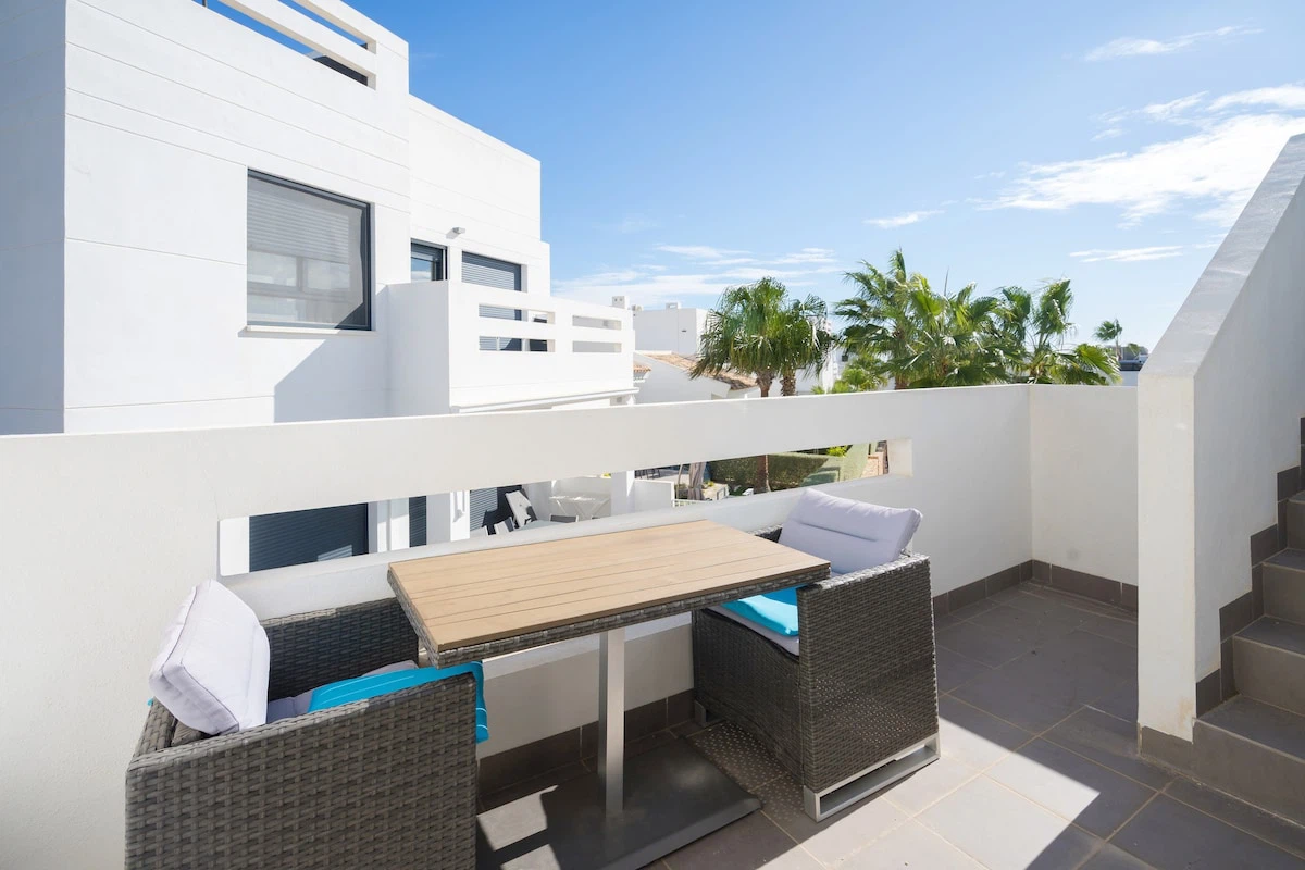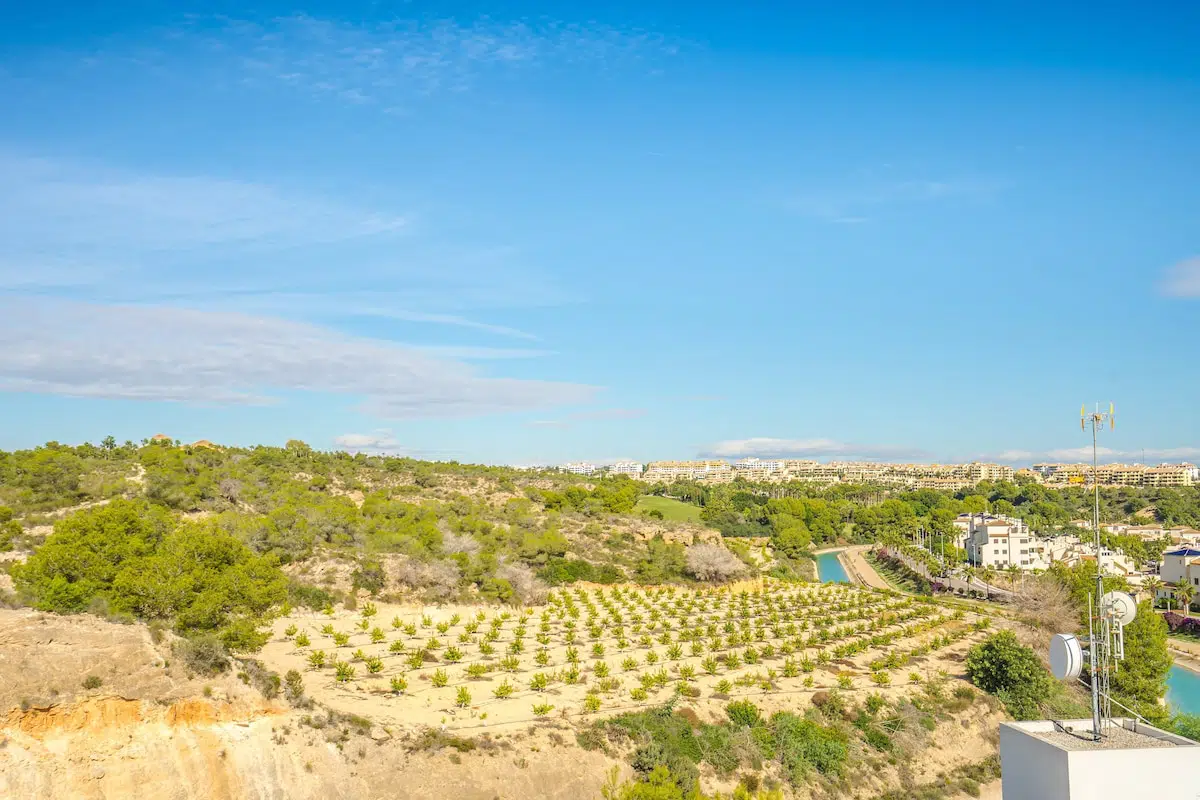 Apartamento moderno con piscina comunitaria en Orihuela Costa, en la Costa Blanca, España para 4 personas. El apartamento de vacaciones está situado en un complejo de golf y en una zona costera.