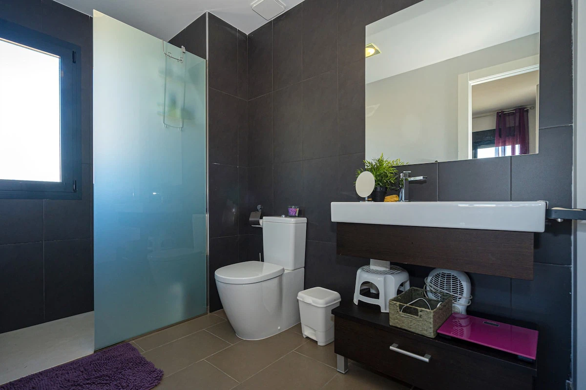 - cuarto de baño en suite con lavabo, ducha, Water y secadora de pelo