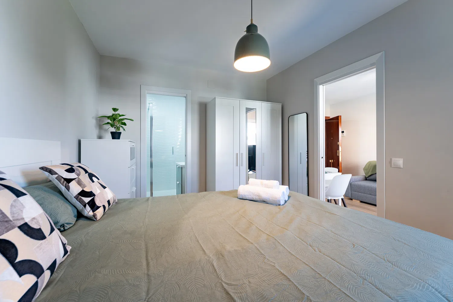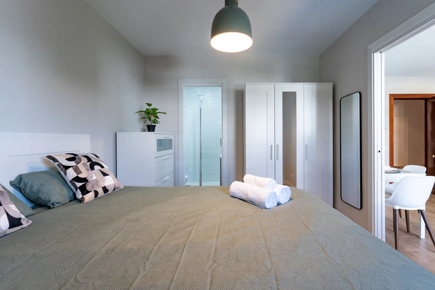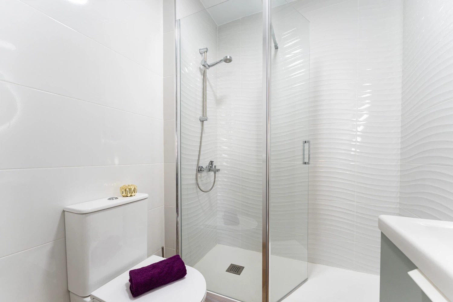 El baño, moderno y funcional, dispone de una ducha mientras que la habitación principal, tiene una cama de matrimonio.