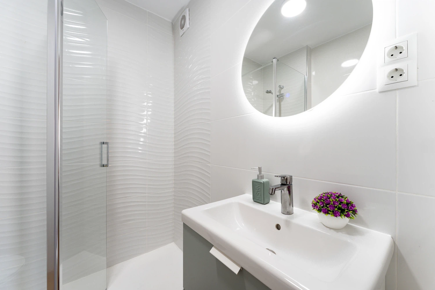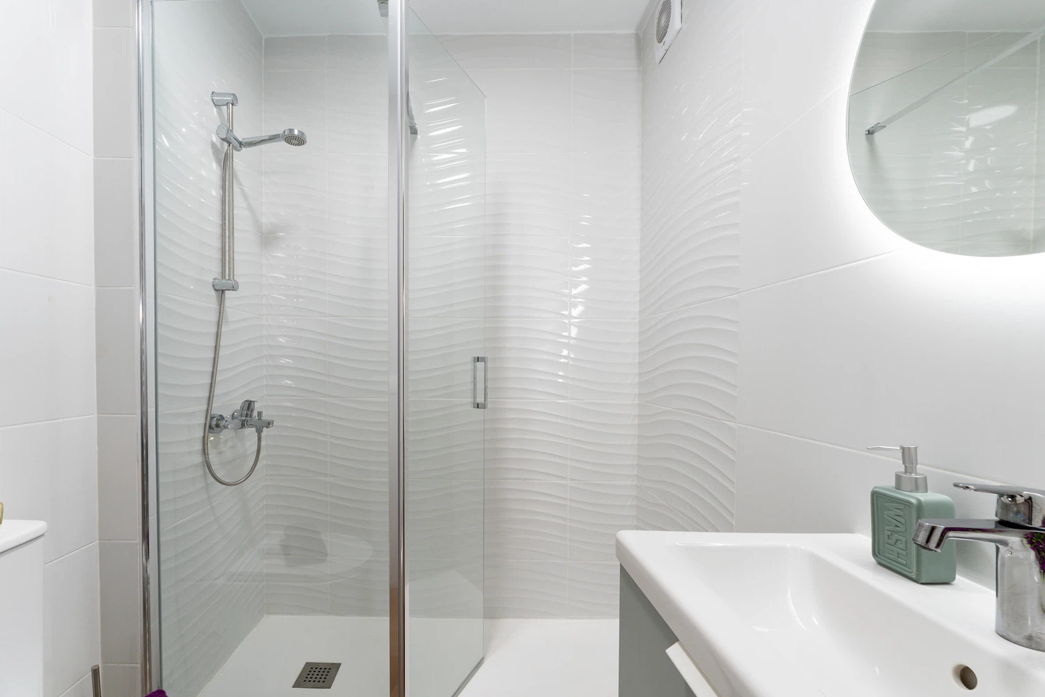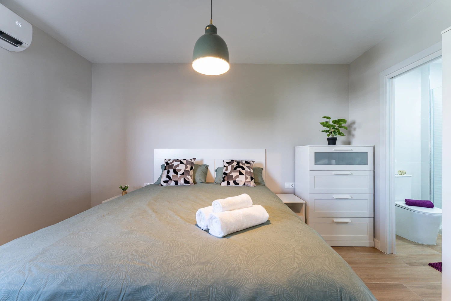 El baño, moderno y funcional, dispone de una ducha mientras que la habitación principal, tiene una cama de matrimonio.