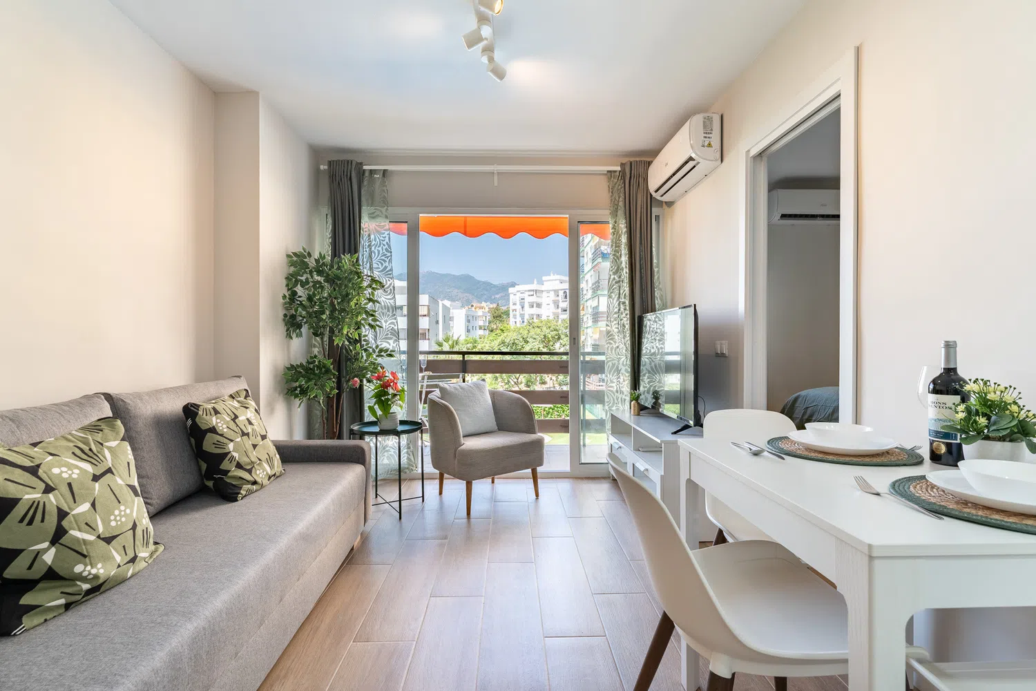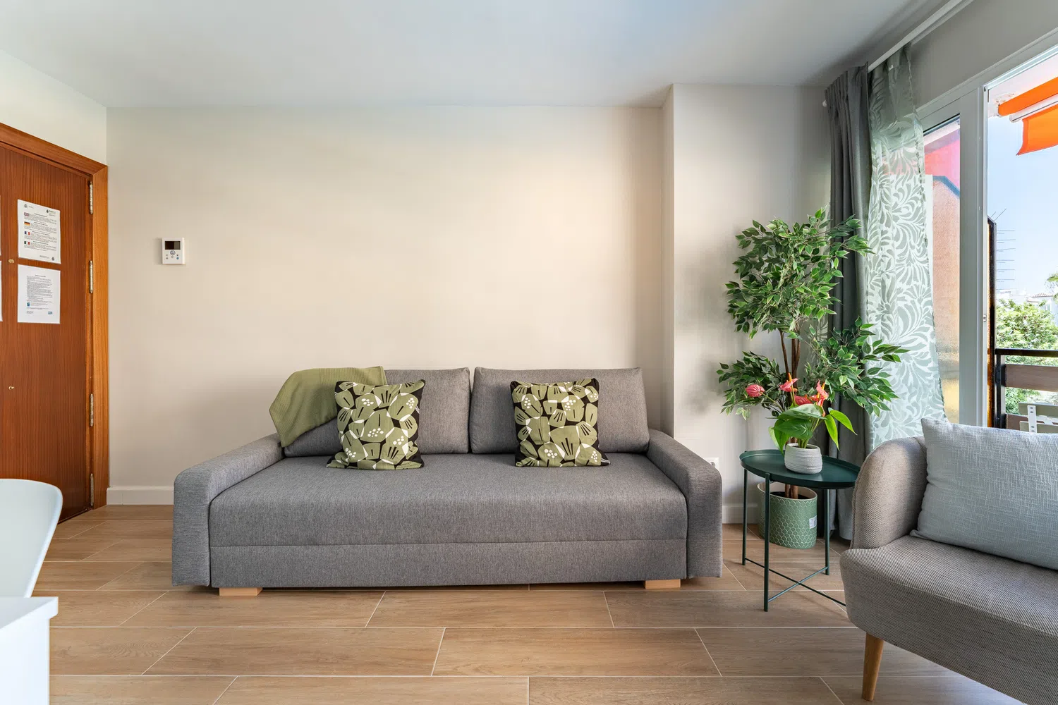 El apartamento cuenta con un luminoso salón, equipado con un cómodo sofá cama. y además, puedes acceder desde ahí a una maravillosa terraza.