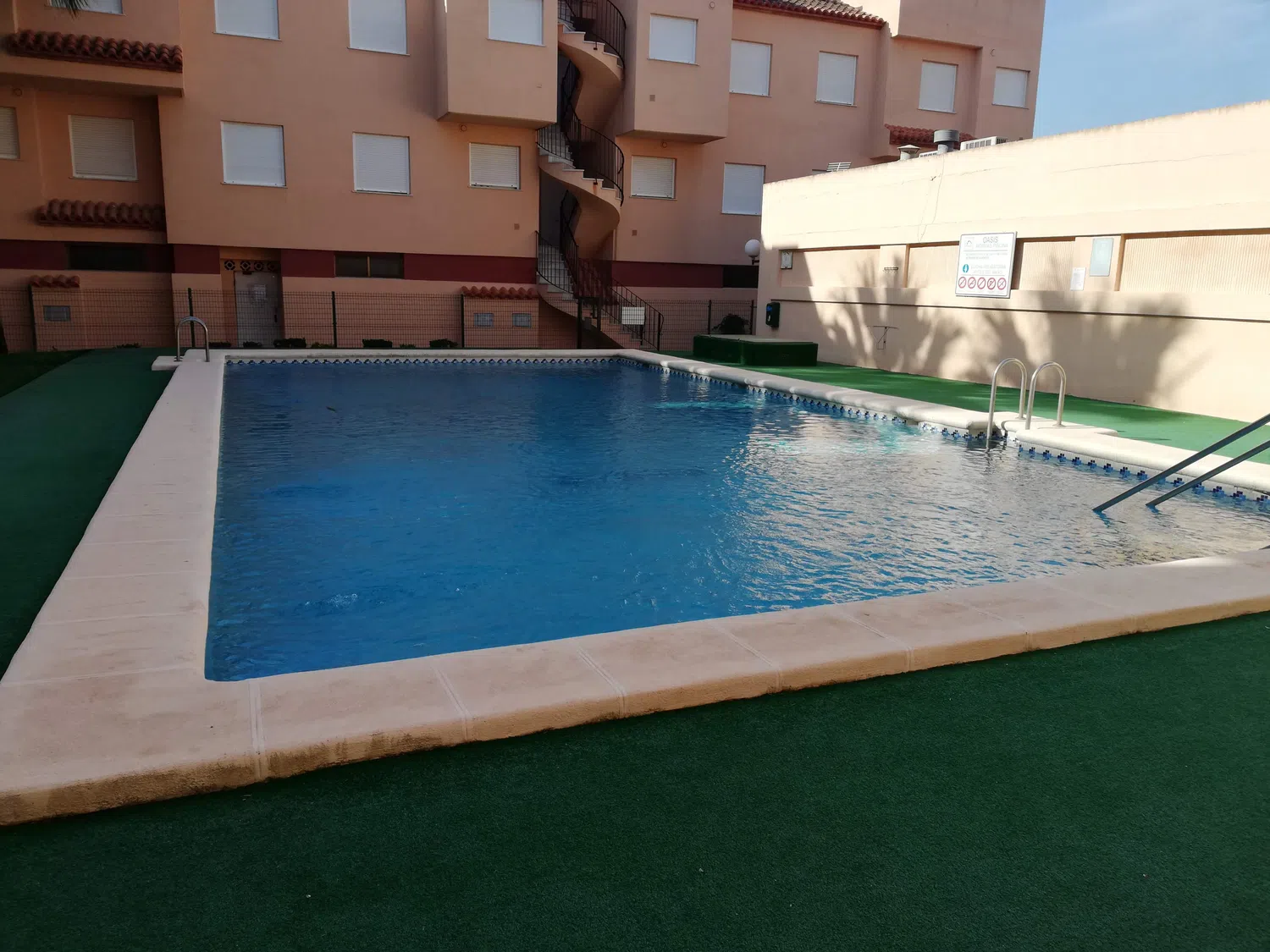 El residencial OASIS es una construcción baja de tres alturas sin ascensor, situada en primerísima línea de playa con acceso directo a la arena. Sito en la parte norte de la playa de Xeraco en avenida de la Mota 26 en las inmediaciones de restaurantes y otros sercicios. Zona tranquila y de poco tráfico, que garantiza la desconexión y el descanso.