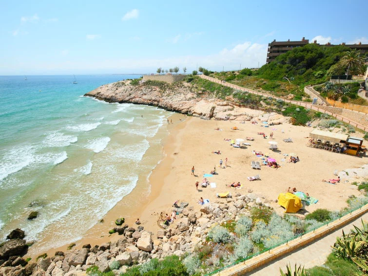 Salou: Residencia "Rits", bonita, agradable, confortable. Lugar céntrico, tranquilo, soleado, a 50 m del mar, a 100 m de la playa. Comunitario: piscina rectangular occulta desde el exterior (8 x 20 m, 140 - 200 cm de profundidad, Disponible por temporada: 15.Jun. - 15.Sep.). Piscina para niños. En el complejo: bar, ascensor. Tienda 250 m, supermercado 250 m, restaurante 150 m, bar 50 m, parada de autobús 25 m, playa de arena "Platja Llarga, Cala Llenguadets" 100 m. Campo de golf (18 hoyos) 2 km. Atracciones en los alrededores: Parque temático PORTAVENTURA 2 km, Parque aquático AQUOPOLIS 2 km, Spa AQUUM 2 km, Karting 4 km, Paintball 9 km. A tener en cuenta: sin ascensor. El propietario no acepta grupos de adolescentes/jóvenes.